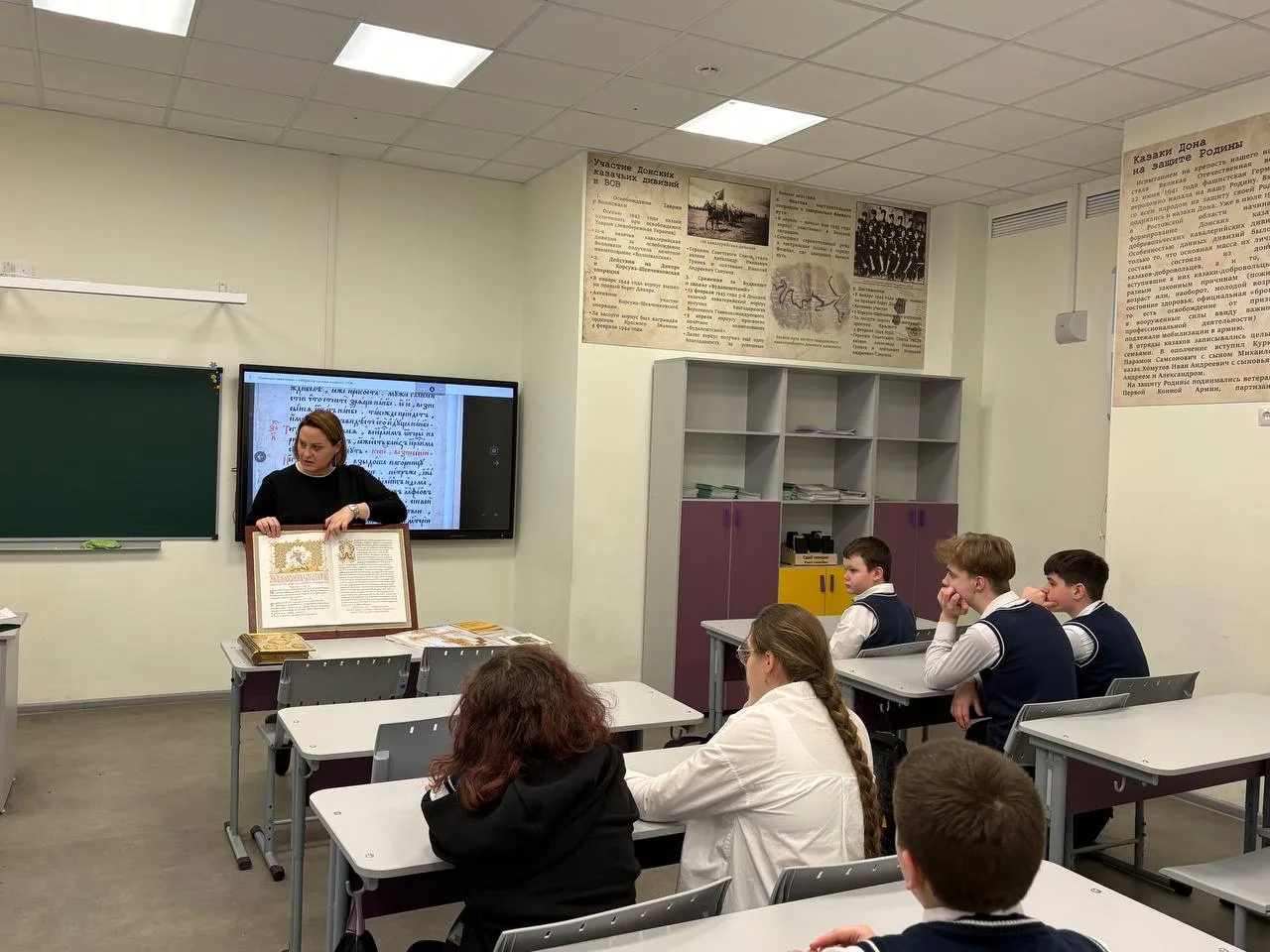 11 марта 2026 года эстафету подхватили ученики начальных классов МБОУ «Лицей №58», где открытые уроки провели протоиерей Георгий Жилин и руководитель приходского экскурсионного проекта «Луч» Ольга Хабибулина. Также 12 марта отец Георгий встретился и с пятиклассниками МАОУ «Школа №60». Ребята узнали, как начиналось книгопечатание на Руси, увидели современные издания «Апостола», «Часослова» и «Евангелия», листали страницы с церковнославянским текстом, рассматривали старинные оклады и постарались самостоятельно разобрать непривычный славянский текст на цветных страницах.