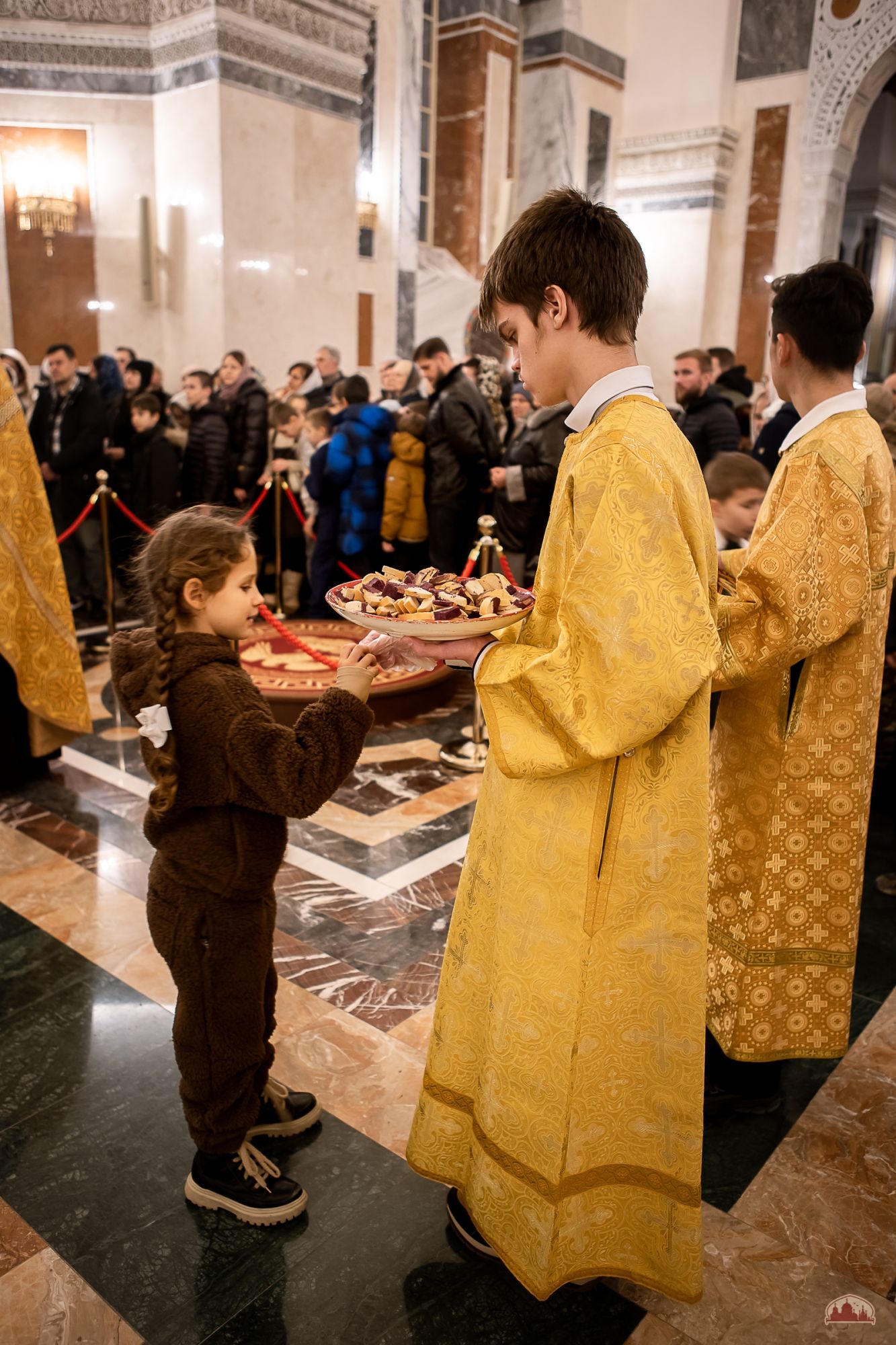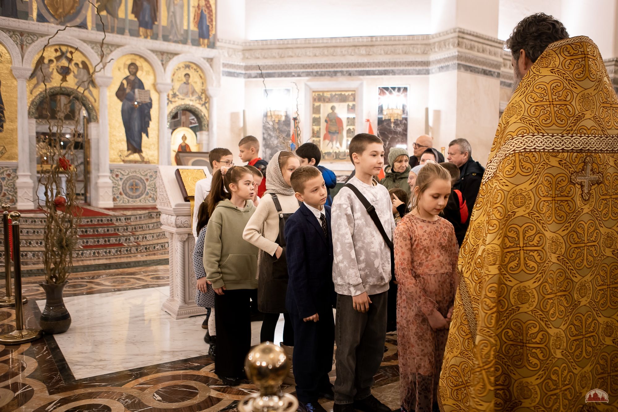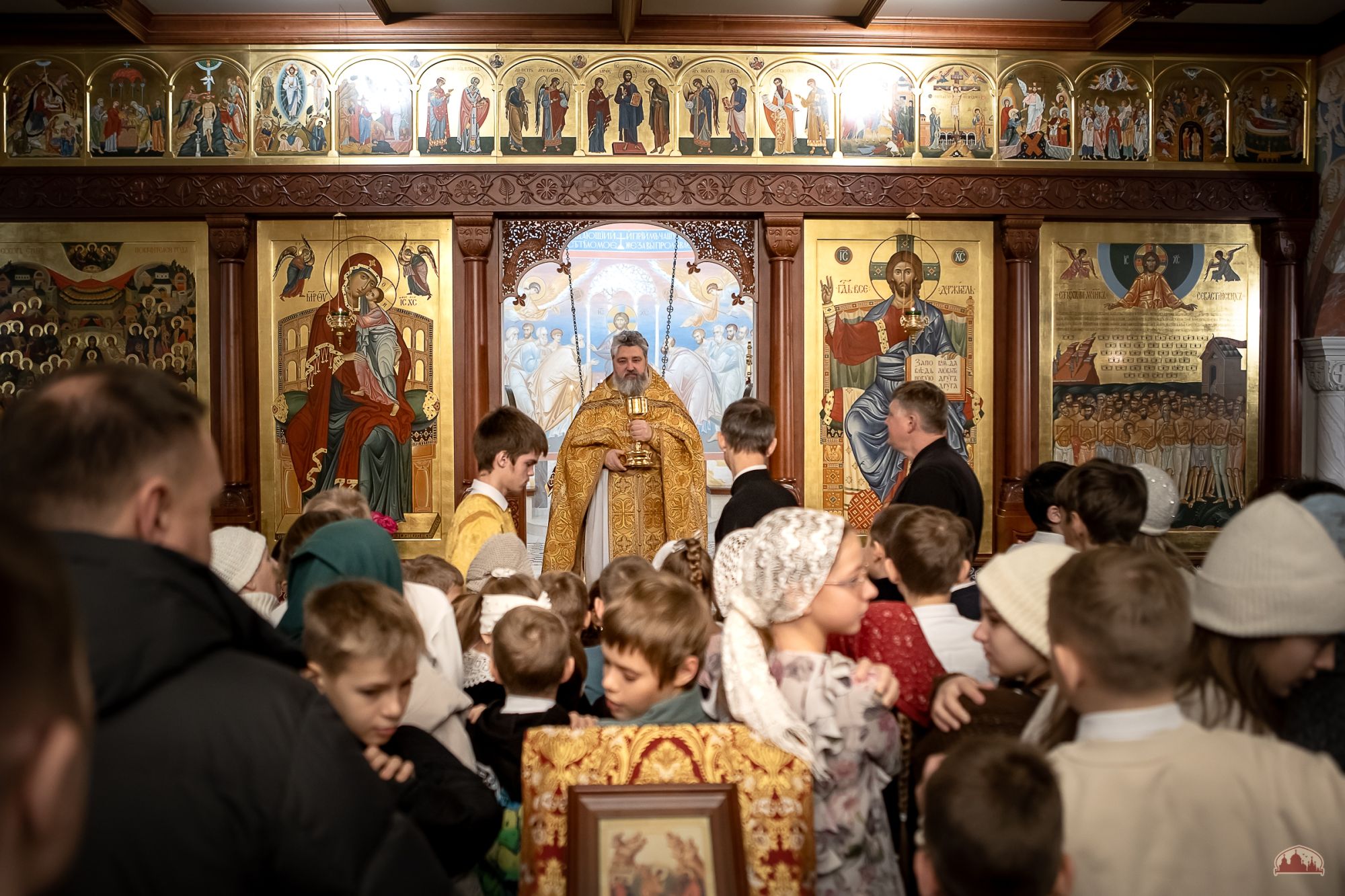 13 декабря все собрались на чтение последования ко Святому Причащению, а затем на всенощное бдение в храме святого Георгия Победоносца. Старшие воспитанники помогали в алтаре и читали шестопсалмие, младшие ухаживали за подсвечниками. Многие вместе с родителями приступили к Таинству Исповеди.