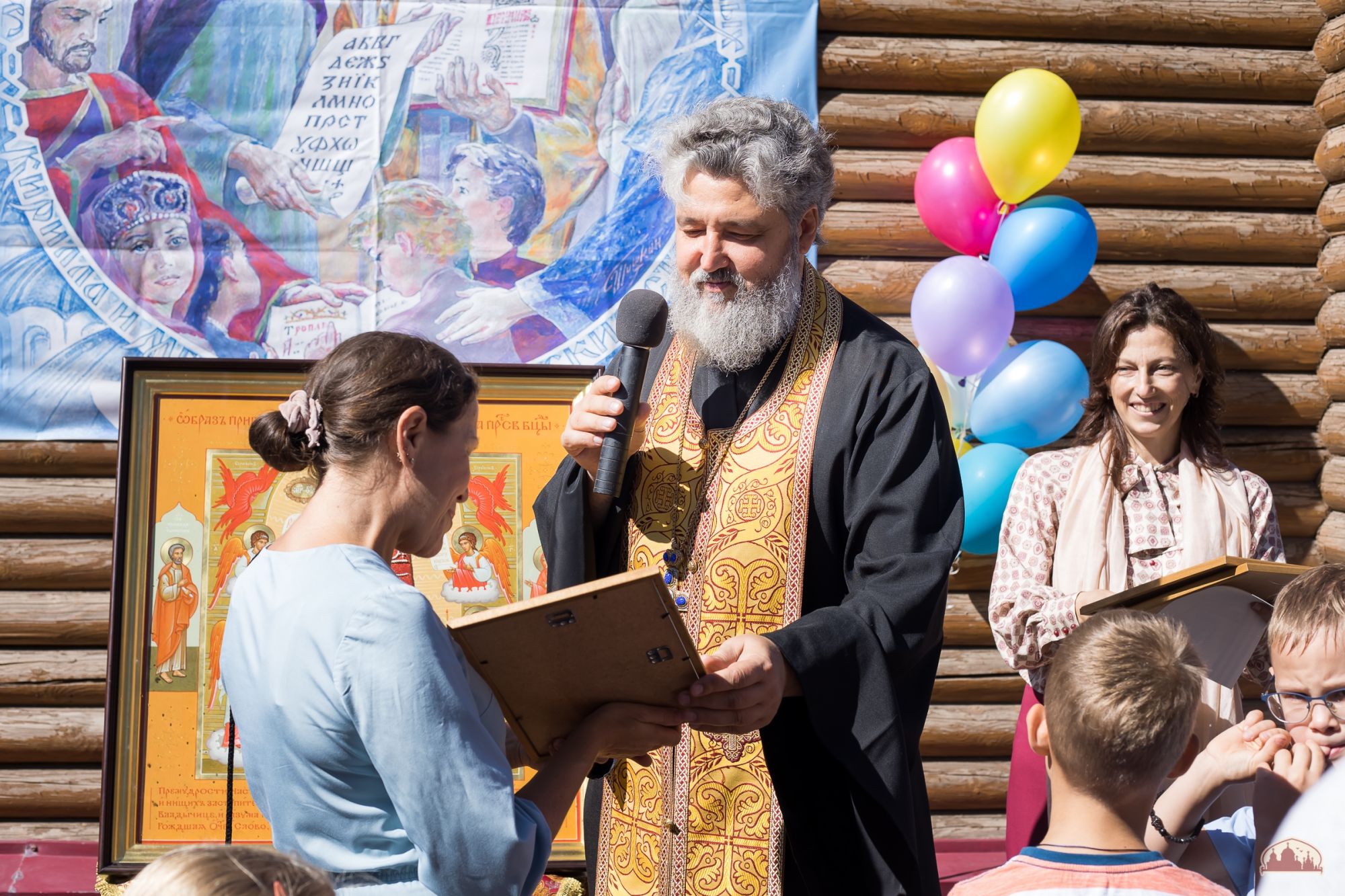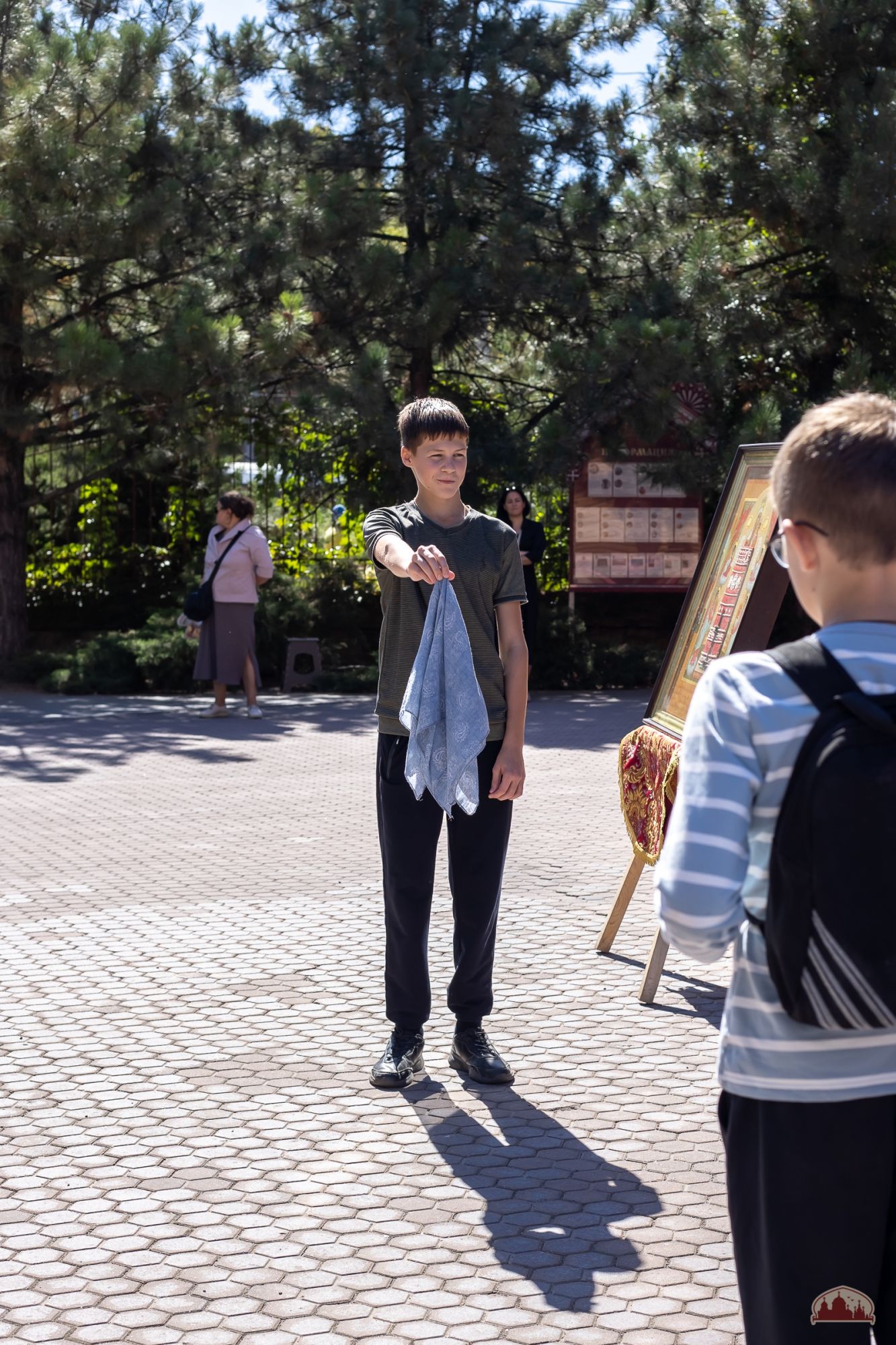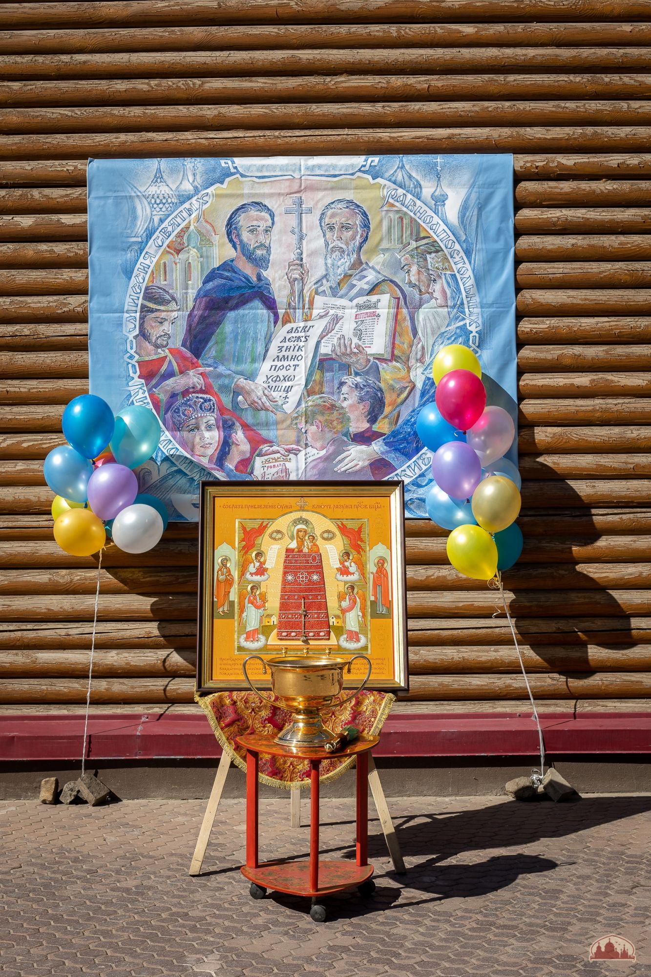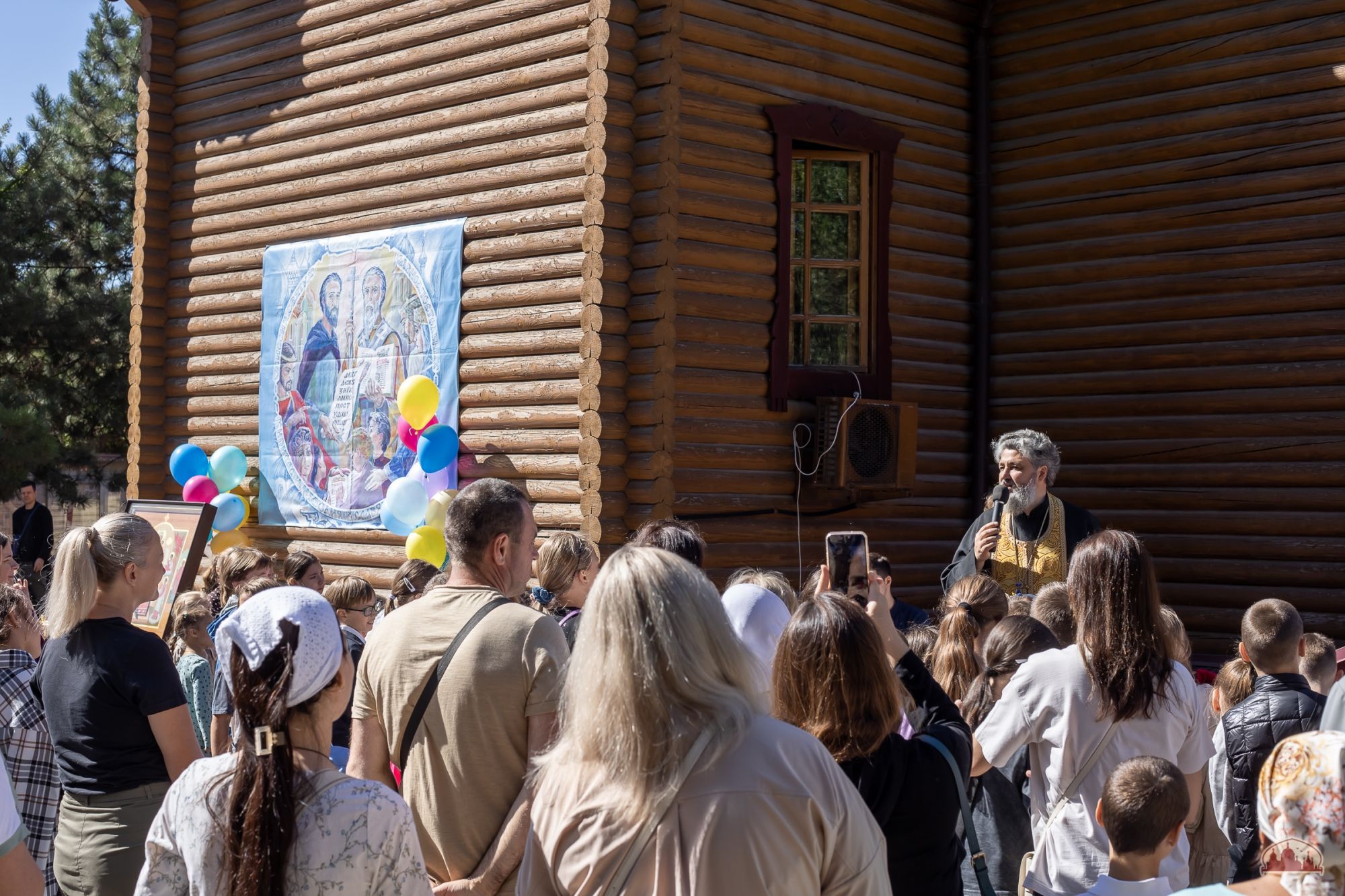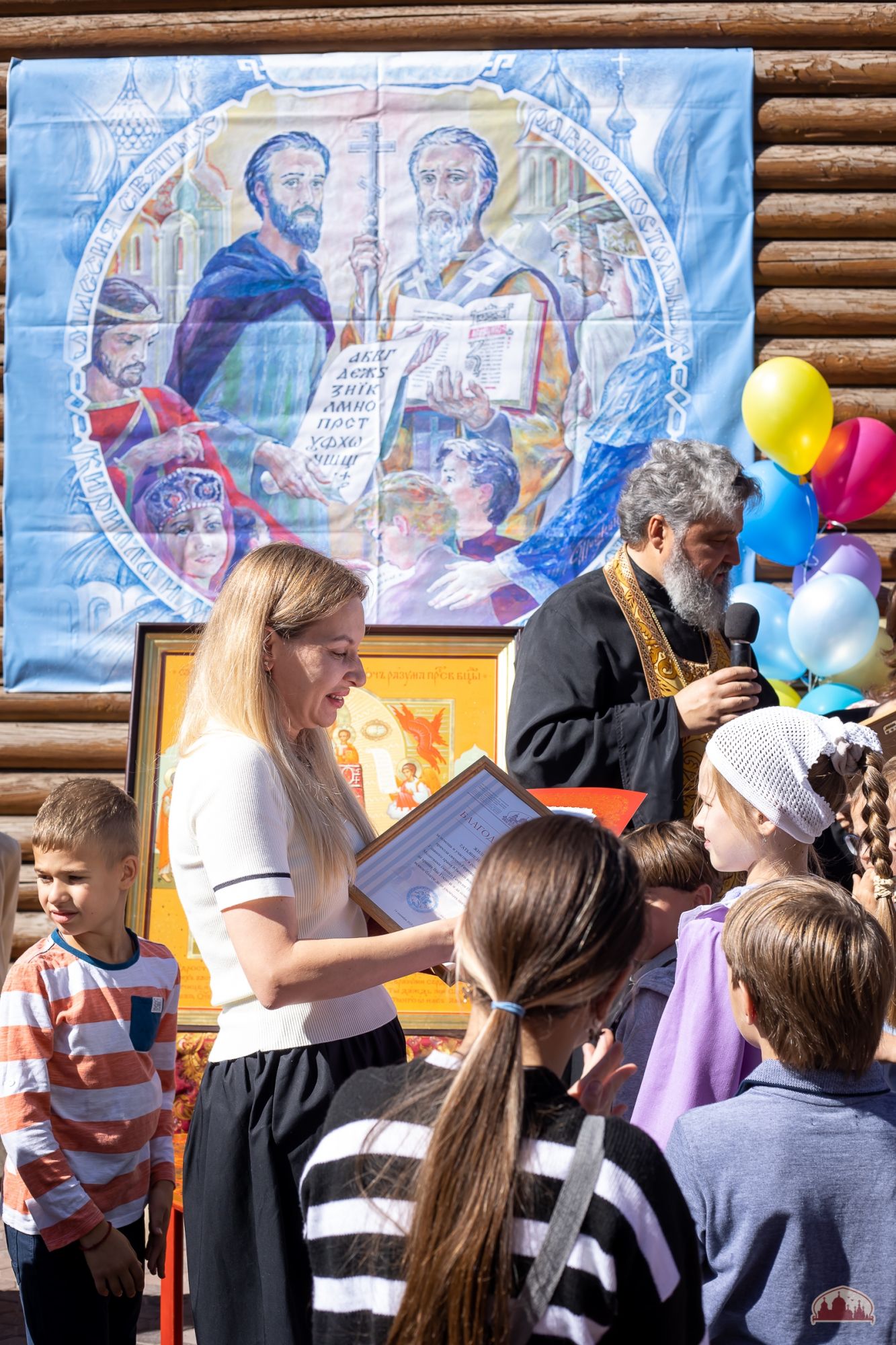 Торжества начались с соборной молитвы за Божественной литургией, где вместе молились учащие, учащиеся и их родители. После службы праздник продолжился на подворье храма. Настоятель прихода и духовник воскресной школы протоиерей Валерий Волощук совершил молитву святым покровителям школы — равноапостольным Кириллу и Мефодию, учителям Словенским.