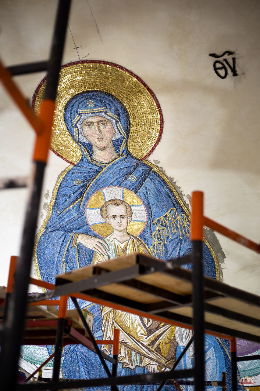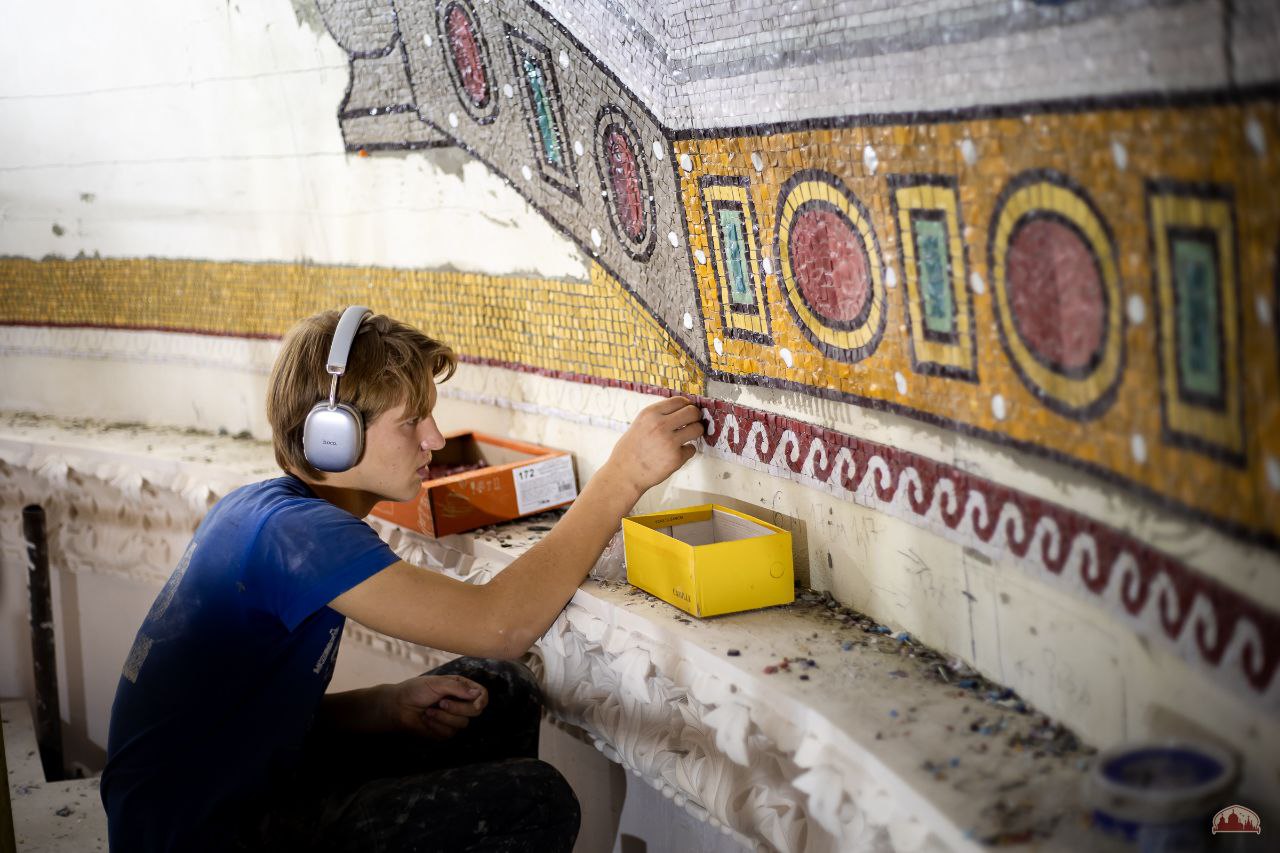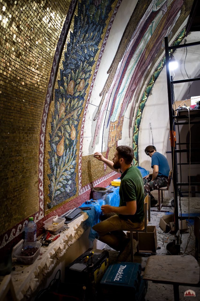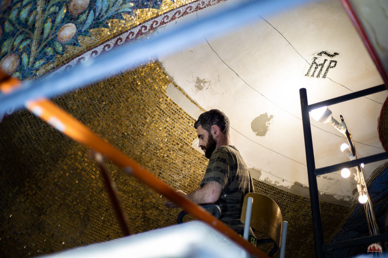 Последние кусочки смальты ложатся на алтарный свод храма святого Георгия Победоносца.