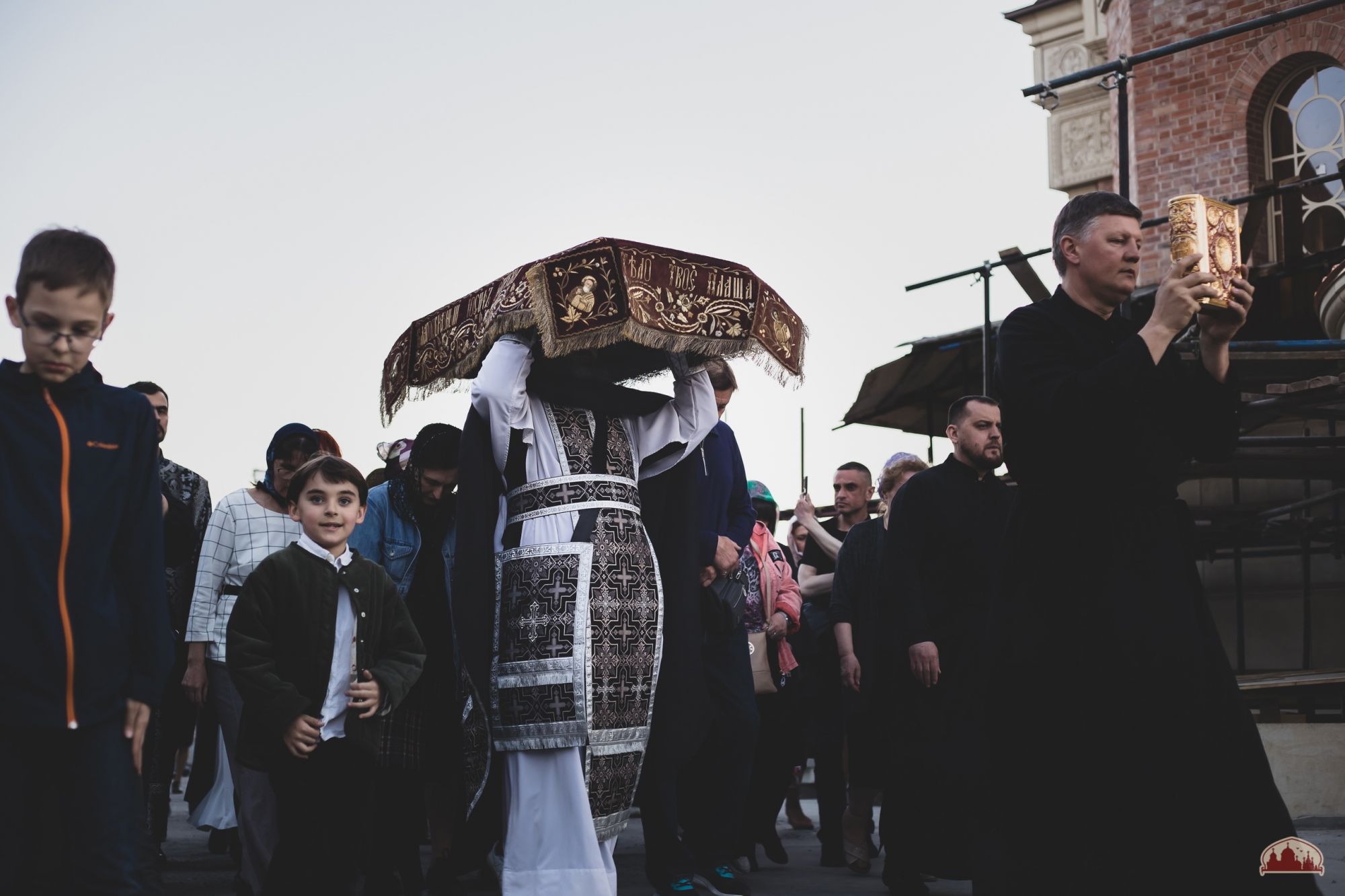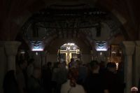 Да молчит всякая плоть человеческая и да стоит со страхом и трепетом и ни о чем земном в себе не помышляет: ибо Царь царствующих и Господь господствующих идет на заклание отдать Себя в пищу верным. Предваряют Его сонмы Ангелов со всеми Началами и Властями; многоочитые Херувимы и шестикрылые Серафимы, закрывая лица свои и воспевая песнь: аллилуия, аллилуия, аллилуия.