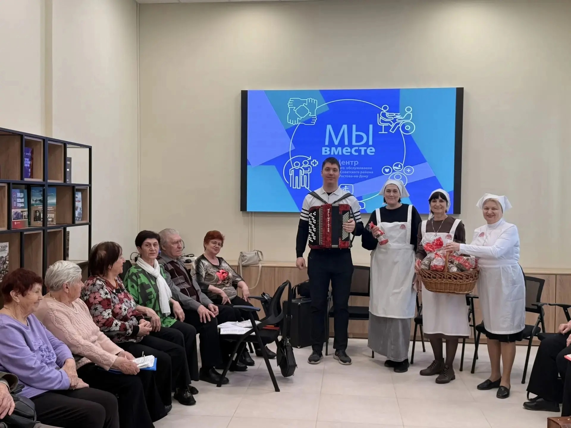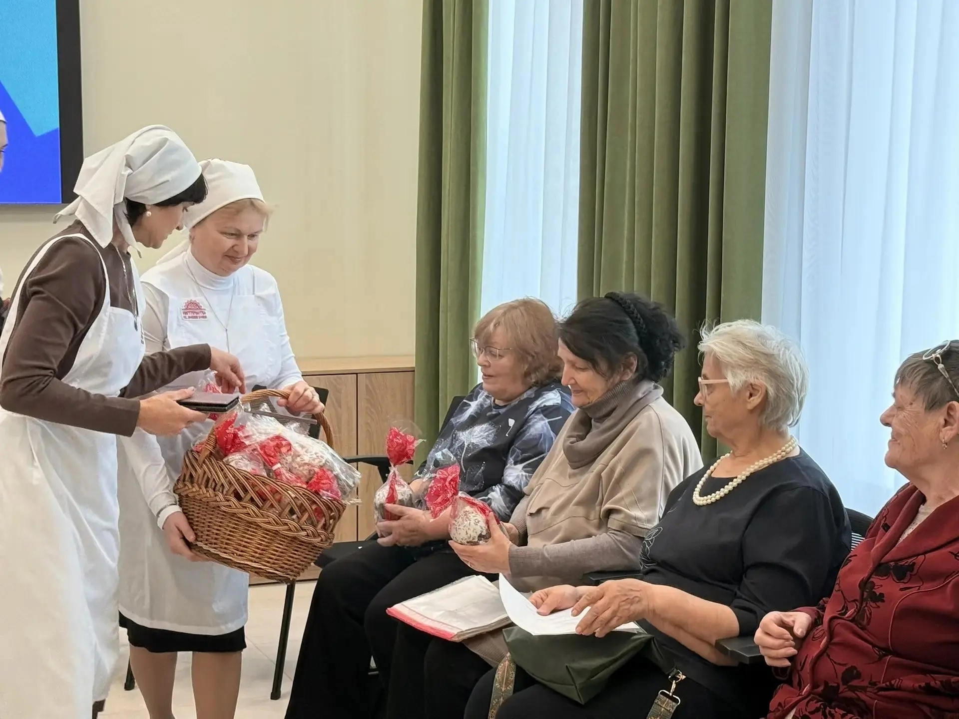 Пенсионеры клуба «Оптимист» Центра социального обслуживания населения Советского района, каждая семья инвалидов и малоимущих, находящаяся под опекой общины, воспитанники Мясниковского центра помощи детям, оставшимся без попечения родителей, пациенты Областной детской клинической больницы - никто не остался без радостного приветствия "Христос воскресе!" и пасхальных гостинцев.