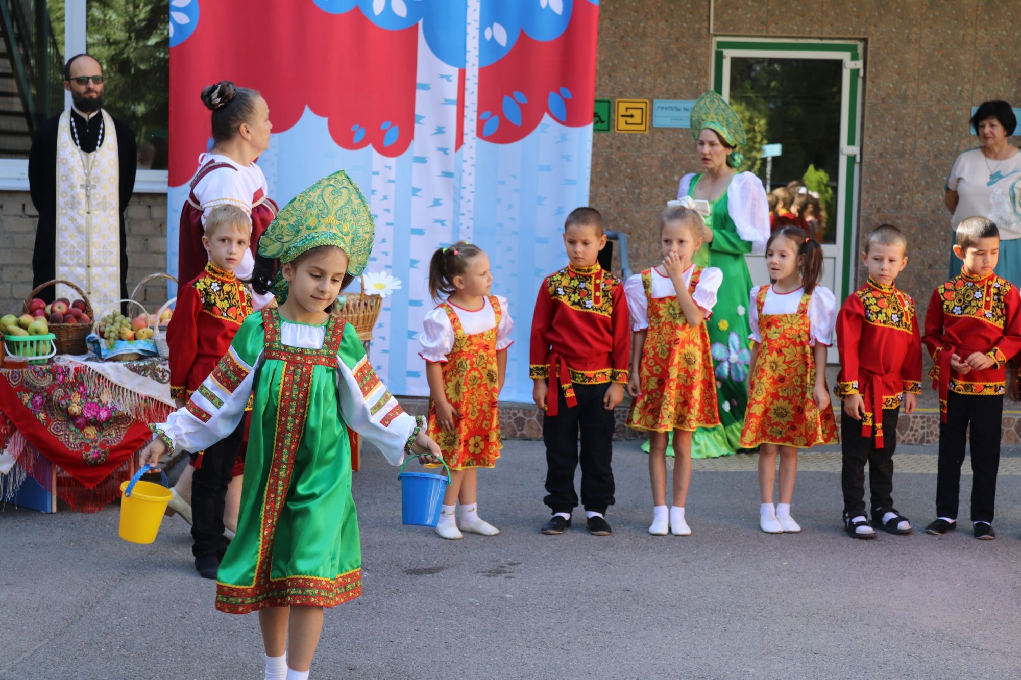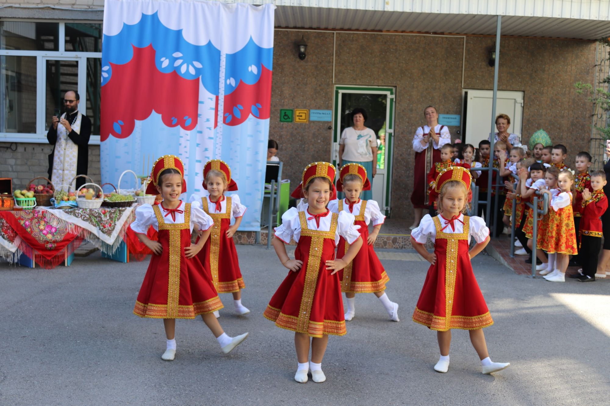 В канун Преображения традиционно приняли участие в праздничной программе наших маленьких друзей из детского сада 229. Иерей Иоанн Цупко поздравил детей, воспитателей и родителей с наступающим великим праздником, рассказал о его духовном смысле и освятил плоды, которые малыши заранее подготовили.