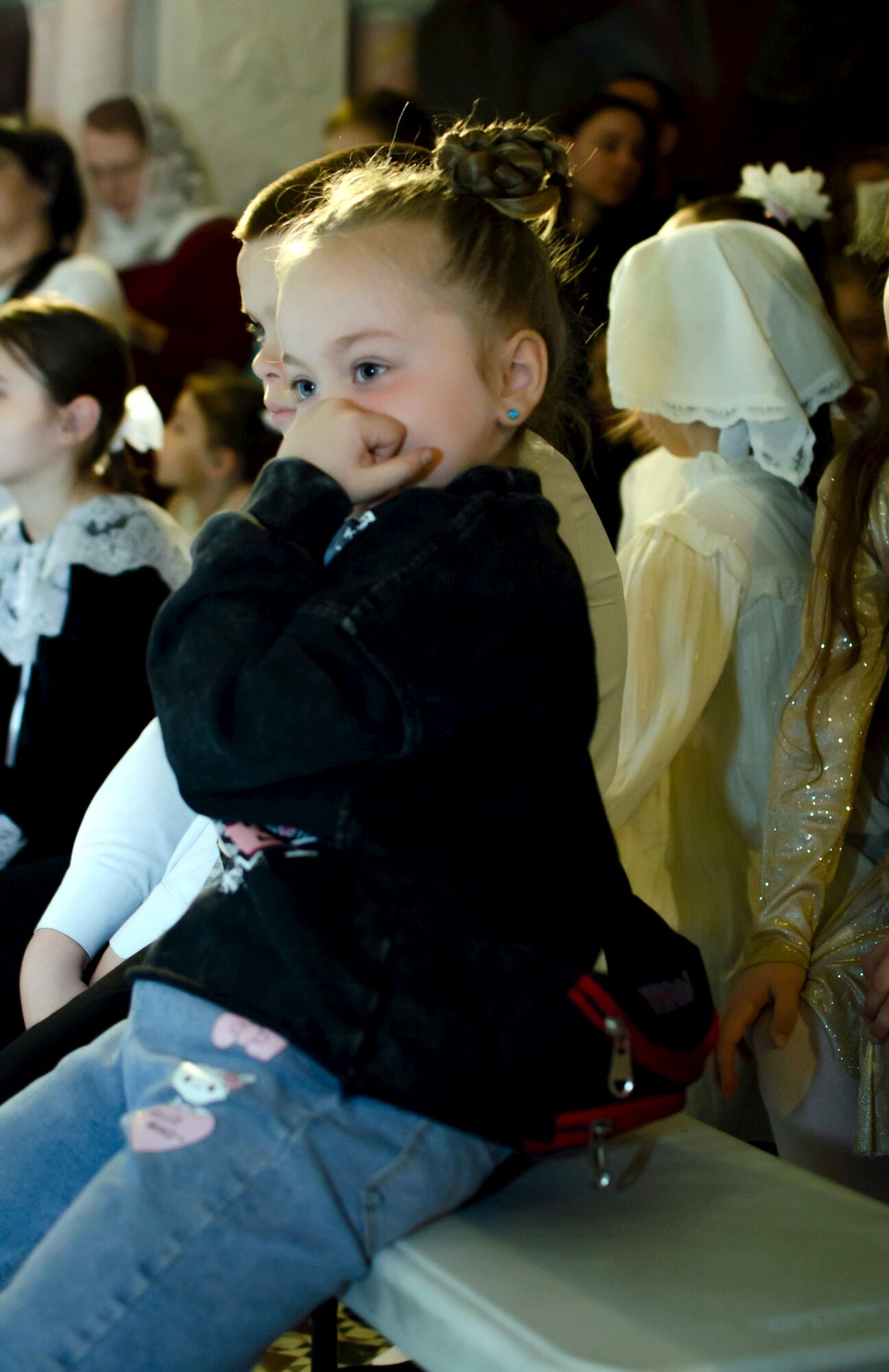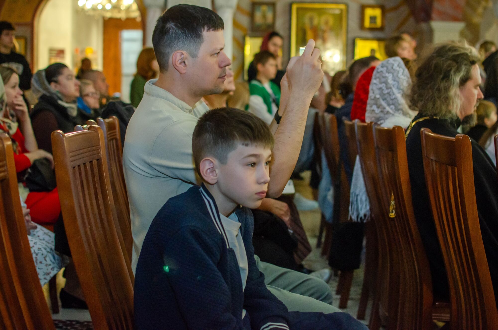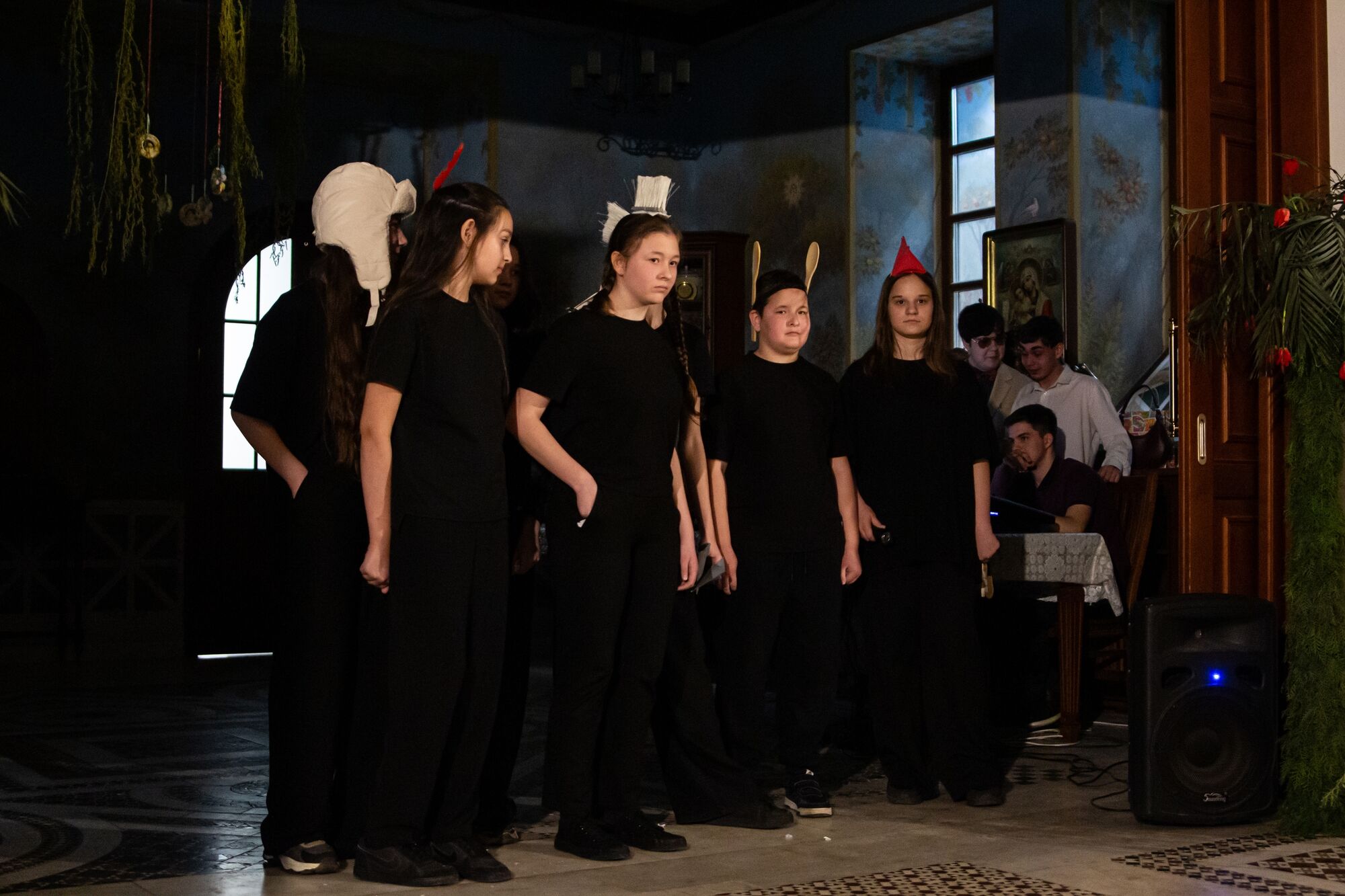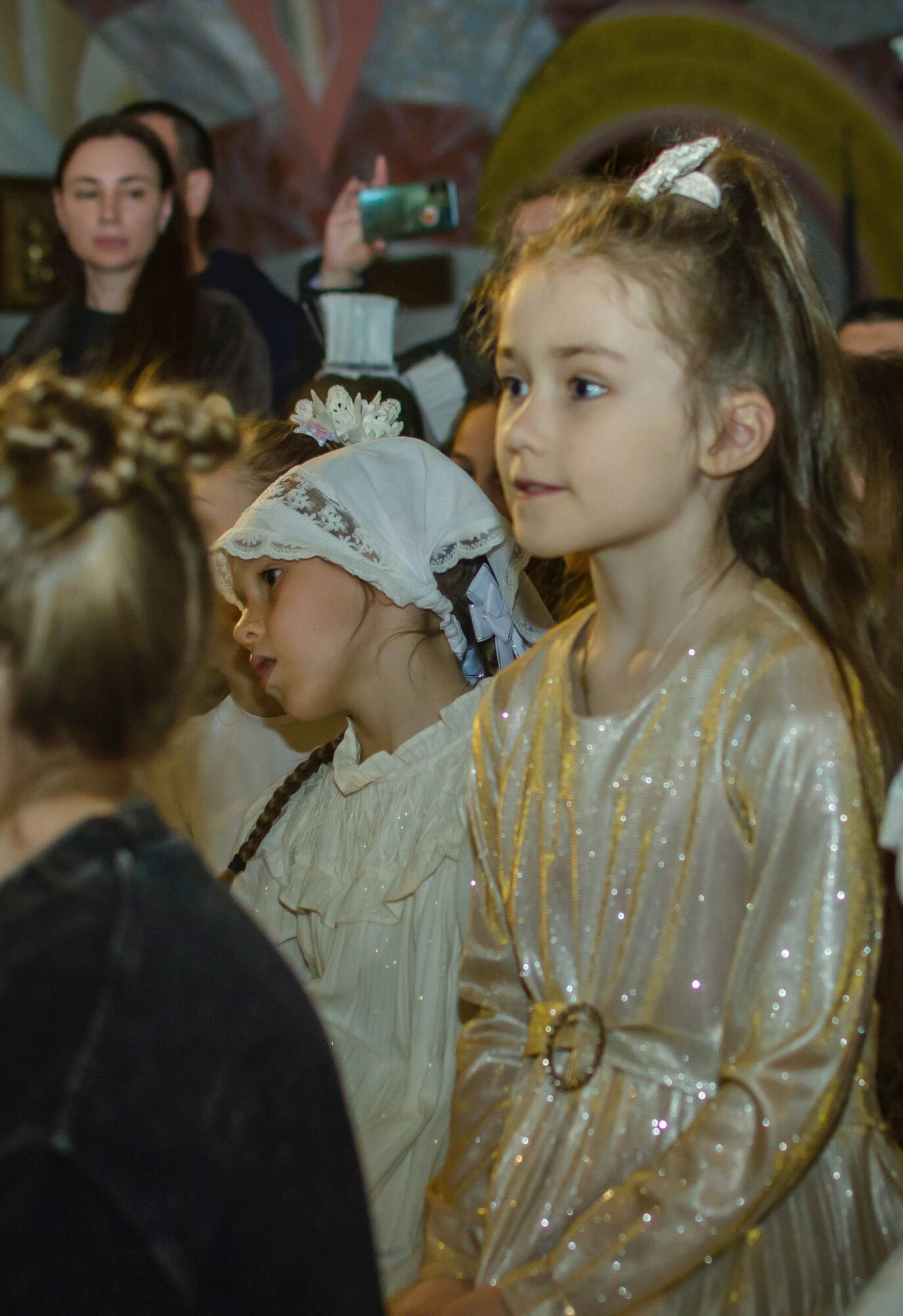 Особая атмосфера царила благодаря ведущим — ими стали сами воспитанники и родители. Их голоса звучали за кадром, а на экране в это время сменяли друг друга семейные фотографии «Пасха в нашей семье».