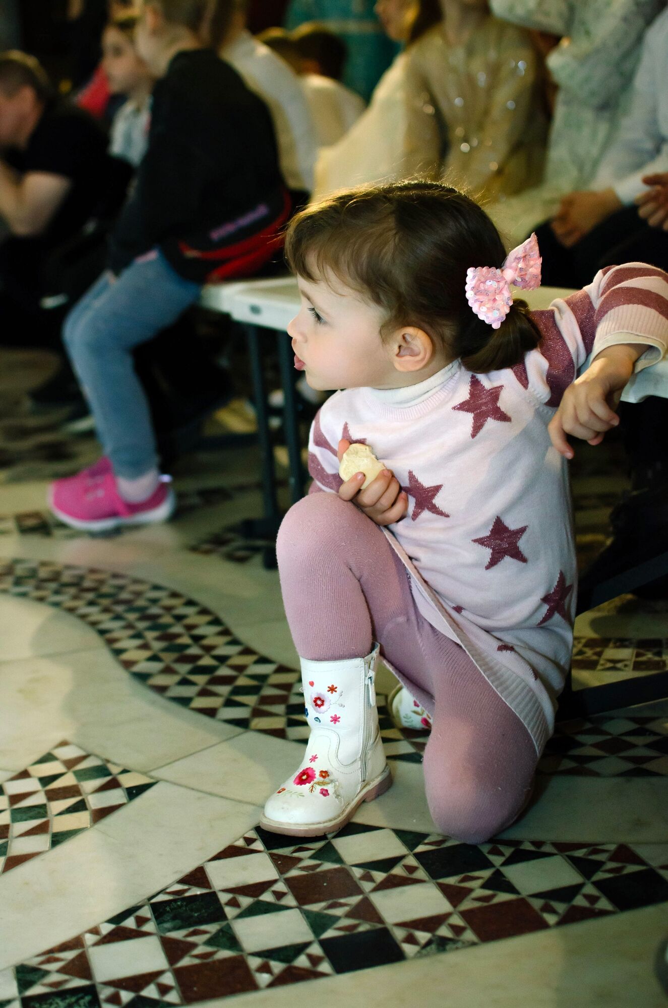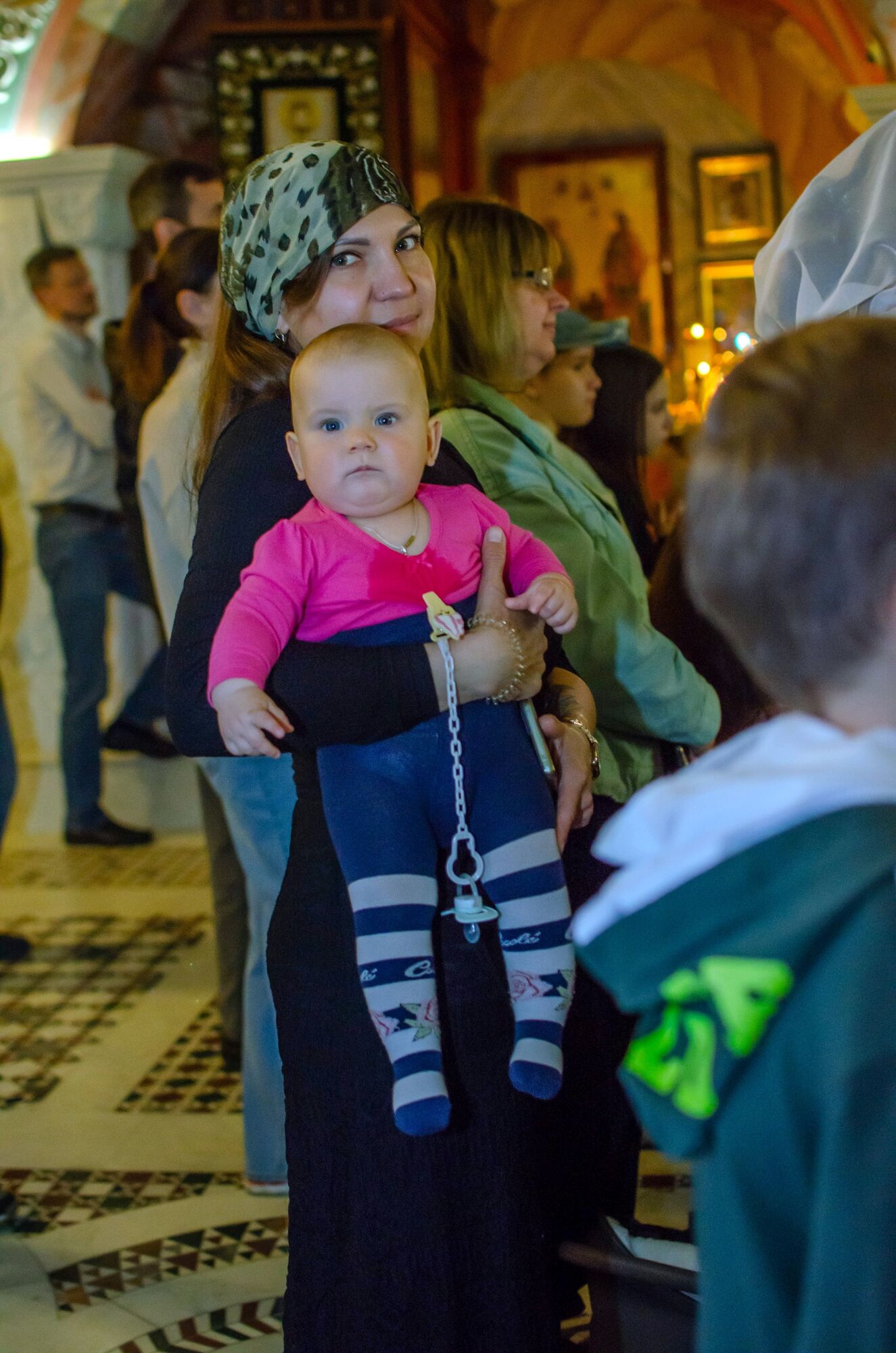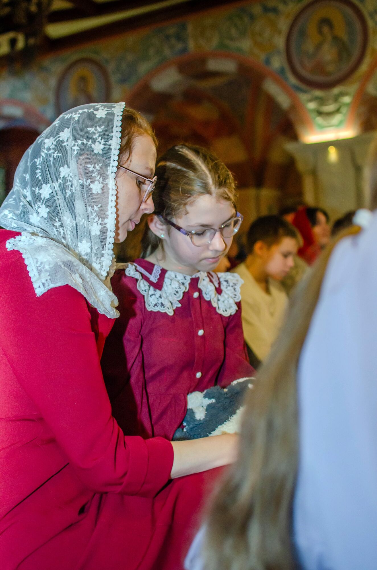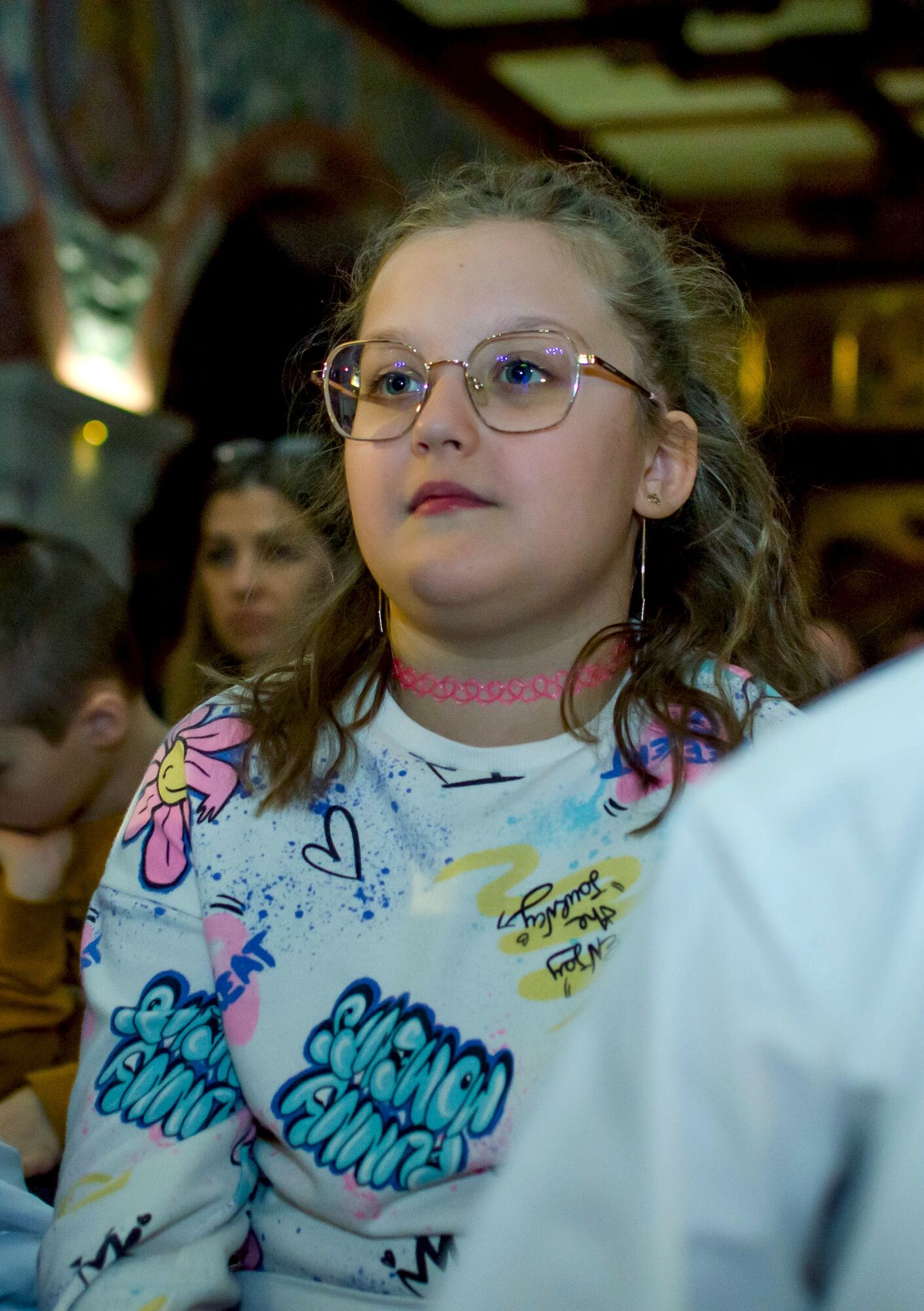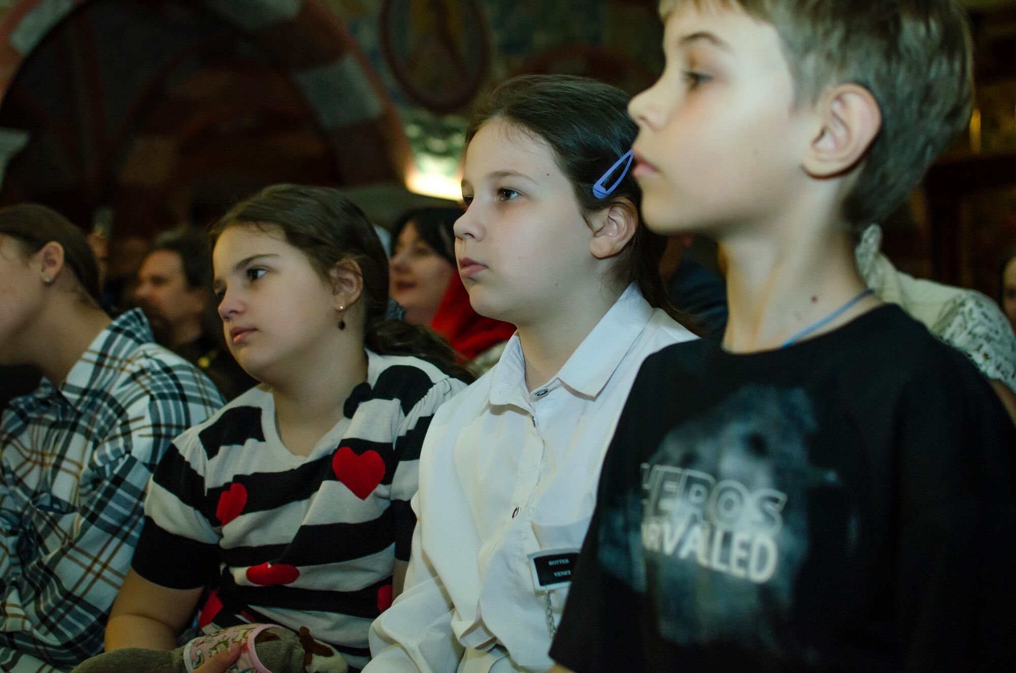 Особая атмосфера царила благодаря ведущим — ими стали сами воспитанники и родители. Их голоса звучали за кадром, а на экране в это время сменяли друг друга семейные фотографии «Пасха в нашей семье».