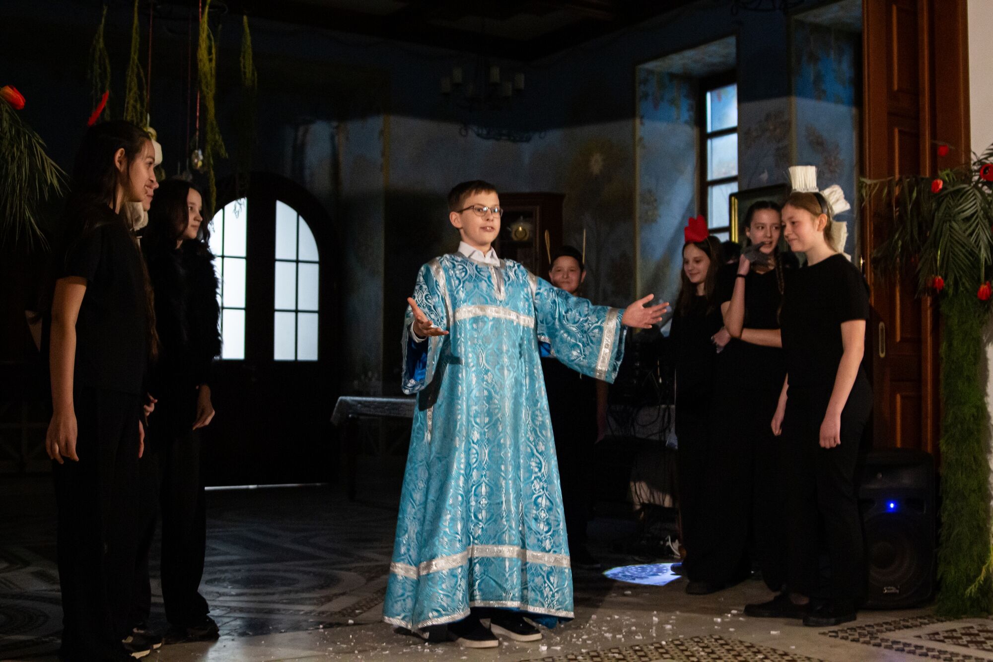 Девичий церковный хор «Русь» перенёс зрителей в события самой главной ночи в году, проникновенно исполнив стихиру Пасхи на Крестном ходе и другие пасхальные песнопения. Со словами пасхального приветствия и поздравления обратился протоиерей Георгий Жилин. А затем на сцену вышли самые юные участники — воспитанники дошкольного центра «Родничок», которые показали трогательную театральную постановку. Продолжили концертную программу церковный хор мальчиков, детский хор «Радуга», казачий семейный ансамбль «Тихий Дон» приходского Духовно-патриотического центра. Финал праздника украсила постановка театра «Преображение».
