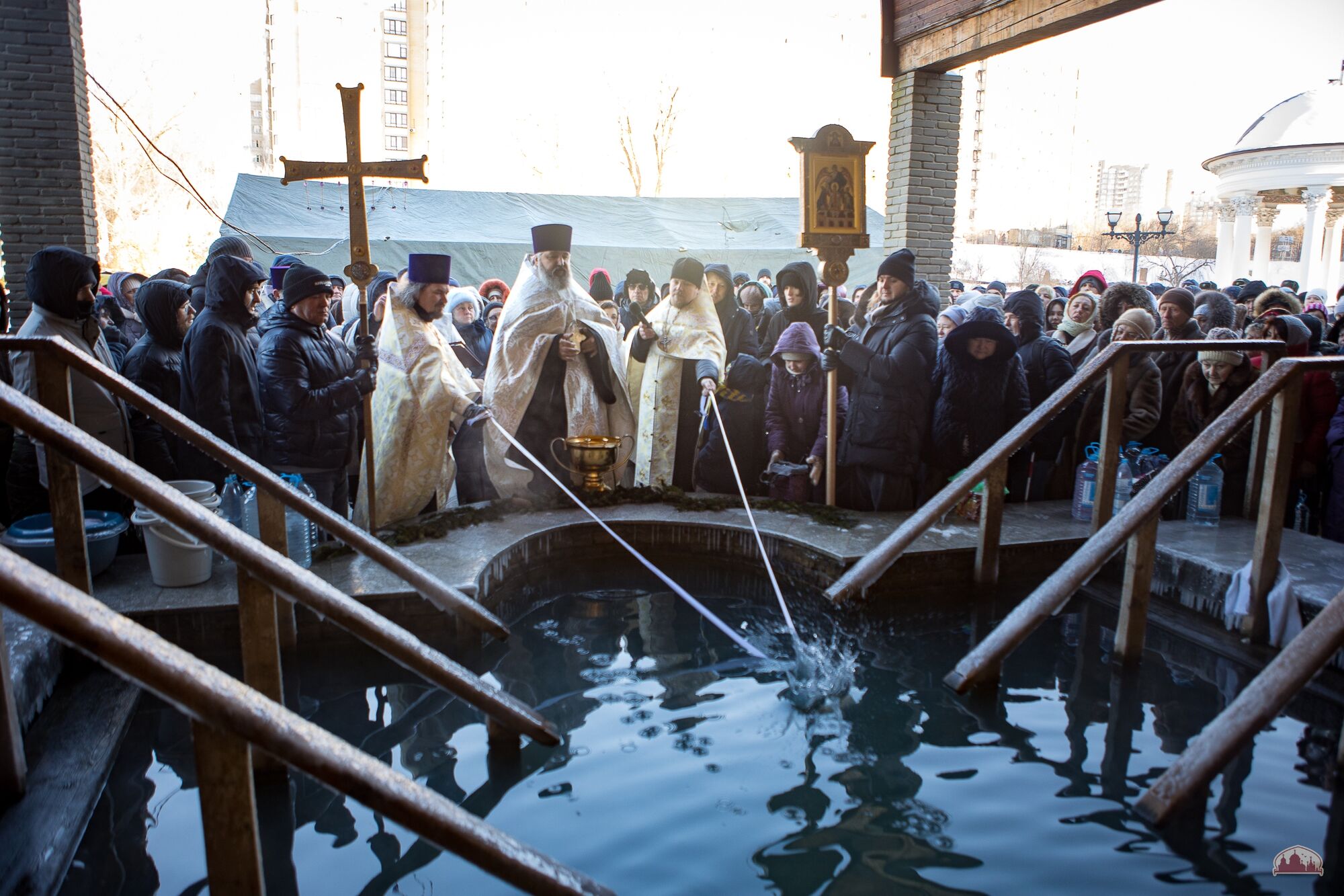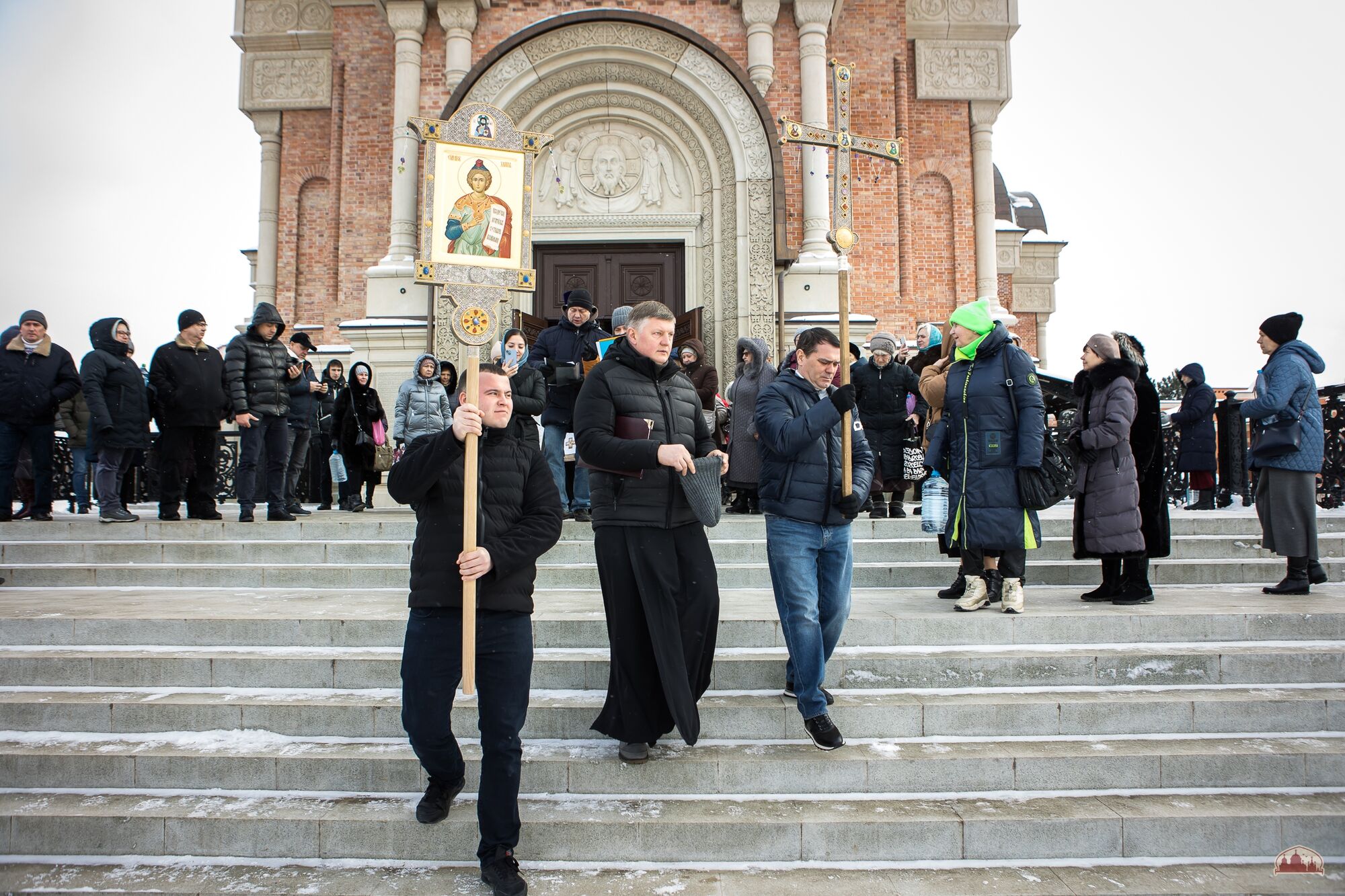 Приход празднует Святое Богоявление: торжественные богослужения Крещенского сочельника и дня Крещения Господня, крестный ход, Великое водоосвящение, многочисленные паломники и гости, приходская купель, самовары и настоящие крещенские морозы! К торжествам присоединились более 300 военнослужащих Южного военного округа, а также члены их семей.
