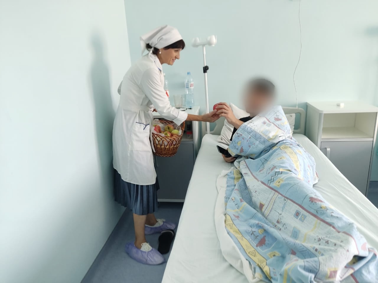 В праздник Преображения Господня делегация от прихода навестила маленьких пациентов Областной детской клинической больницы. Для детей в отделении паллиативной помощи были переданы соки, фруктовые и овощные пюре, молочные каши. А всем ребятам в отделениях педиатрии и реабилитации раздали освященные яблоки, поделившись с ними светлой радостью праздника.
