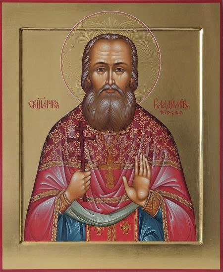Священномученик Владимир Четверин родился в 1874 году в благочестивой крестьянской семье в Симбирской губернии. Сначала работал учителем, затем в 36 лет был рукоположен в священники. Служил в селах Сырятино и Барахман-Гарт. В годы гонений отказался выдать метрические книги и церковное имущество. 19 августа 1918 года был арестован, подвергнут пыткам и расстрелян 2 сентября. Его мощи сохранились нетленными в могиле, сквозь которую протекал холодный ключ. Нетленными остались и нательный крестик, и Святое Евангелие, вложенное в руку святого.