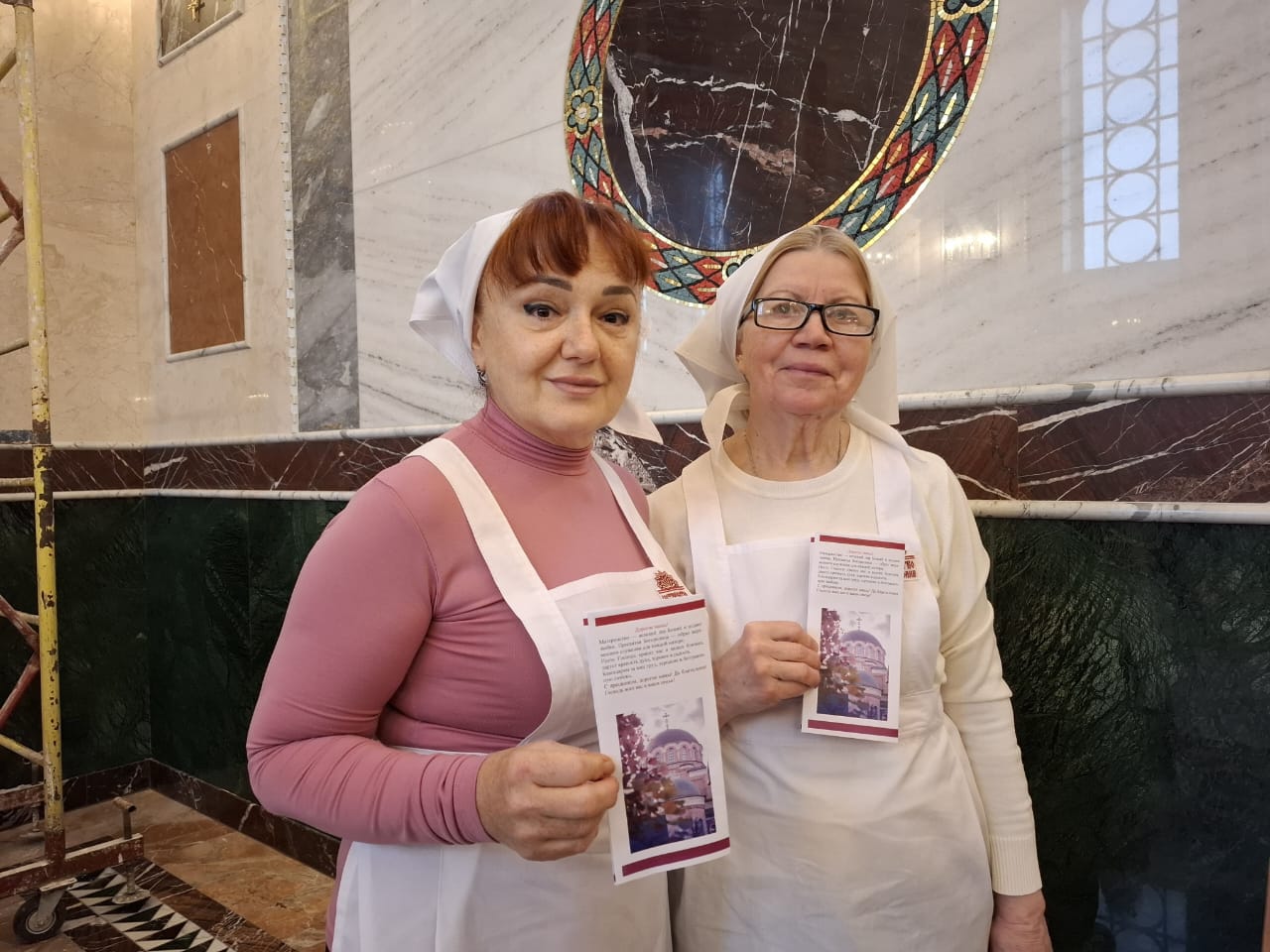 30 ноября после Божественной литургии сестры раздавали праздничные памятки и поздравляли прихожан с праздником.