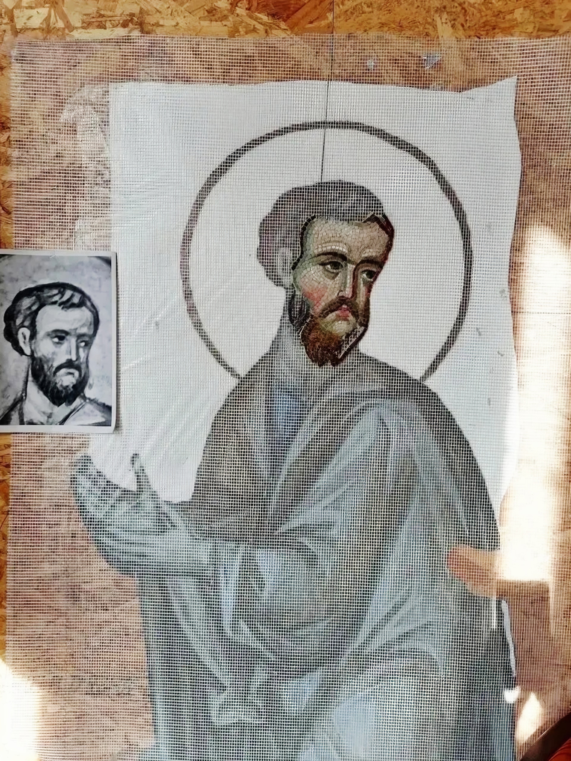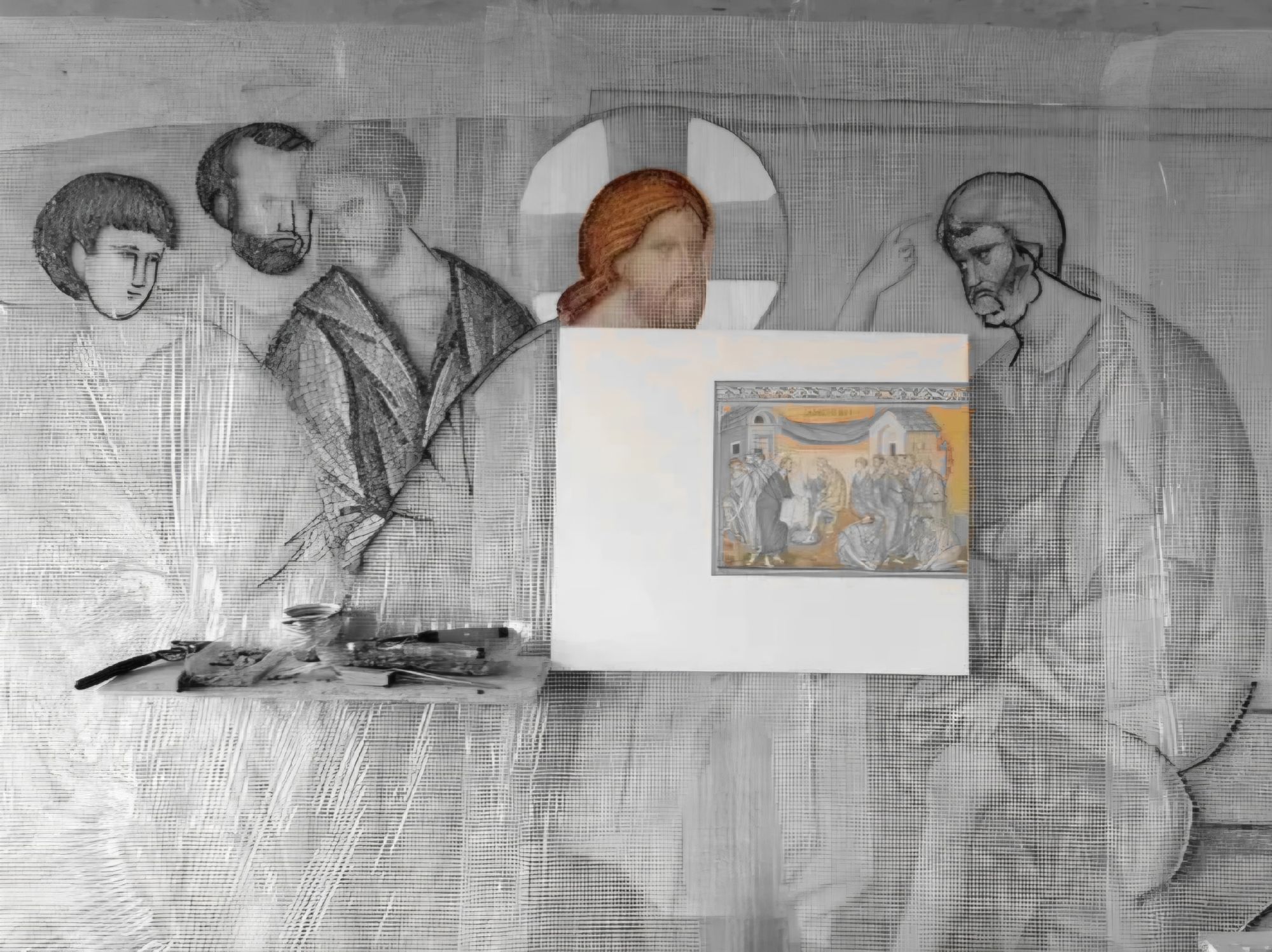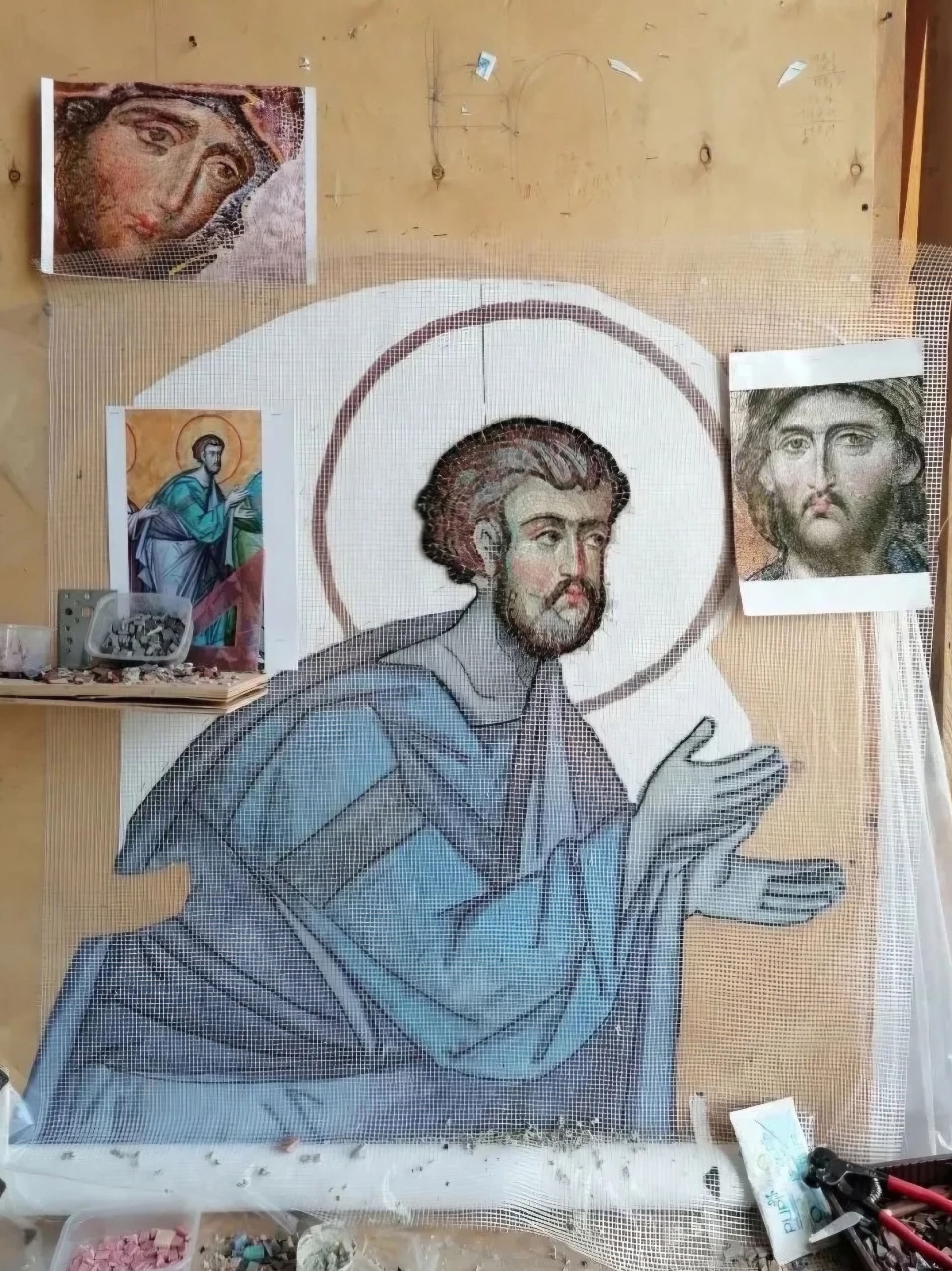 Приближаясь к первой годовщине первого богослужения в большом храме, мы начали важный этап: в мастерских Сергиева Посада и Дивеево приступили к созданию мозаики для алтаря. Под конхой с изображением Богородицы с Младенцем на троне разместятся сюжеты, посвящённые Причащению апостолов, умовению ног и Молению о Чаше. Эти мозаики завершат благоукрашение алтаря.