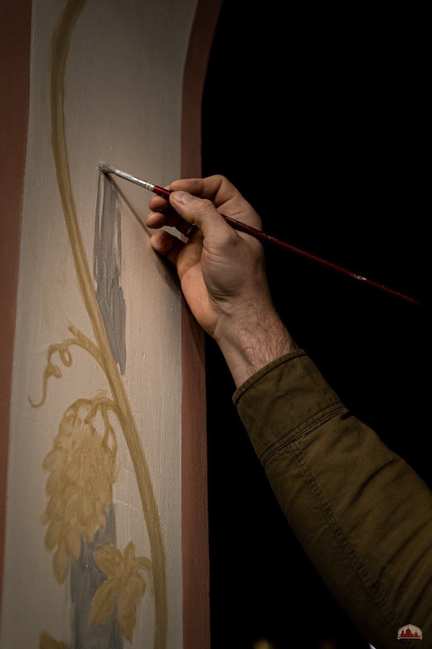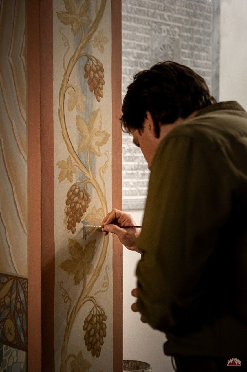 Приходские мастера-иконописцы трудятся над росписью криптивого храма Сорока мучеников Севастийских.