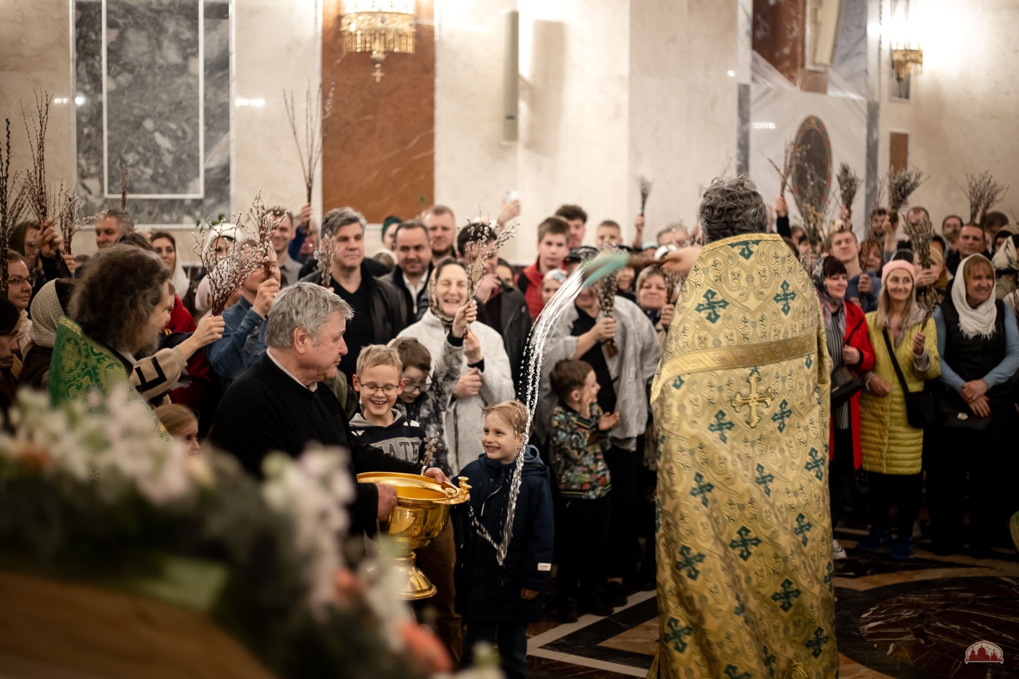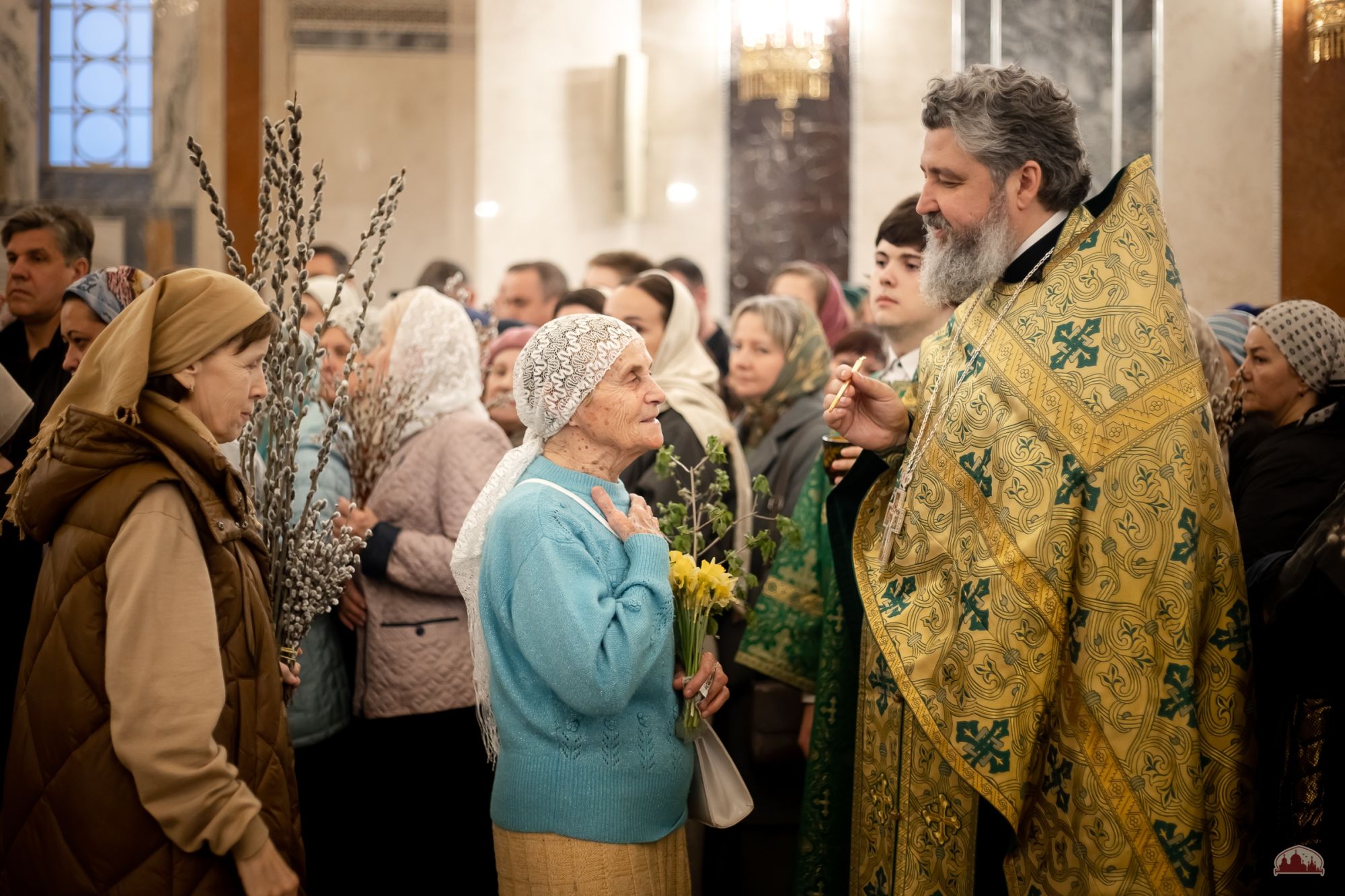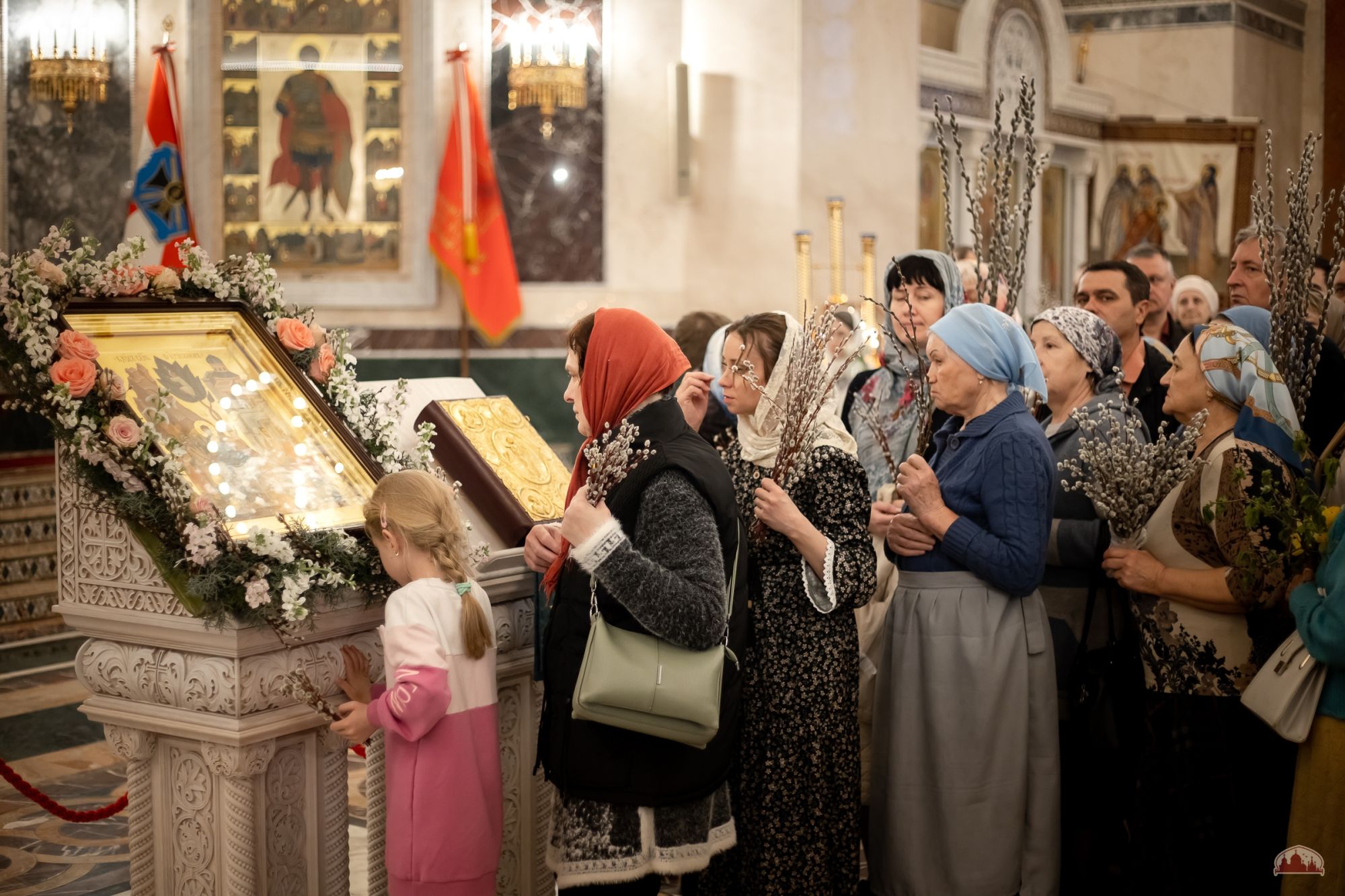 По традиции в этот день было совершено освящение ветвей вербы и прошла ярмарка приходских мастеров.