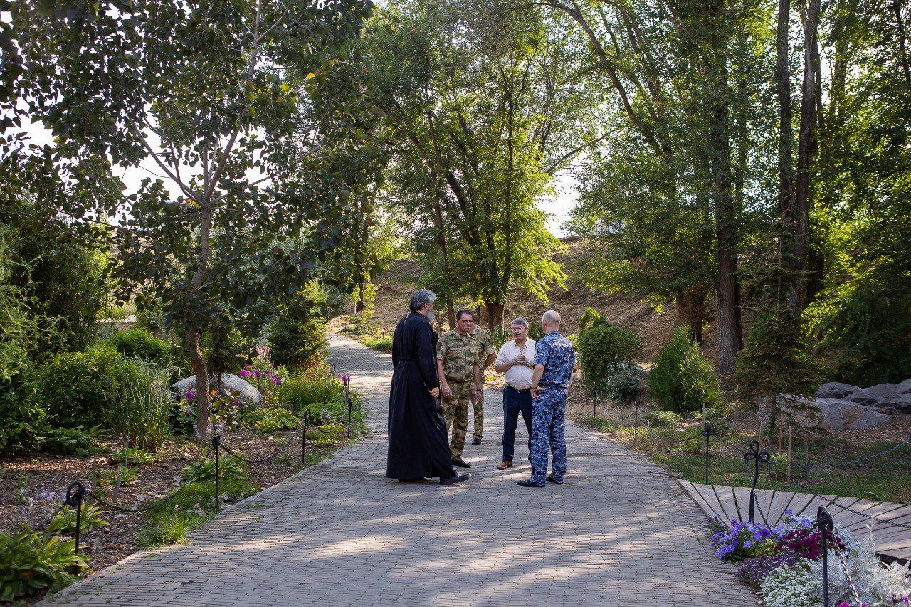 Гостей встречал настоятель прихода, руководитель Епархиального отдела по взаимодействию с Вооруженными Силами и правоохранительными учреждениями протоиерей Валерий Волощук. Участники осмотрели храмовый комплекс, включая строящийся храм в честь святого великомученика Георгия Победоносца, мастерские церковного искусства и Георгиевский сад.