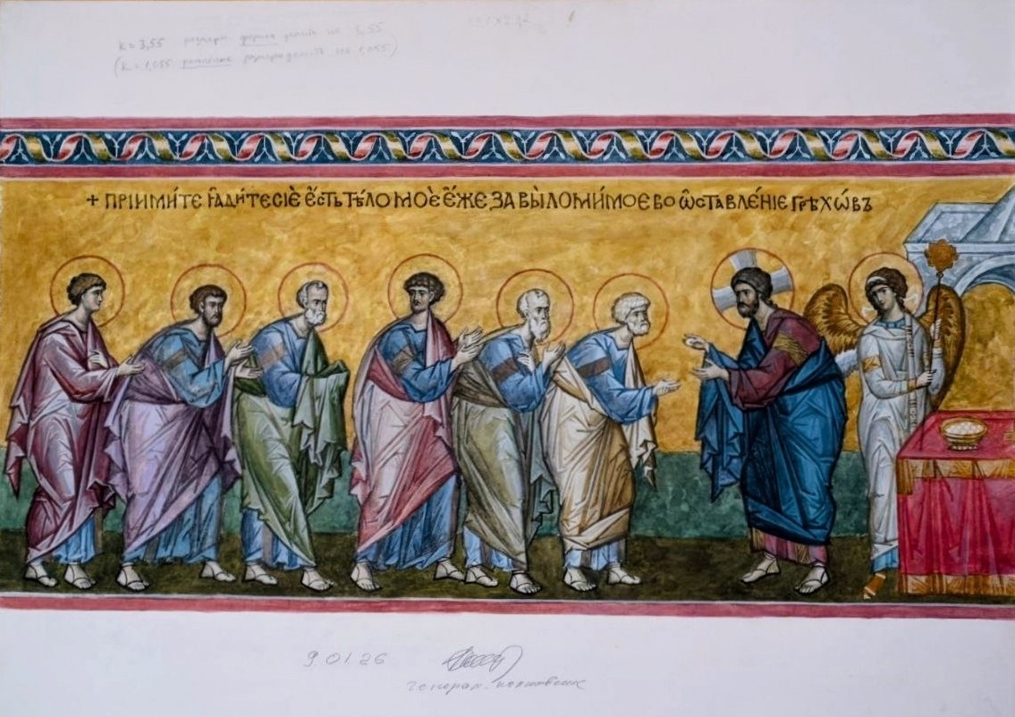 "Причащение апостолов" - эскиз мозаики в алтарь храма святого Георгия Победоносца.