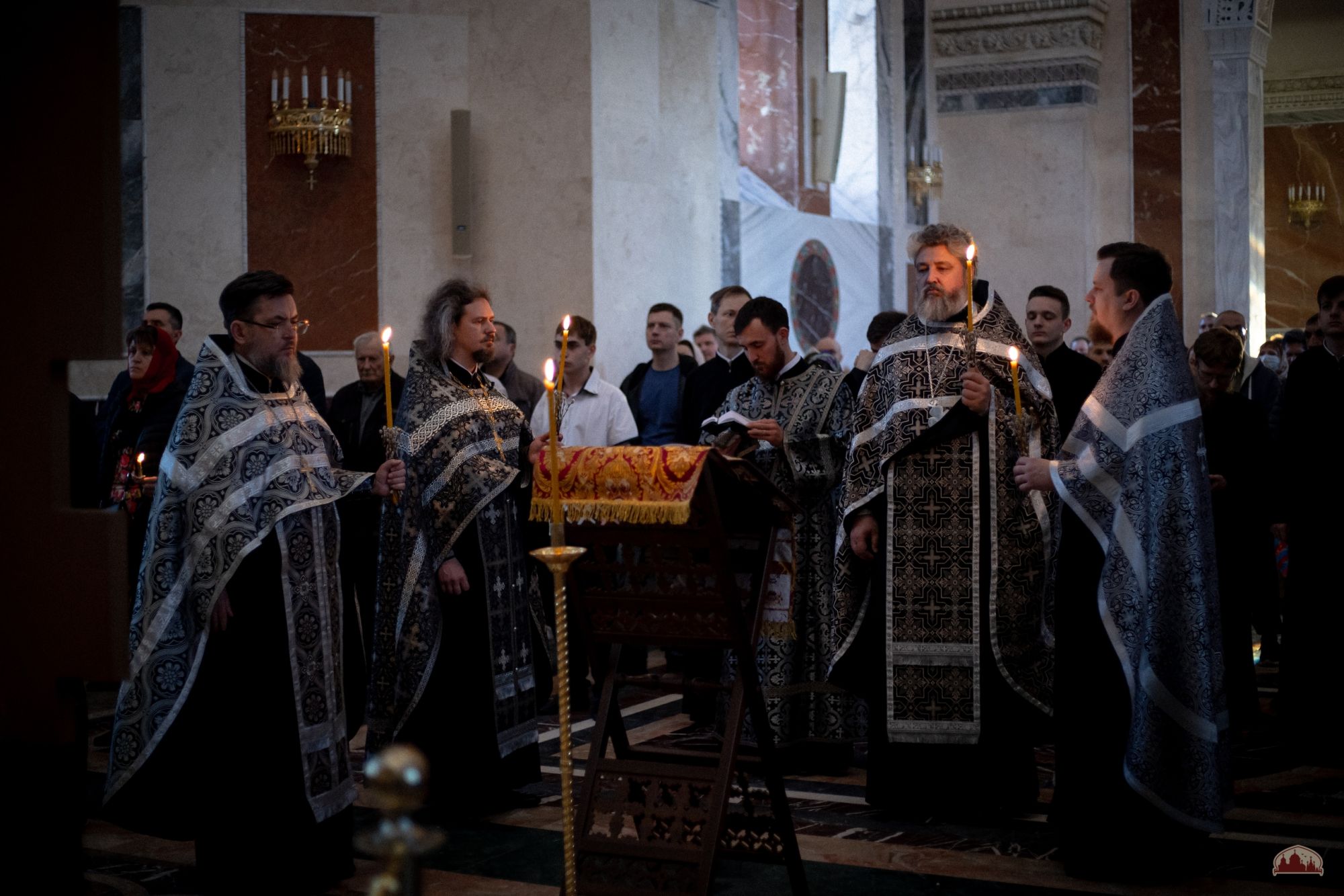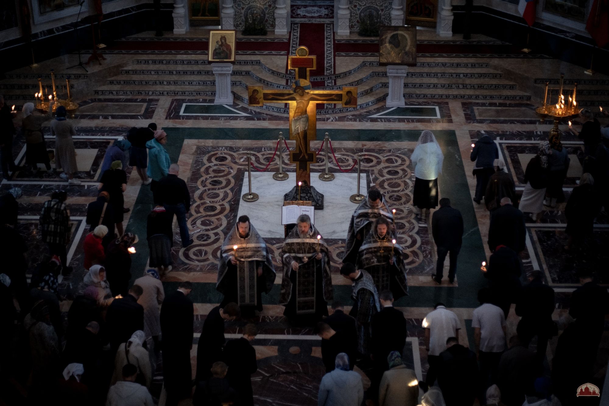 Ныне висит на древе Тот, Кто повесил землю на водах; терновым венцом покрывается Ангелов Царь; в порфиру шутовскую одевается Одевающий небо облаками; пощечины принимает Освободивший от греха Адама в Иордане; гвоздями прибивается Жених Церкви; копьем пронзается Сын Девы. Поклоняемся страданиям Твоим, Христе, покажи нам и всеславное Твое Воскресение.