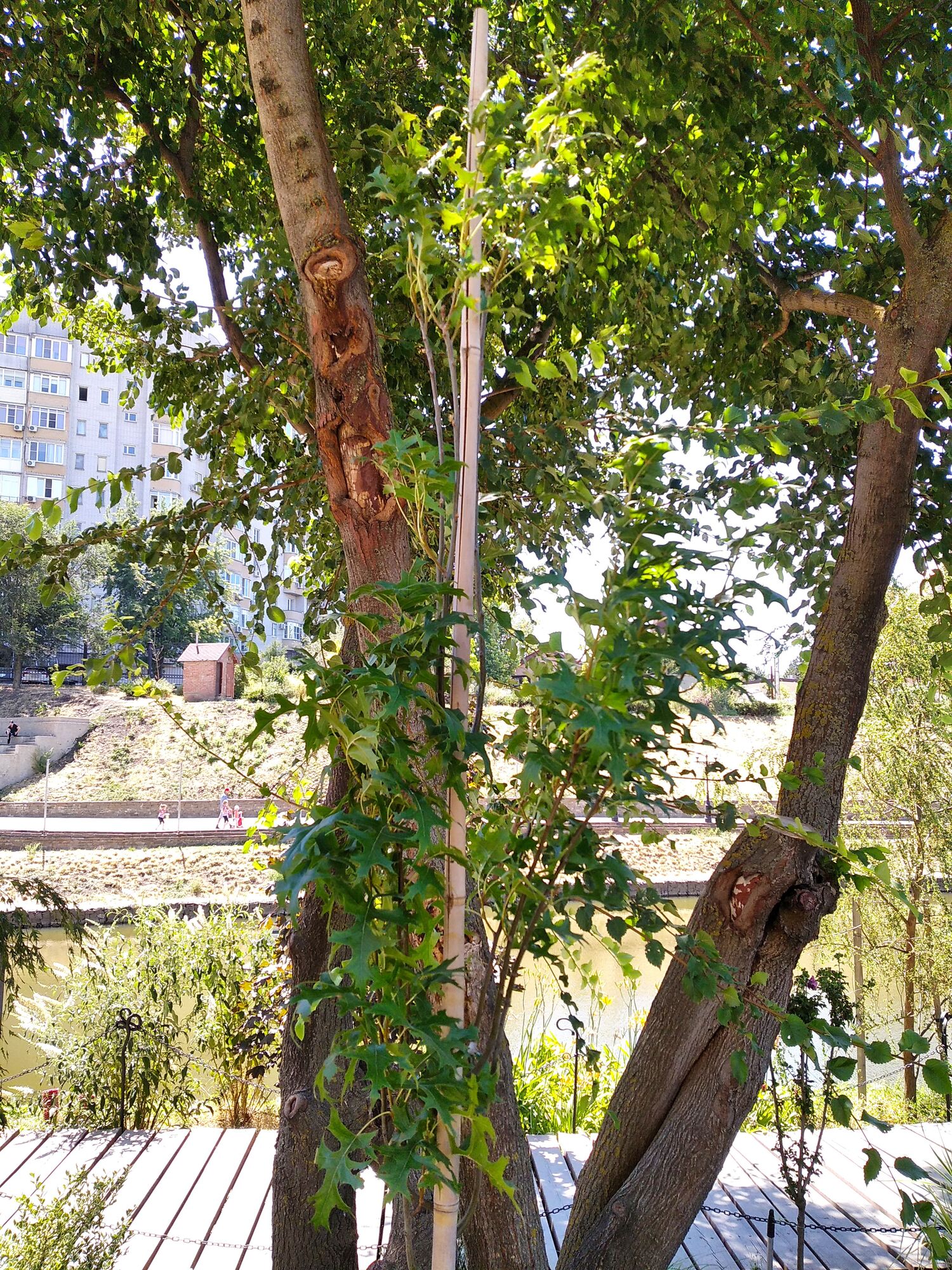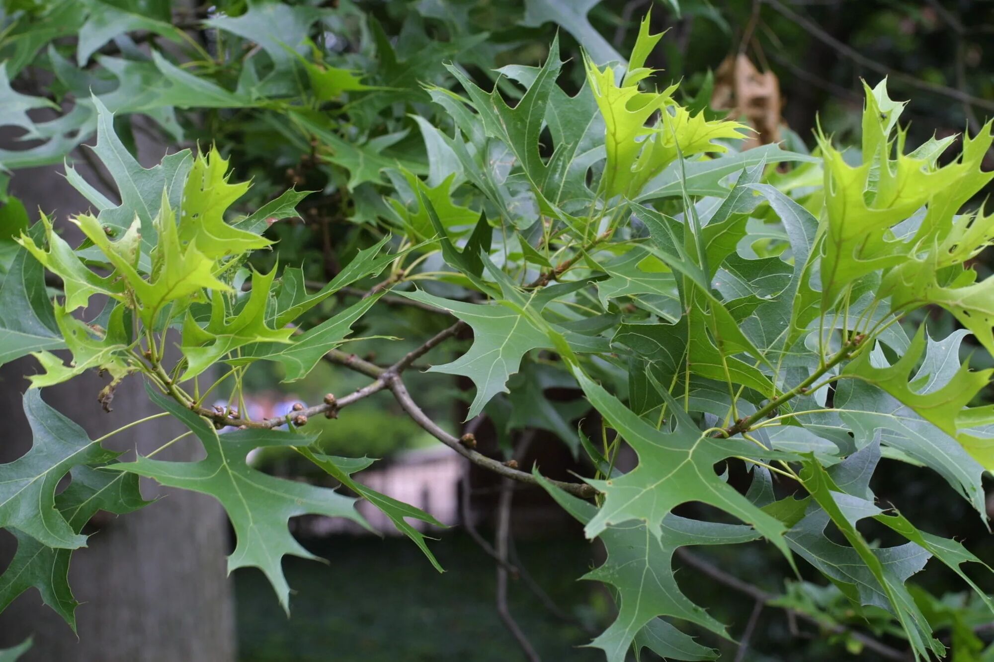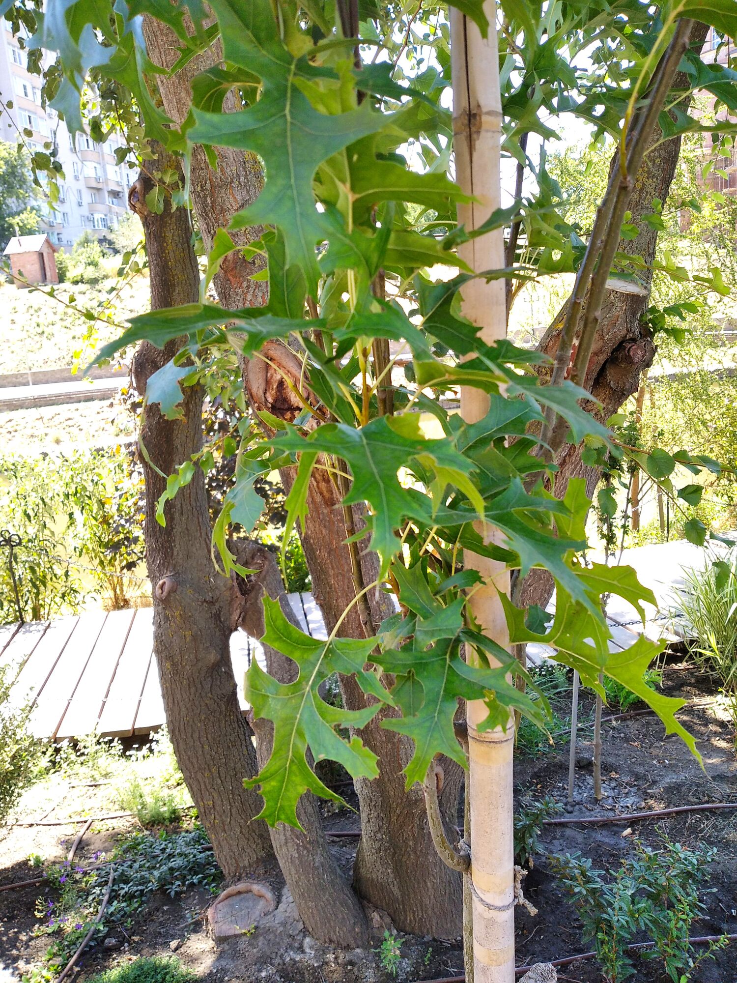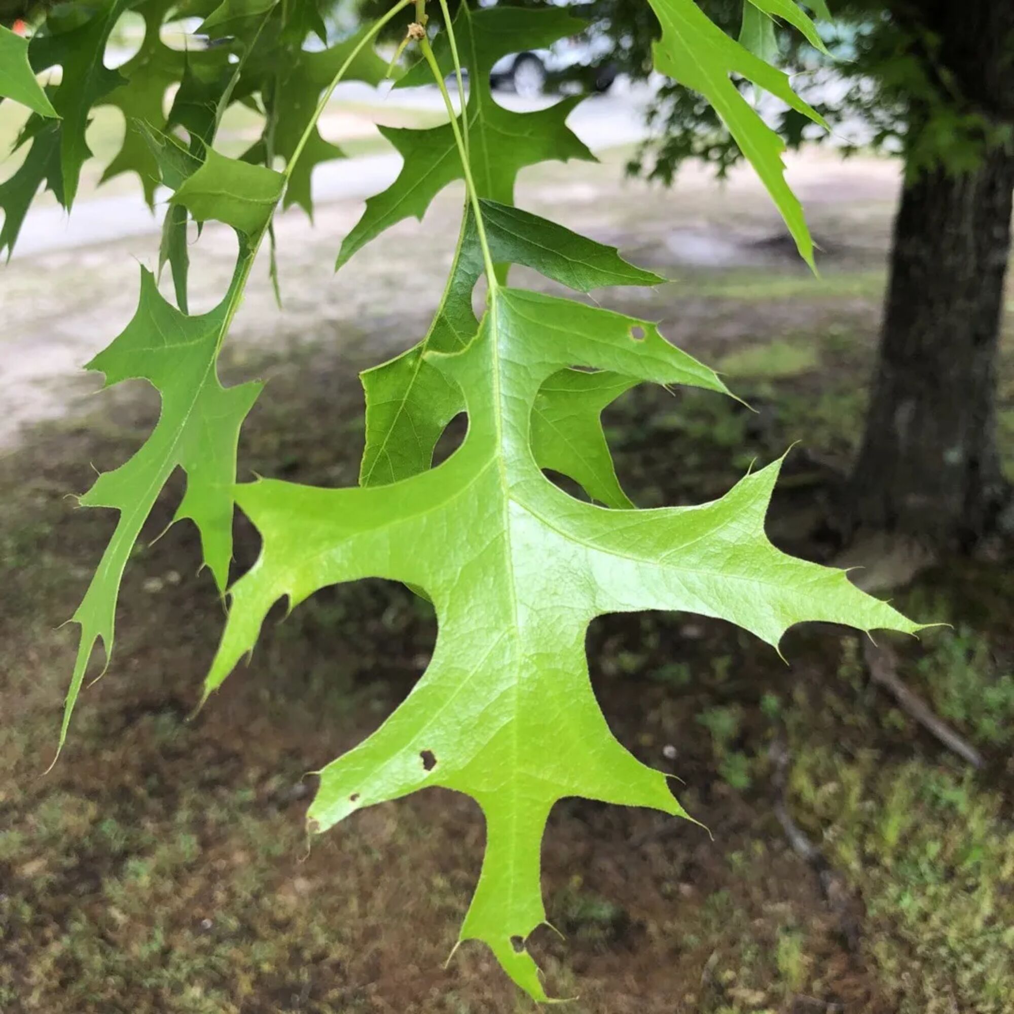 Описание: Крупное лиственное ветвящееся дерево высотой до 25м с пирамидальная кроной и зеленовато-коричневым гладким стволом. Живет до 120 лет. Листья длиной до 12 см, с пятью-семью глубоко вырезанными, почти до середины листа, зубчатыми лопастями, сверху ярко-зелёные, снизу светлее, с пучками волосков в уголках жилок. Осенью — ярко-пурпуровые. Характерной чертой, свойственной нескольким другим видам дуба, является сохранение красивых (от оранжевого до алого цвета) листьев на молодых деревьях в течение зимы. Это естественное явление, называемое марсценция. Прочная и долговечная древесина дуба используется для производства топлива и целлюлозы, а также для железнодорожных шпал и домашней мебели.