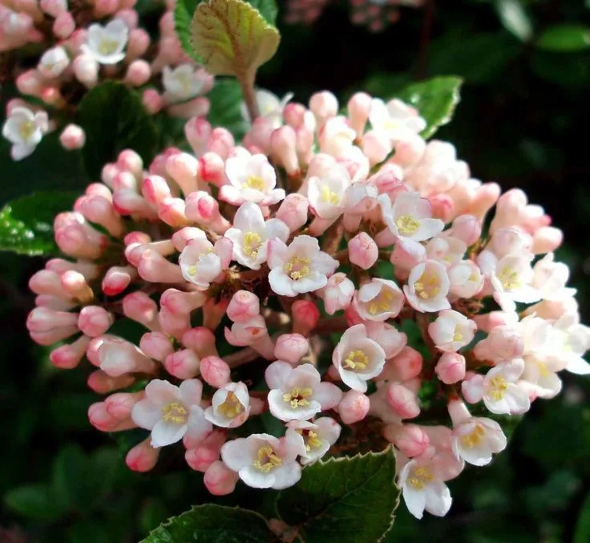 Описание: Многоствольный округлый кустарник высотой 250 см и диаметром 180-240 см, растет медленно. Калина Берквуда была получена путем скрещивания калины Карльса, корейской пряной (Viburnum carlesii) и калины служебной (Viburnum utile). Листья глянцевые, темно-зеленые, яйцевидные, осенью бордовые. Бутоны розовые, цветет рано и эффектно, плоды образуются редко. Этот сорт имеет большие, шарообразные соцветия, полные аромата.