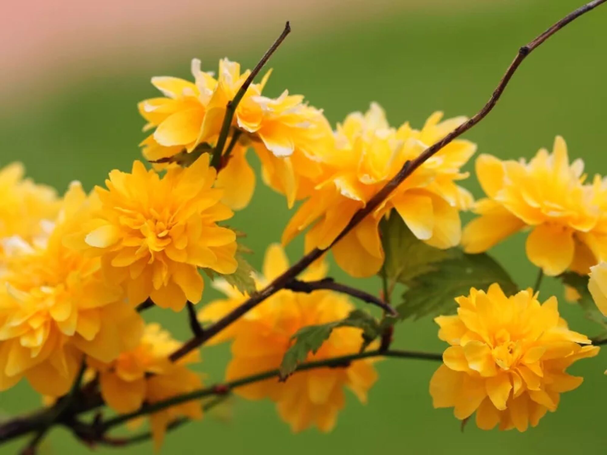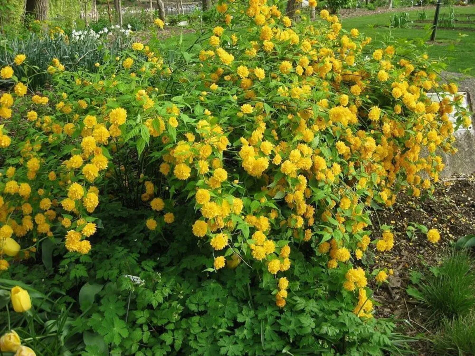 Описание: Листопадный кустарник, в естественных условиях растет на юге Китая и в горных областях Японии. Это растение обладает очень интересной и своеобразной формой цветка, похожей на форму цветка розы, поэтому керрию называют "пасхальной розой". Цветение продолжается почти до конца лета, а осенью керрия может зацвести второй раз. На побегах располагаются листья длиной около 10 см, напоминающие листья малины - зубчатые, с острыми кончиками. У них насыщенно-зеленый цвет летом, и ярко-желтый - в осенние месяцы.