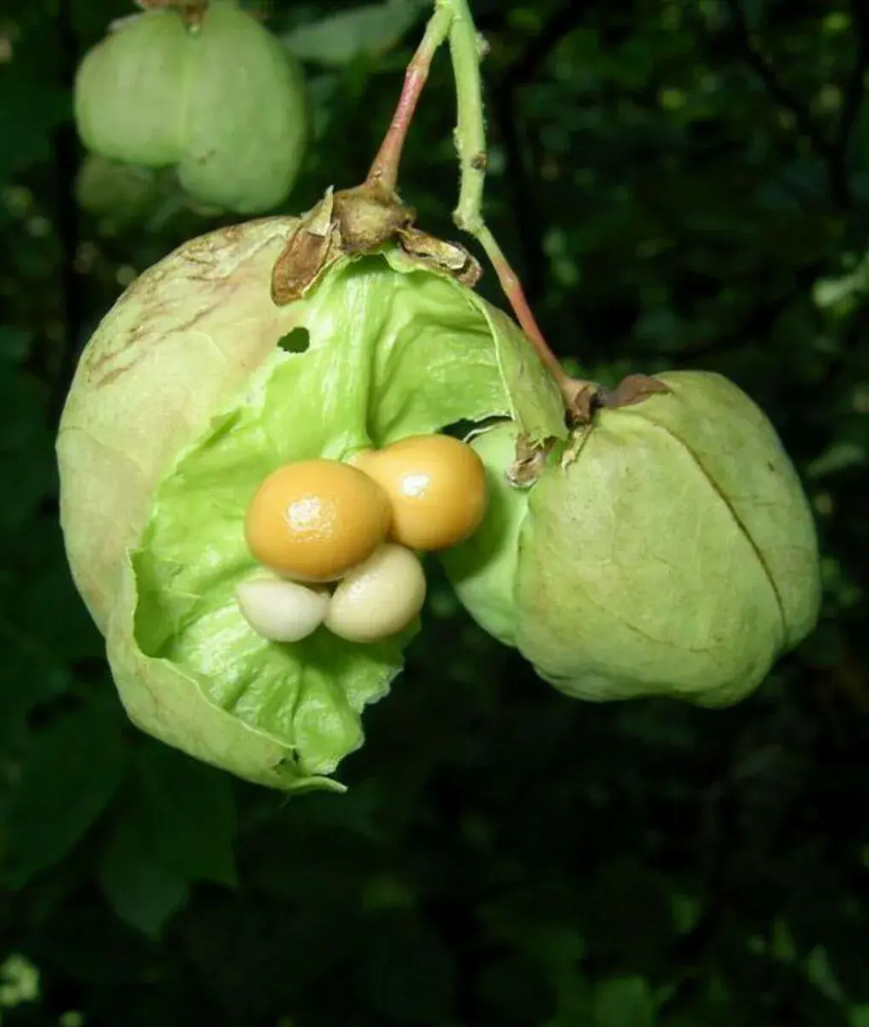 Описание: Кустообразное дерево от 2 до 5 м в высоту. Прочный пряморастущий стебель вначале имеет зеленый окрас, но со временем становится тёмно-коричневым с белесыми крапинками и штрихами. Светло-зеленые листья имеют перисто-сложное строение: одна листовая пластина состоит из 4-7 небольших листочков с заострёнными краями и чётким жилкованием. Цветет с конца весны в течение трех недель. Грозди белоснежных цветов напоминают грозди винограда. Цветки источают нежный аромат и привлекают пчел. Хороший медонос. Плоды похожи на трехгранные коробочки с острой вершиной с одной стороны. Если их потрясти, раздается звон, как из погремушек. Один из специфических продуктов грузинской кухни. Используется в народной медицине.