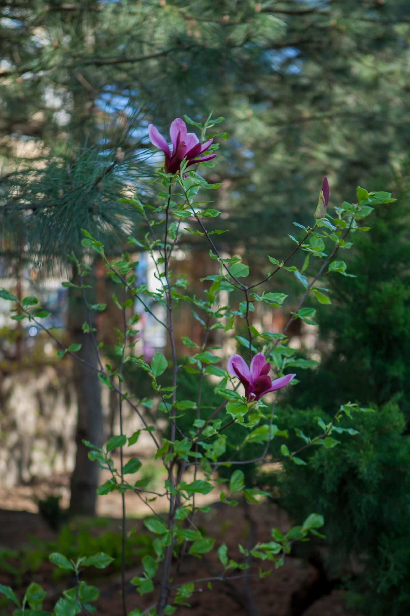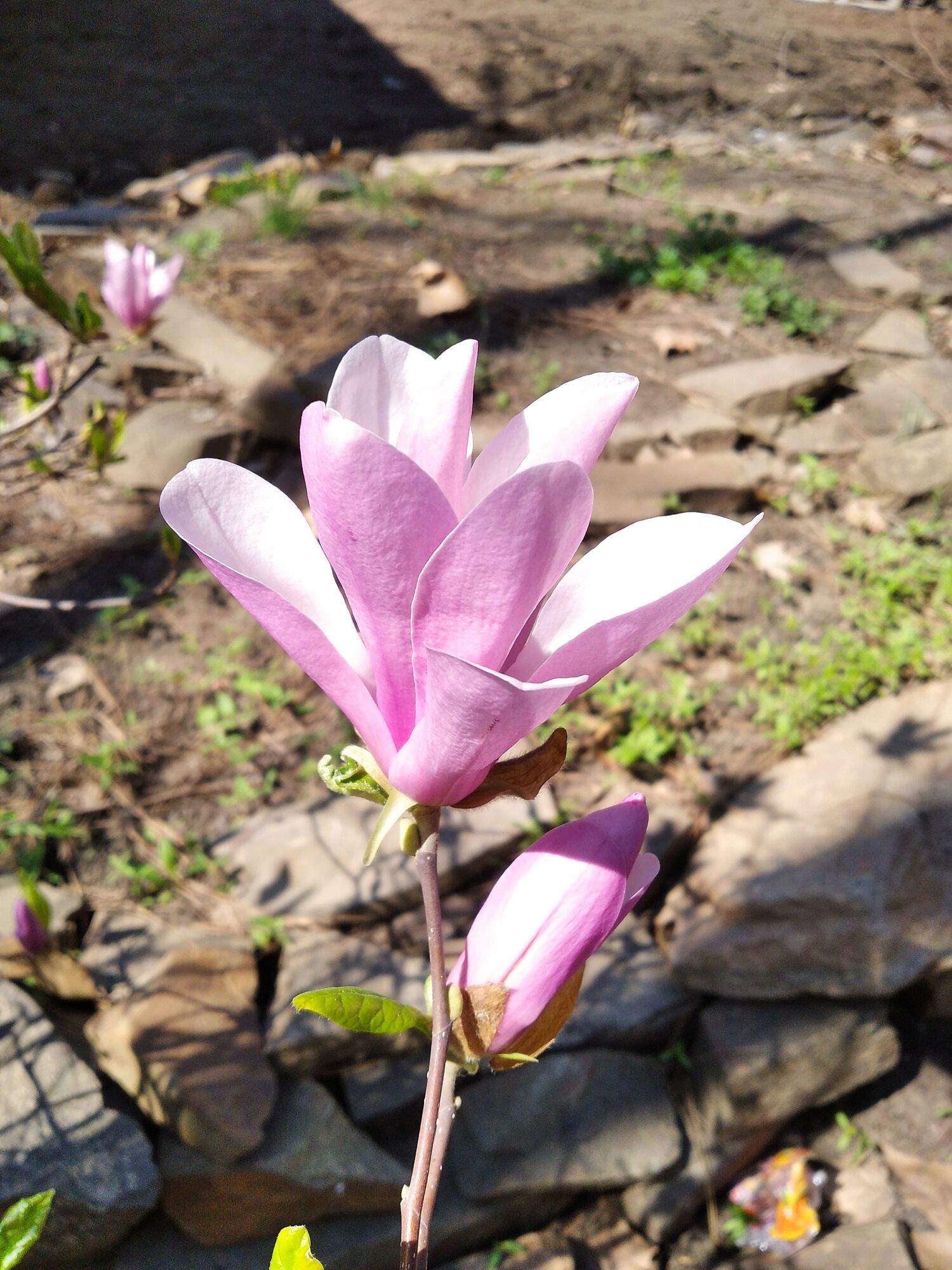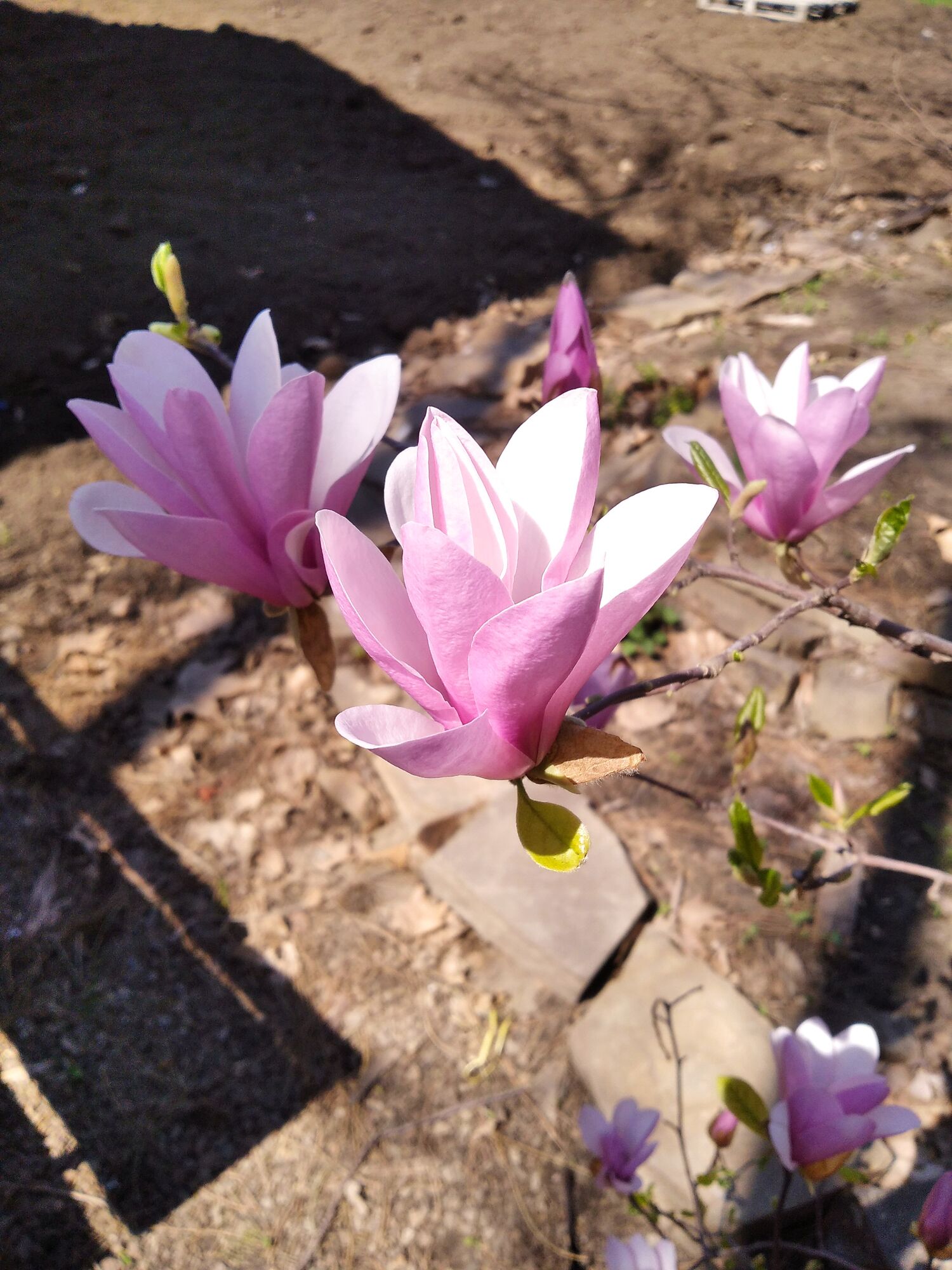 Описание: Листопадное невысокое дерево или кустарник высотой от 2-3 м до 8 м, с круглой кроной. Листья большие светло-зеленые. Цветки чашевидные очень крупные, размером до 25 см. Цвет варьирует от чисто-белого (magnolia Lennei) до двухцветного (magnolia Alexandrina). Цветение в апреле - мае. Вид был выведен Этьеном Суланжем в 1820 году во Франции.