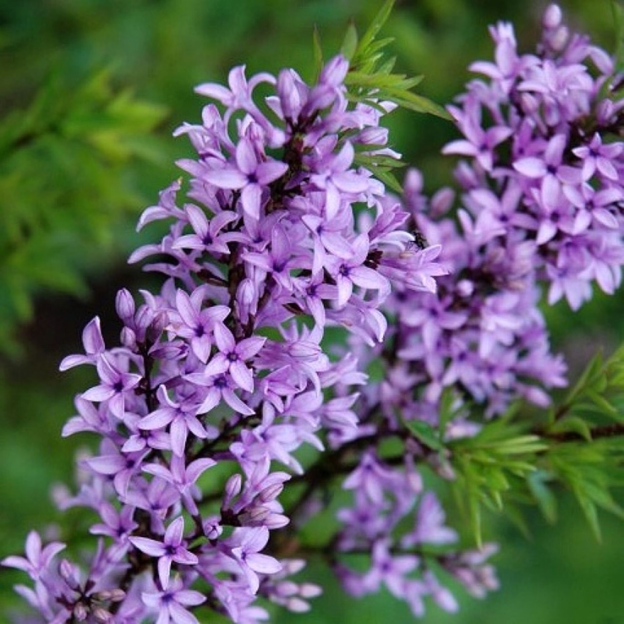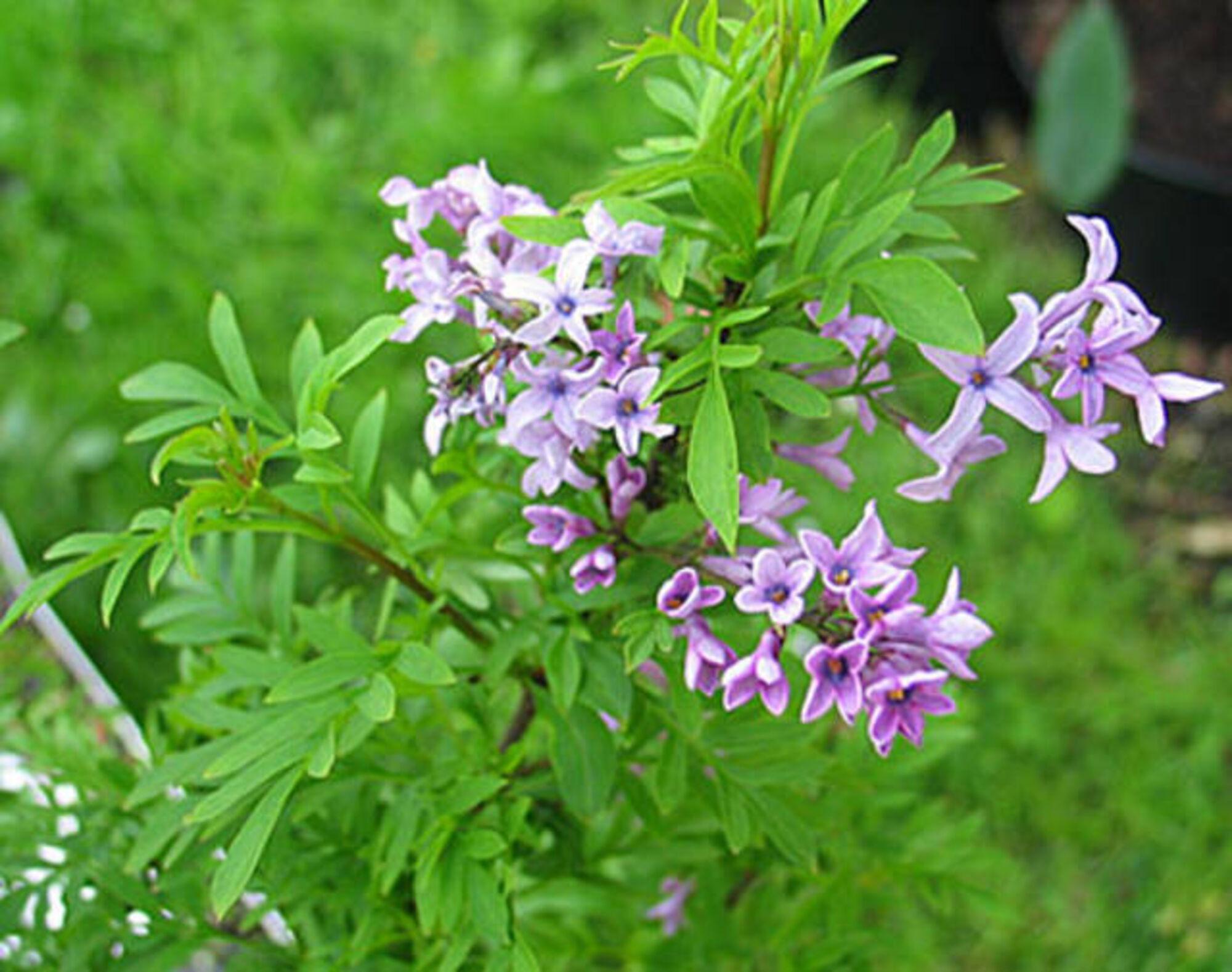 Описание: Куст раскидистой формы, имеет карликовую высоту, достигая размера 150 см. Соцветия имеют метельчатую форму и рыхлую плотность, а длина соцветия может достигать до 8 см. Сирень среднецветковая, диаметр цветков до 2 см. Цветы светло-лиловые. Период цветения сирени приходится на май-июнь. Цветение очень обильное и продолжается от 2 до 4 недель. Специфический аромат цветков этого растения может быть не всем по душе.