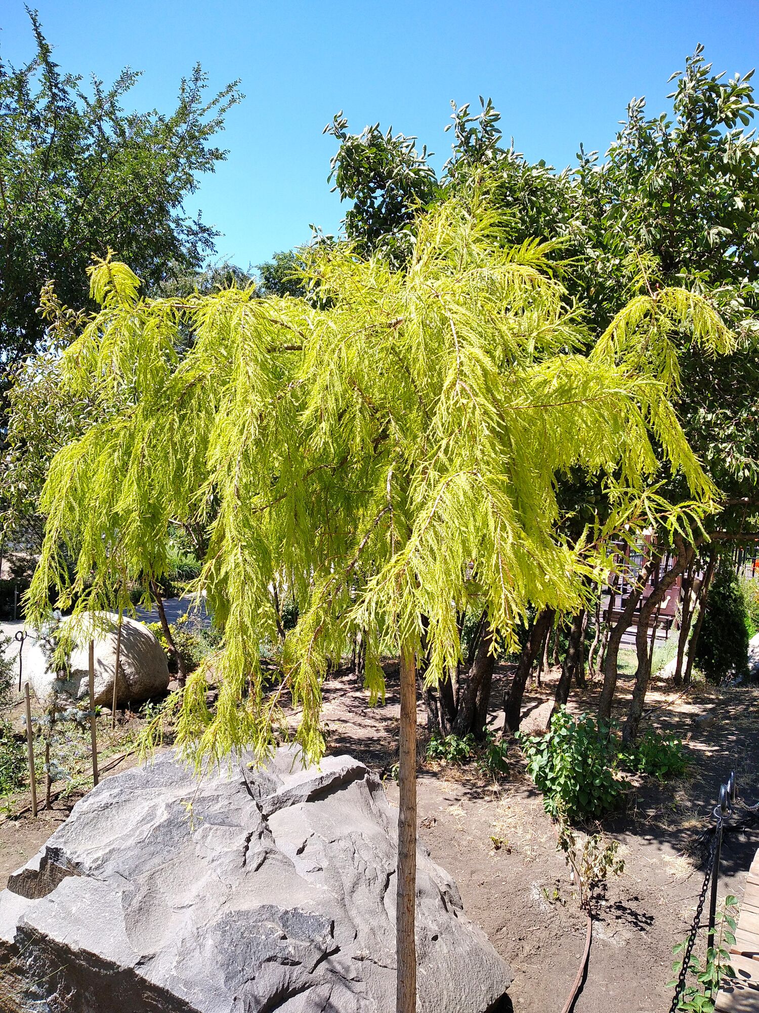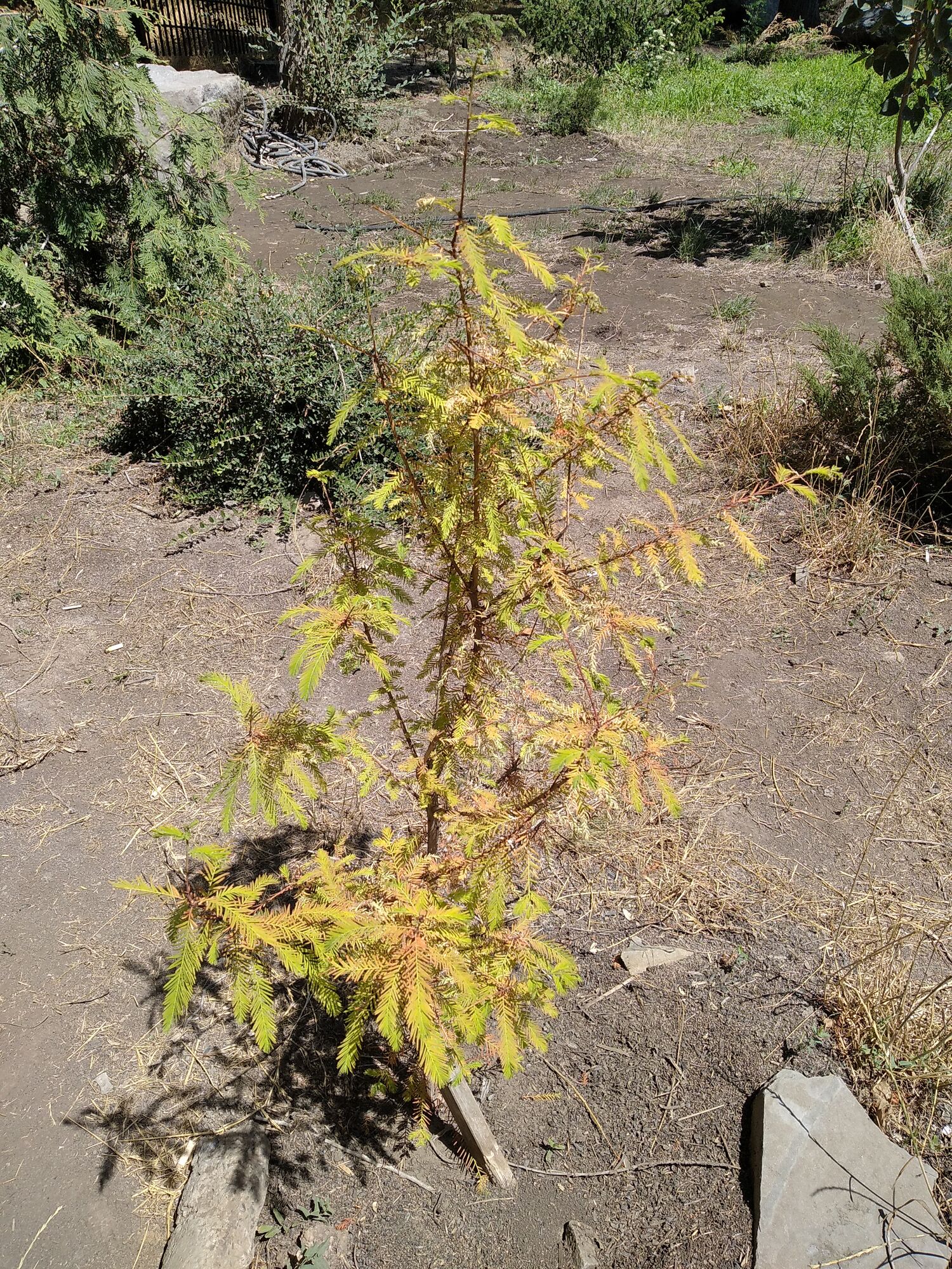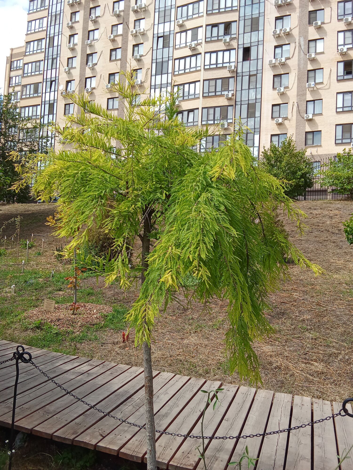Описание: Листопадное хвойное растение. В высоту может достигать 46 м. Листья (хвоя) перистые, линейные, с округлой острой вершиной, мягкие, светло-зелёные, 16-18 мм длиной, двурядно (гребенчато) расположенные и осенью ежегодно опадающие вместе с укороченными побегами. Предпочитает развиваться на сырых участках с высоким уровнем грунтовых вод, в болотистой местности, в низких речных берегах, часто растет непосредственно в воде, используя высокие корневые наросты «пневматофоры» для дыхания. Древесина отличается качественными механическими свойствами и стойкостью перед гнилостными процессами. Используется в качестве сырья для строительства столбов, мебели, декоративных предметов интерьера. Внешне очень похож на метасеквойю. Главное отличие в расположении хвои: у таксодиума она поочередная, а у метасеквойи - супротивная.