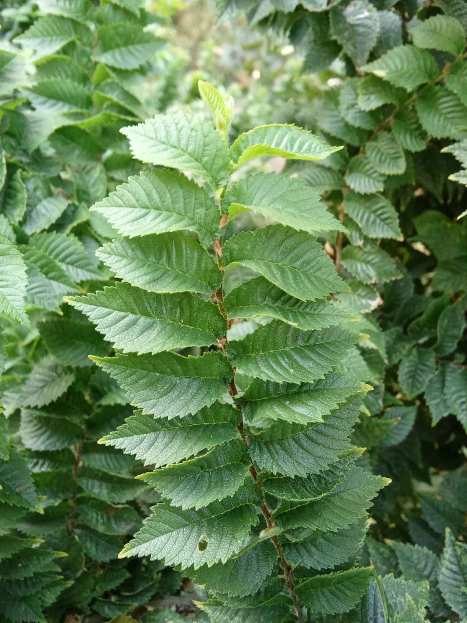 Описание: Медленно растущий, густооблиственный декоративный сорт вяза, который может быть сформирован как деревом так и кустарником. Листья мелкие удлиненные, упорядоченно расположенные на ветвях, темно-зеленого цвета, остаются на дереве в течении всей зимы. Этот сорт привлекает нестандартной для вяза фактурностью.
