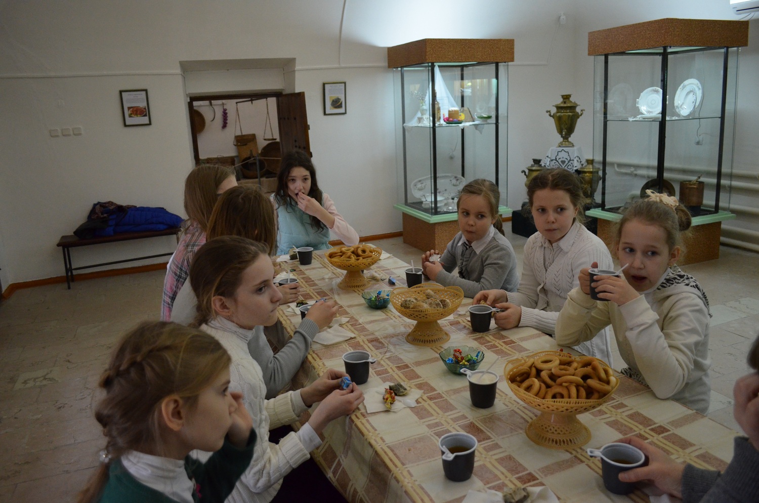 Пьеса маленьким зрителям пришлась по душе: они дружно смеялись над глупыми куклами, переживали за добрых героев в трудной ситуации. Александра Кропивницкая поделилась в стихах секретом успеха актёра - кукольника. В завершение мероприятия директор музея-заповедника Шихалева Н.В. поблагодарила юных артистов за участие и вручила руководителю театра кукол Шабеко Валентине Антоновне благодарственное письмо. Работниками музея любезно был накрыт стол для наших воспитанников в столовой атамана.