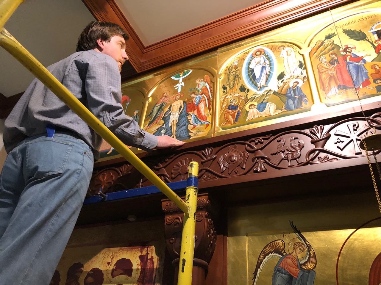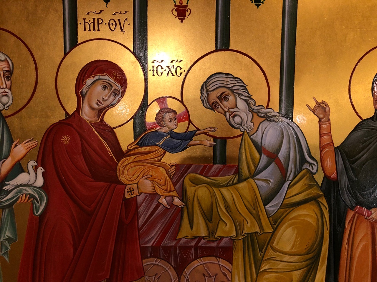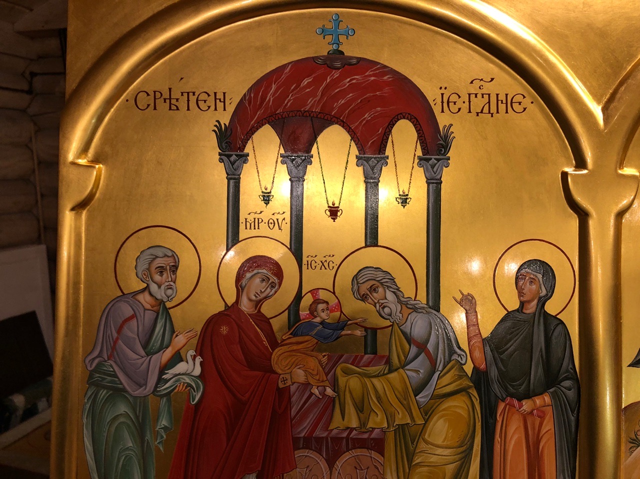 Иконописец Дмитрий Александрович окончил работу над очередной иконой для праздничного ряда иконостаса храма 40-ка Севастийских мучеников. На образе изображены праздники Сретения и Крещения Господня, которые в скором времени мы будем праздновать.
