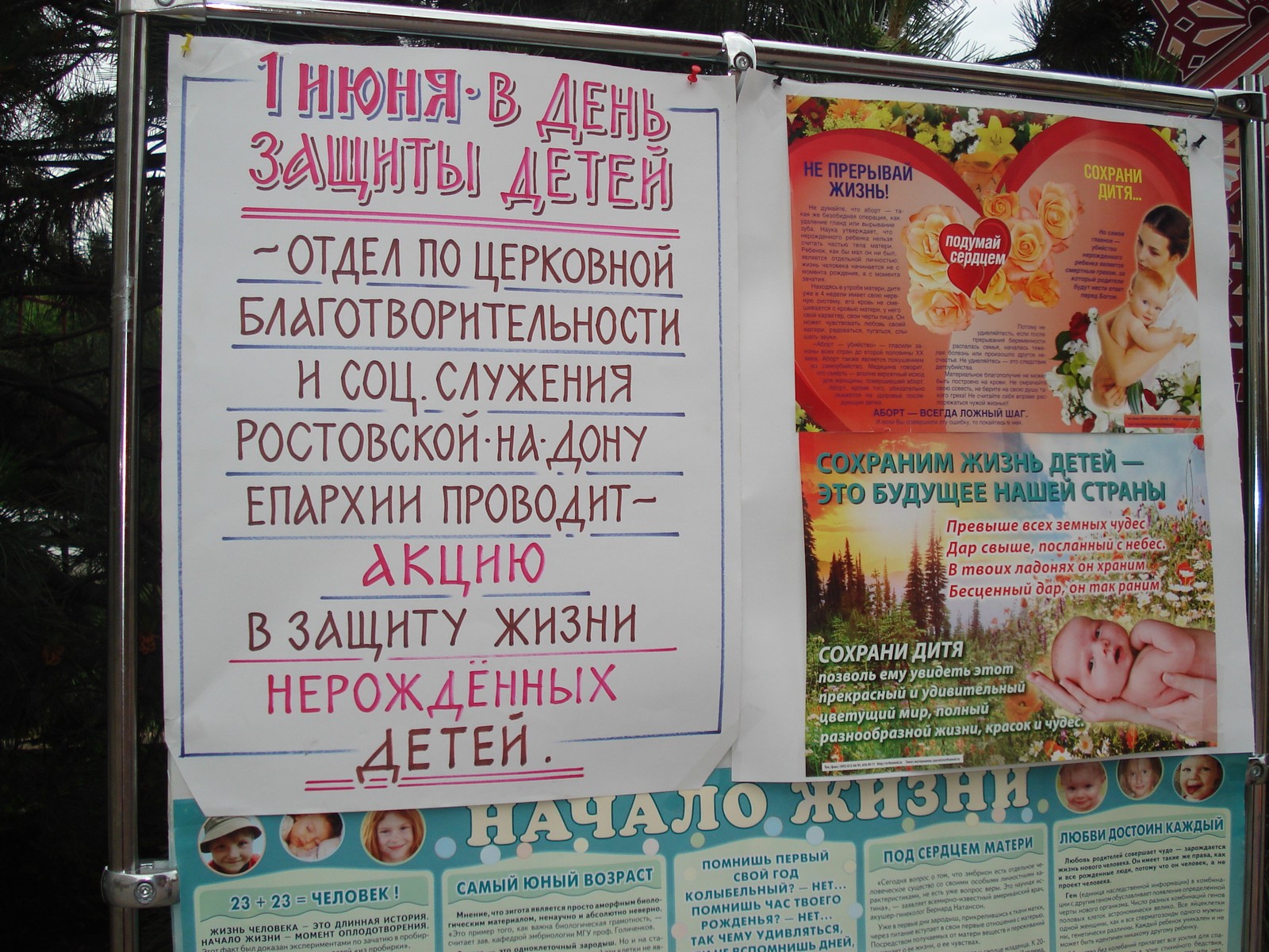 1 июня 2014 года, в День Защиты Детей, на приходе Святого Георгия Победоносца (Храм Иоанна Воина) прошла акция в защиту жизни нерождённых детей. Акция прошла под девизом "Стоп аборты!". Сестры раздавали взрослым листовки за сохранение жизни, а детки с радостью получали в дар разноцветные надувные шарики.