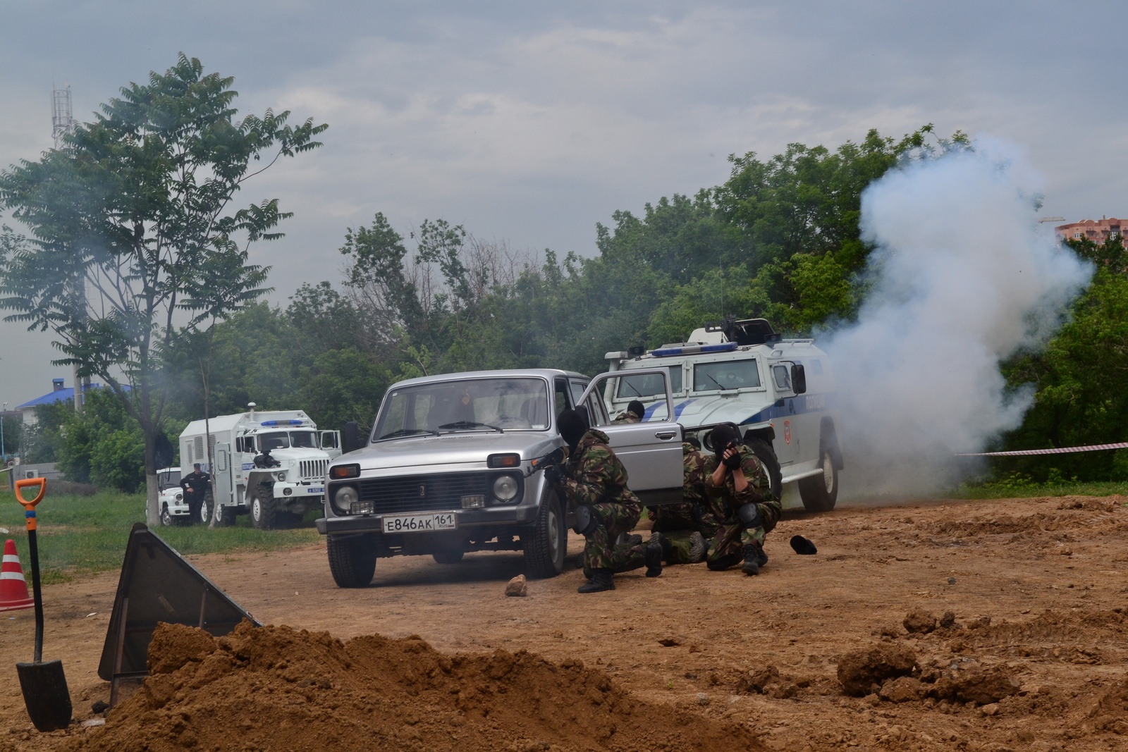 Гости праздника - сотрудники областного ОМОНа перед началом организовали для всех собравшихся жителей г. Ростова-на-Дону показательные выступления по задержанию предполагаемых преступников с использованием трех единиц бронетехники и легкового автомобиля. Также была организована выставка современного вооружения и технических средств, используемых специальными подразделениями МВД для обеспечения безопасности граждан Ростовской области.