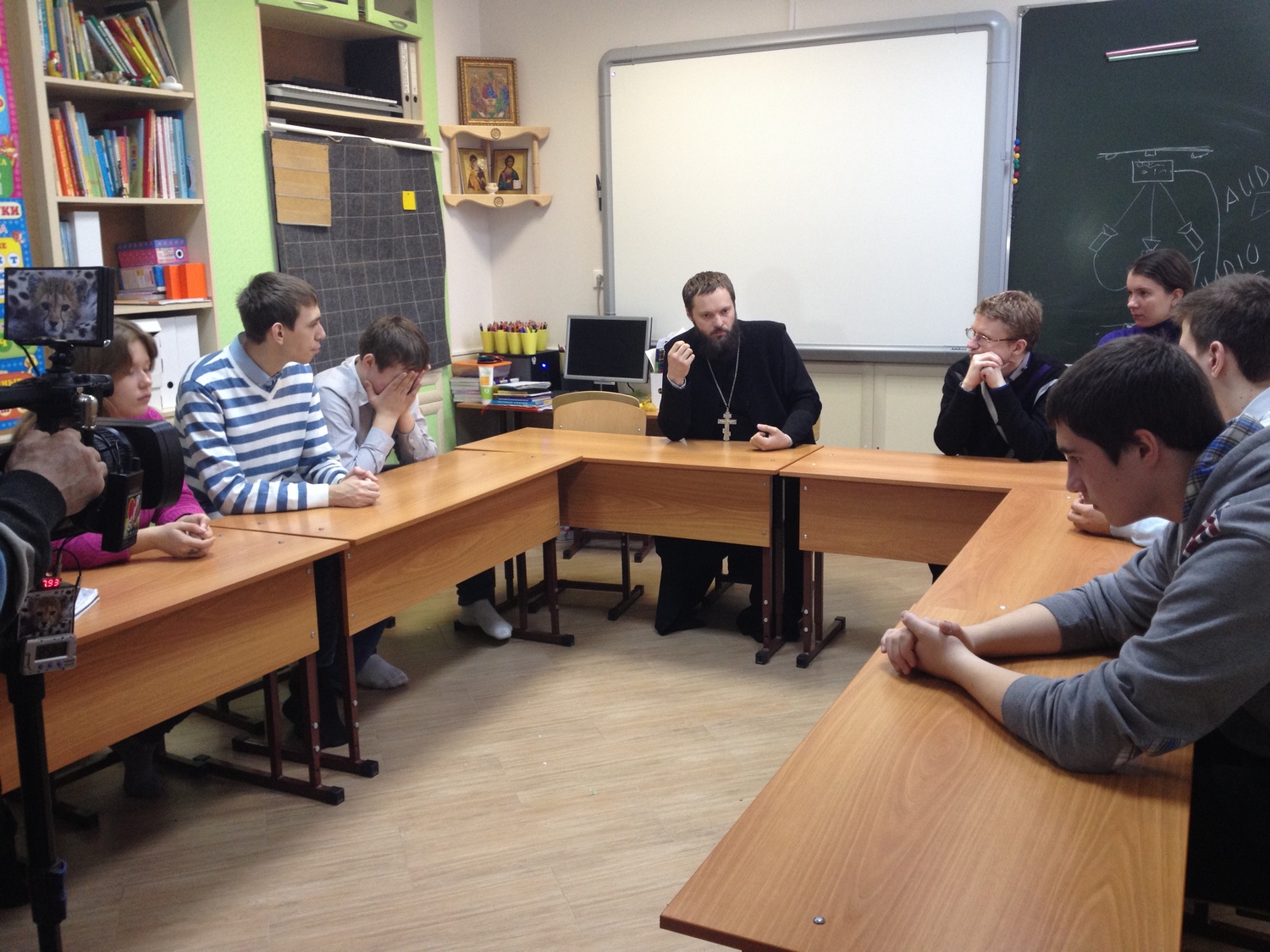 Наше занятие снимали на видео ребята из приходского пресс-центра, который уже начал работу под руководством Сергея Михайловича Бахарева (тел: 8-918-856-45-28).