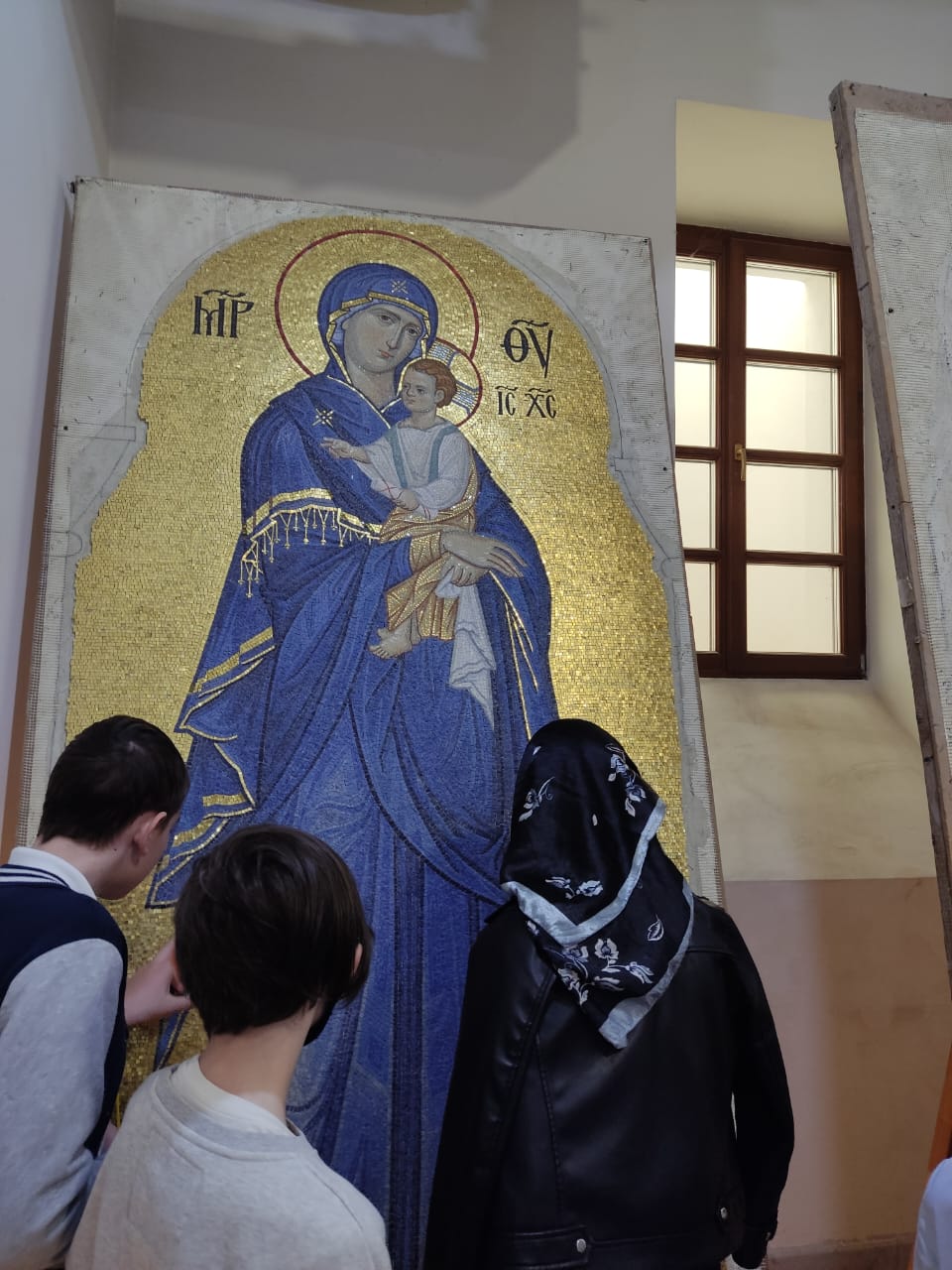 Как устроен храм? Как выглядит злотошвейная мастерская? Что же такое икона? Для чего она нужна? Кто и как их пишет? Эти и другие вопросы мы обсуждали с ребятами из гимназии 117. Ещё мы смотрели на Георгиевский парк, в храме ставили свечи за своих родных и близких и звонили в колокола.