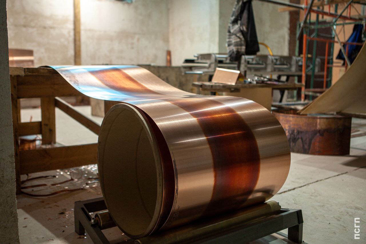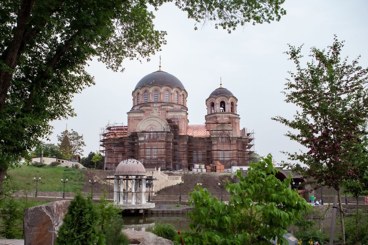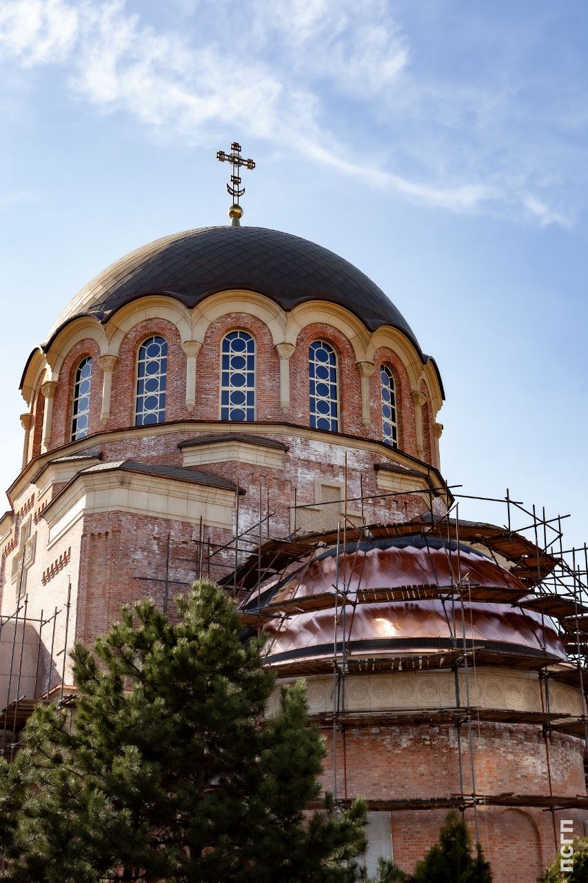 Завершился еще один этап строительных работ главного храма Южного военного округа. Медной кровлей покрыли алтарную конху и трапезную часть храма святого Георгия Победоносца. В финале кровельных работ будет осуществлен монтаж медных листов на арки, центральный вход, северный и южный притворы.