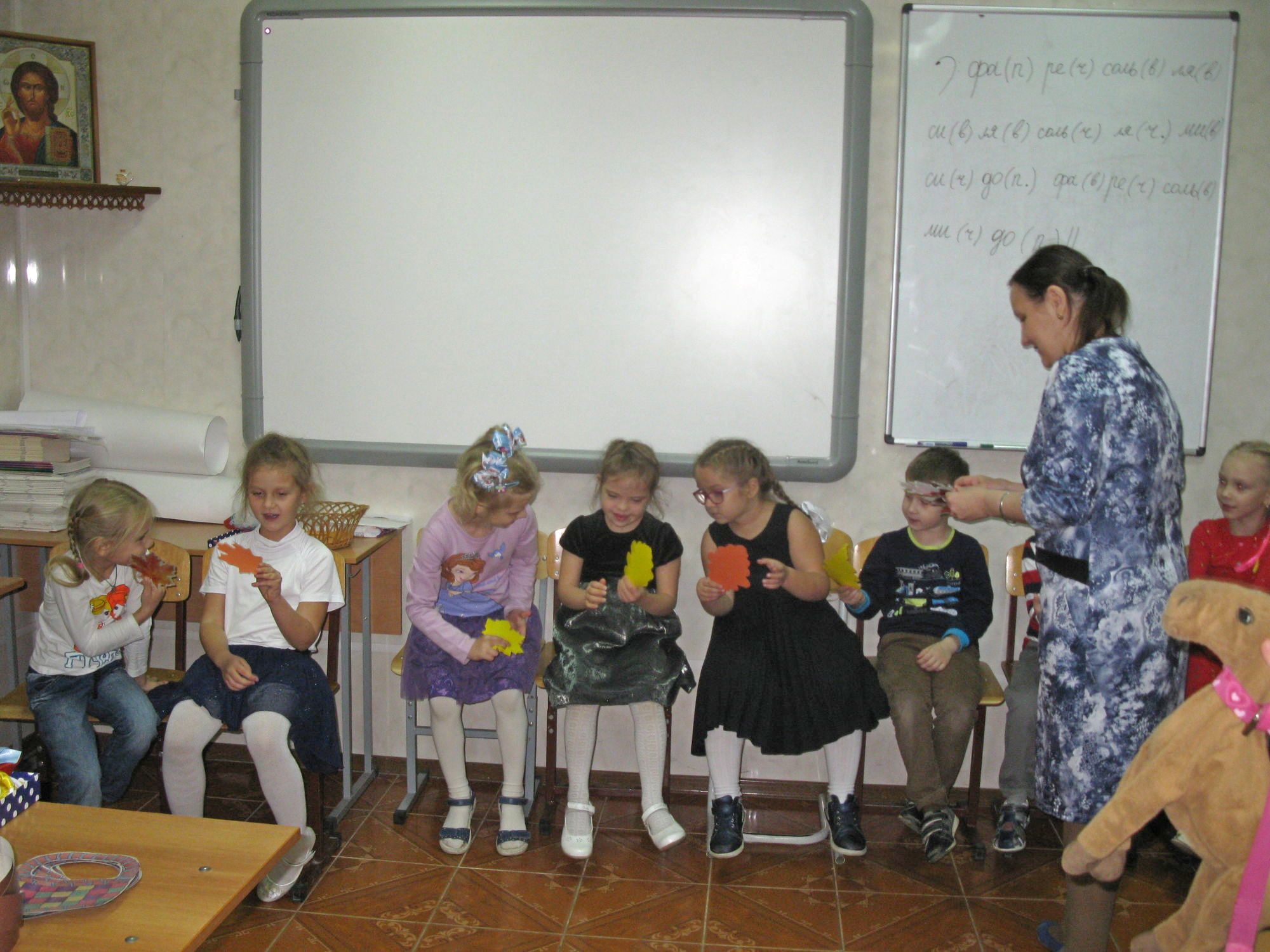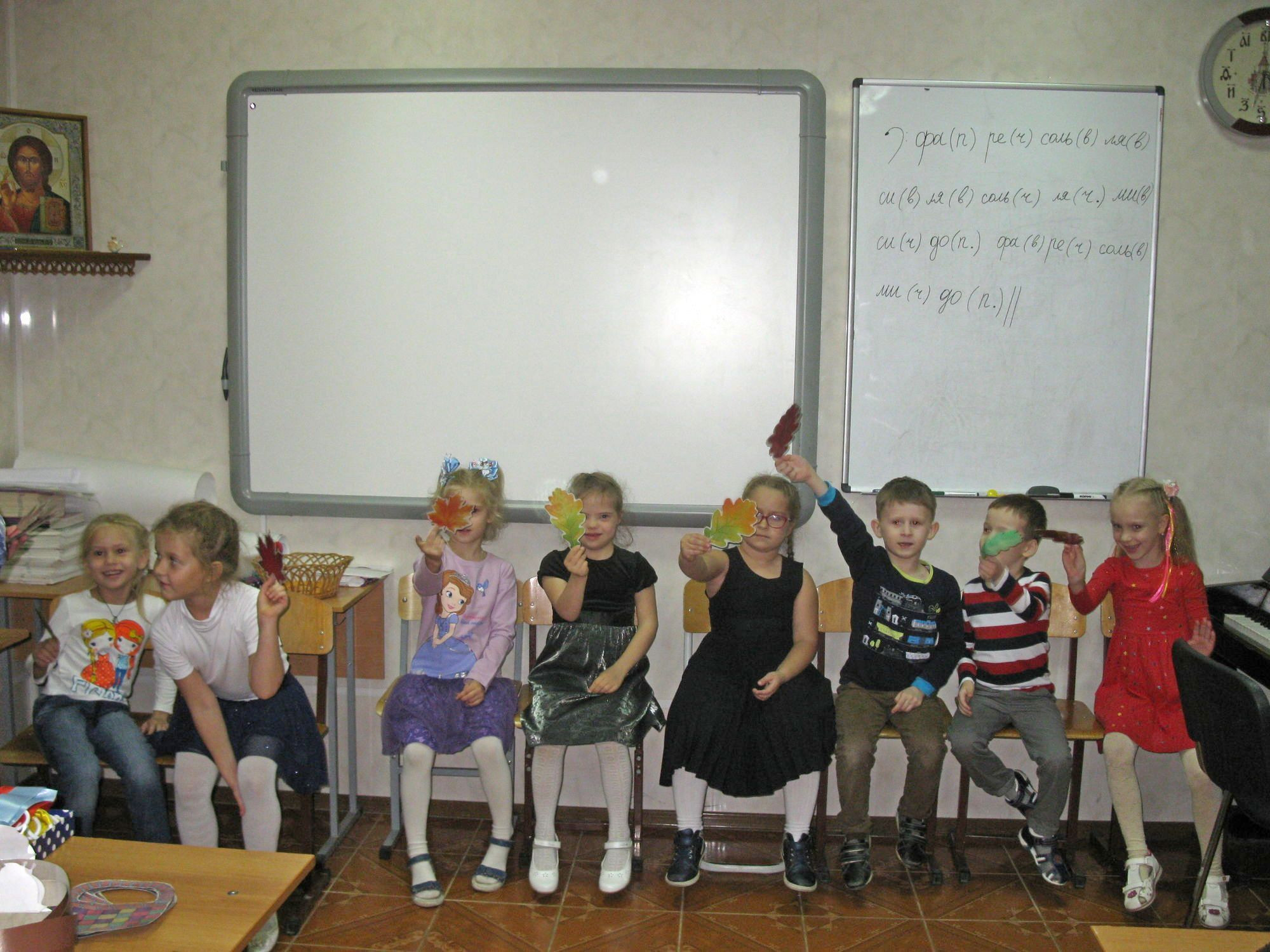 Ребята рассказали о приметах осени, поделились впечатлениями об осенних прогулках в парках, об удивительных композициях из овощей и фруктов во дворе храма. На уроках прозвучали осенние стихи и были исполнены разученные ранее песни о золотой осени. Также дети показали небольшие музыкально-ритмические композиции и увлекательные музыкально-пальчиковые игры.