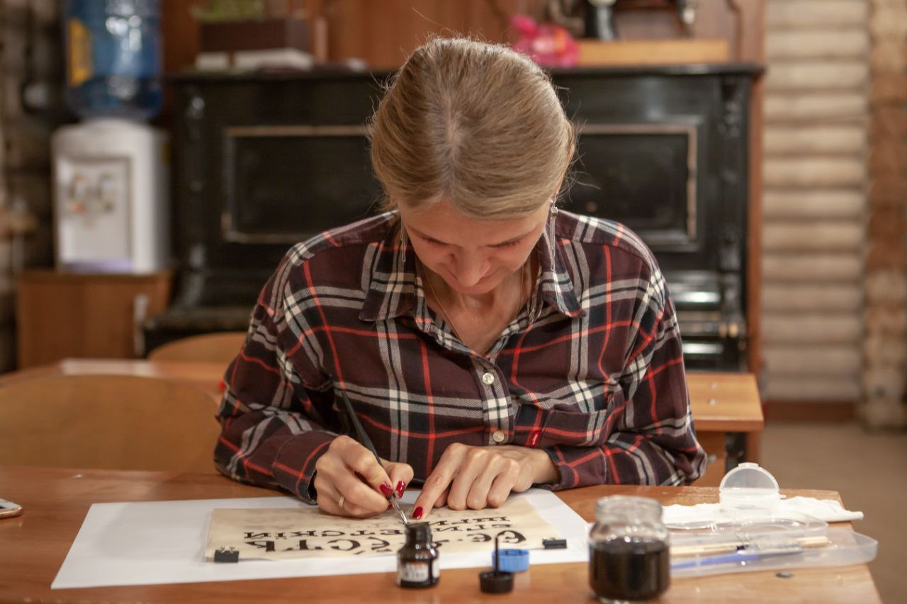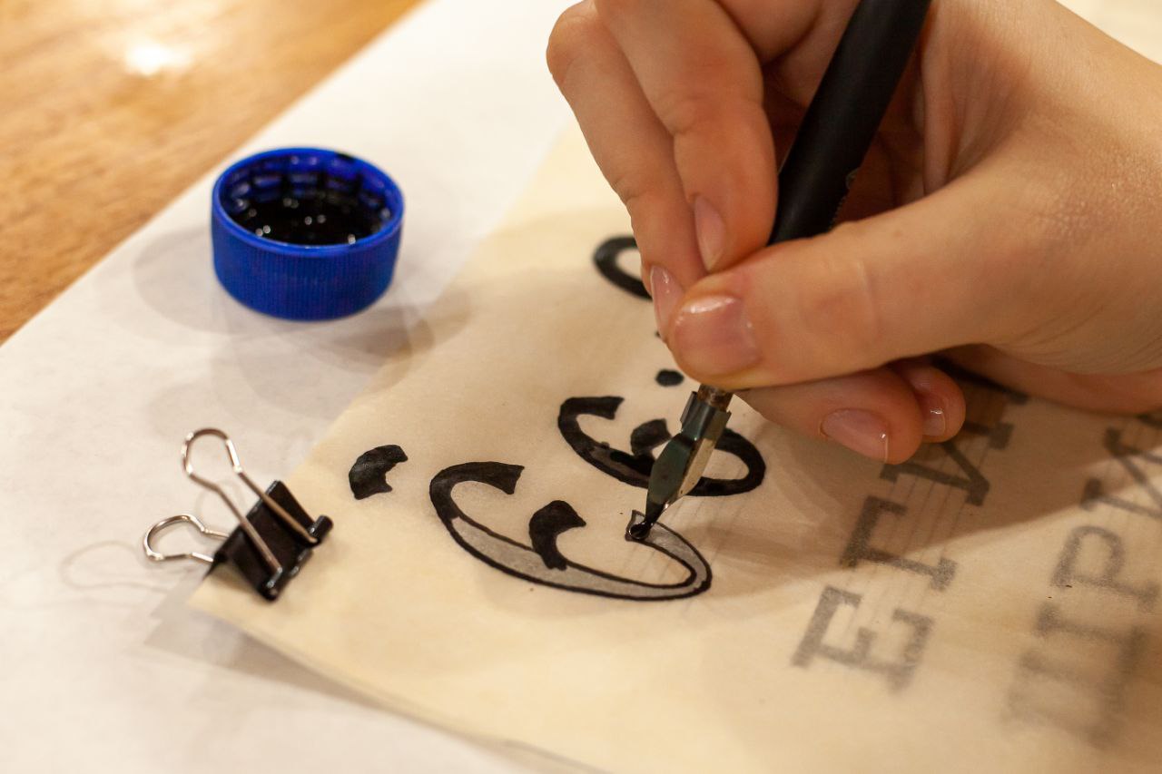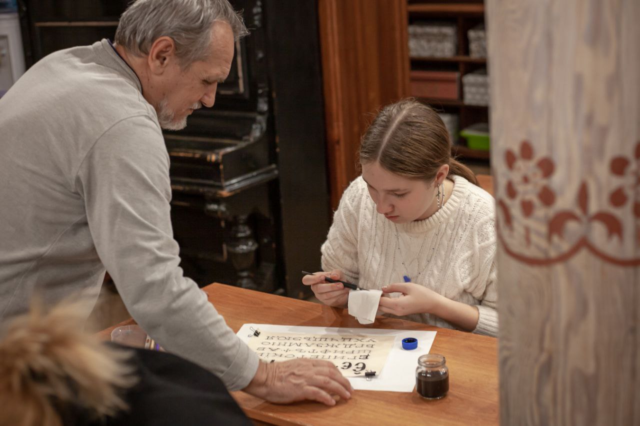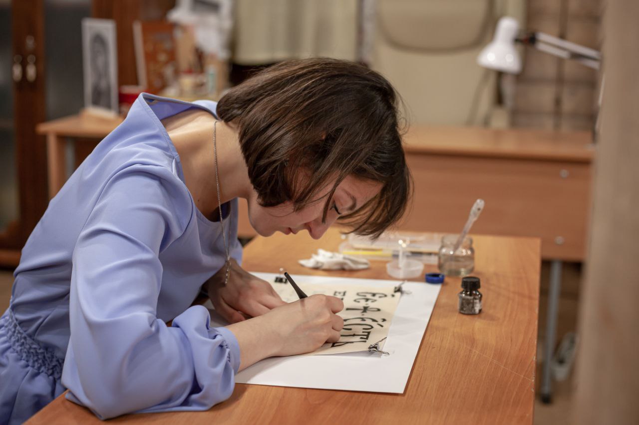 Чуть больше месяца назад у нас открылась студия красивого письма. Обучает основам каллиграфии Георгий Дудко - сотрудник приходской иконописной мастерской, искусный шрифтовик и художник.