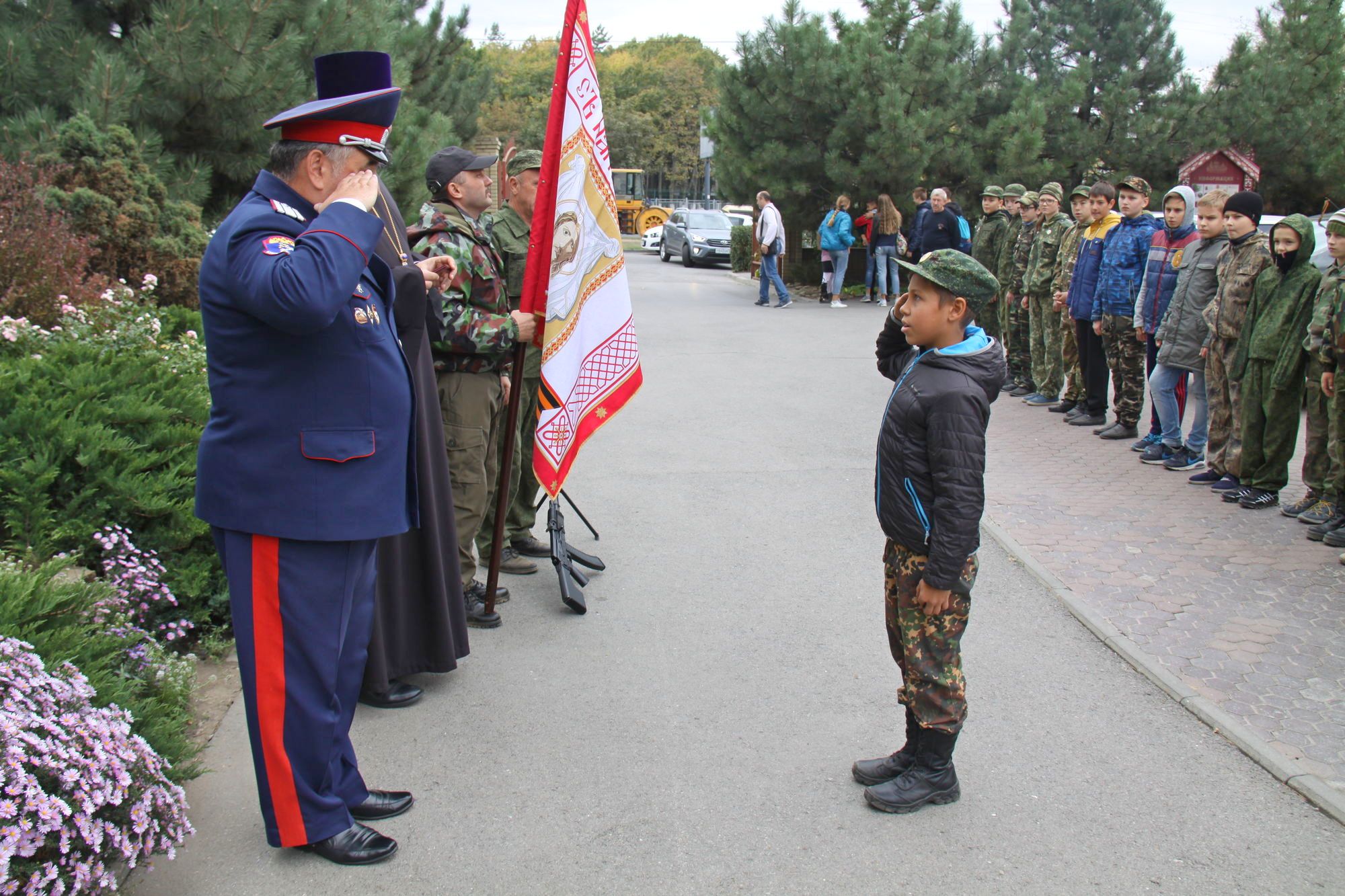 На торжественном построении присутствовали настоятель прихода Святого Георгия Победоносца, руководитель отдела по взаимоотношениям церкви и общества Ростовской-на-Дону епархии, духовный наставник юнармейцев протоиерей Валерий Волощук, первый заместитель (товарищ) атамана окружного казачьего общества «Всевеликое войско Донское» ветеран Российской армии полковник Момот Геннадий Владимирович, инструкторы-наставники, участники боевых действий и родители воспитанников.