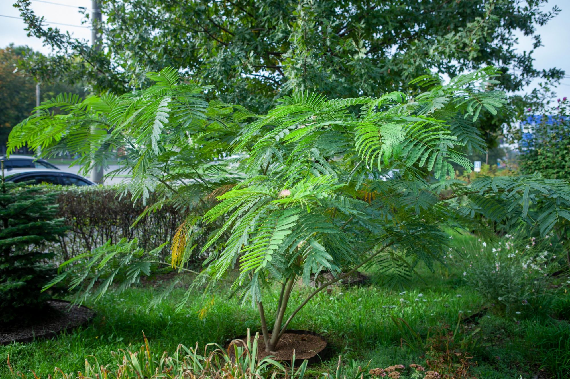 Удивительное чудо произошло на нашем миксбордере - зацвела акация ленкоранская (шёлковое дерево)! Примечательно, что акация относится к субтропическим деревьям и подмерзает даже в Грузии и Азербайджане, не говоря уже о нашей зоне. Эта акация является прекрасным медоносом, а её кору используют для окрашивания шёлка. Полюбоваться на это чудо можно в самом начале миксбордера со стороны главных ворот.