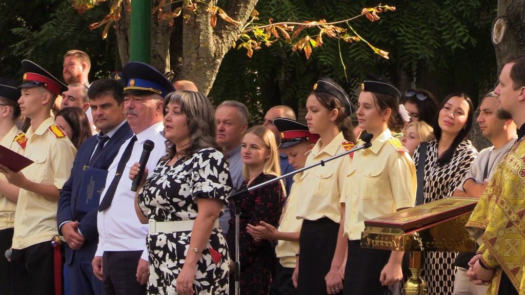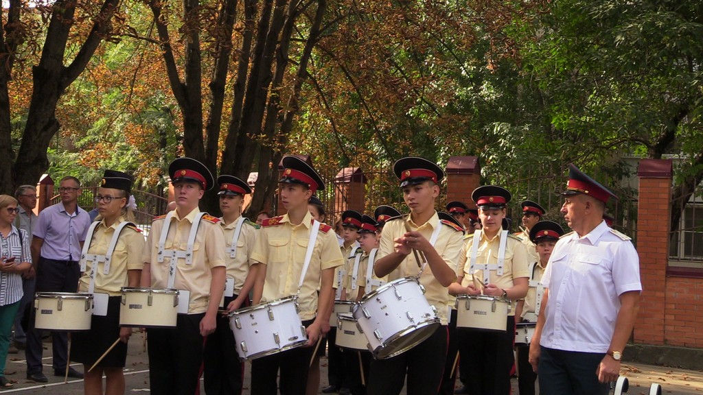 Нарядные кадеты и воспитанники с пестрыми букетами цветов, учителя и родители заполнили двор кадетского корпуса. Звучит музыка, и все классы строятся на плацу корпуса. Все застыли на торжественной линейке под звуки гимна России. Все наполнено торжеством и гордостью. По традиции первыми поздравляют малышей-первоклассников директор кадетского корпуса полковник Корчагин Павел Иванович и гости: представитель Управления ФСБ по Ростовской области Седлецкий Дмитрий Владимирович, а также родители первоклассников и одиннадцатиклассников. Отец Роман Зимин провел молебен и окропление. С ответным словом выступила группа малышей – первоклассников, которые с выражением прочли выученные стихи. Эстафету подхватили старшеклассники и ансамбль барабанщиков, которые исполнили задорный танец вместе со своим руководителем Литвиновым Сергеем Михайловичем. Наступило время первого школьного звонка в этом учебном году. Это почетное право было предоставлено старшине второй роты вице-старшине одиннадцатого класса Ковалеву Даниилу и воспитаннице первого «Б» класса Антюфеевой Ольге. День знаний продолжился классными часами.