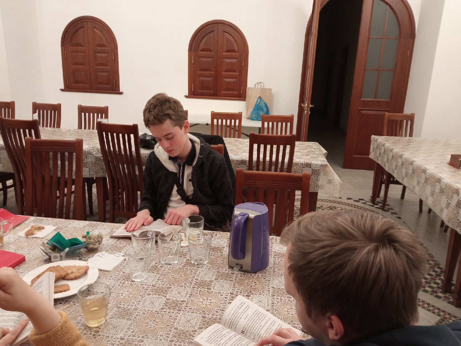 На минувших выходных по благословению настоятеля протоиерея Валерия Волощука состоялось общее говение преподавателей, учащихся и родителей воскресной школы. А воскресным вечером один из воспитанников школы принял участие в собрании библейского кружка.