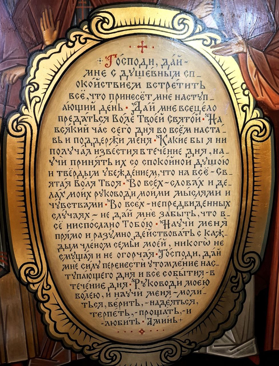 В нижней части иконы расположена картуш с известной молитвой Оптинских старцев: