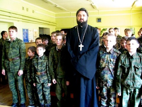 Отец Валерий обратился к детям со словами пастырского наставления о смысле поста и необходимости его соблюдения, об укреплении благодаря посту духовных и телесных сил, которые столь необходимы будущим защитникам Отечества.