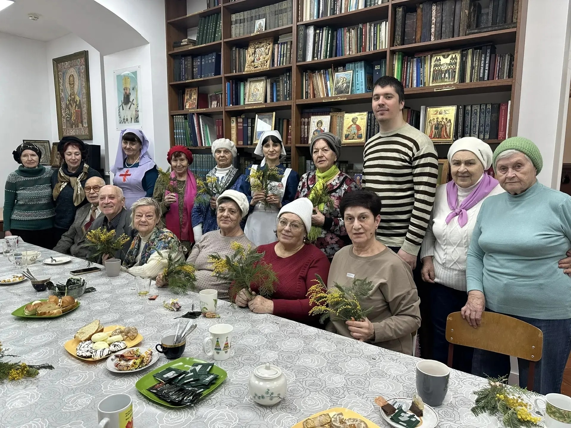 В этот же день наш приход радушно встретил гостей из Центра социального обслуживания населения Советского района. Участники клуба пенсионеров «Оптимист» познакомились с историей, архитектурой, особенностями убранства и святынями приходских храмов. Общение продолжилось за чаепитием и просмотром презентации «Твори добро». В завершение встречи каждый гость получил небольшой букетик мимозы — как напоминание об истинном смысле Великого поста: расцветании души через благодать Божию.