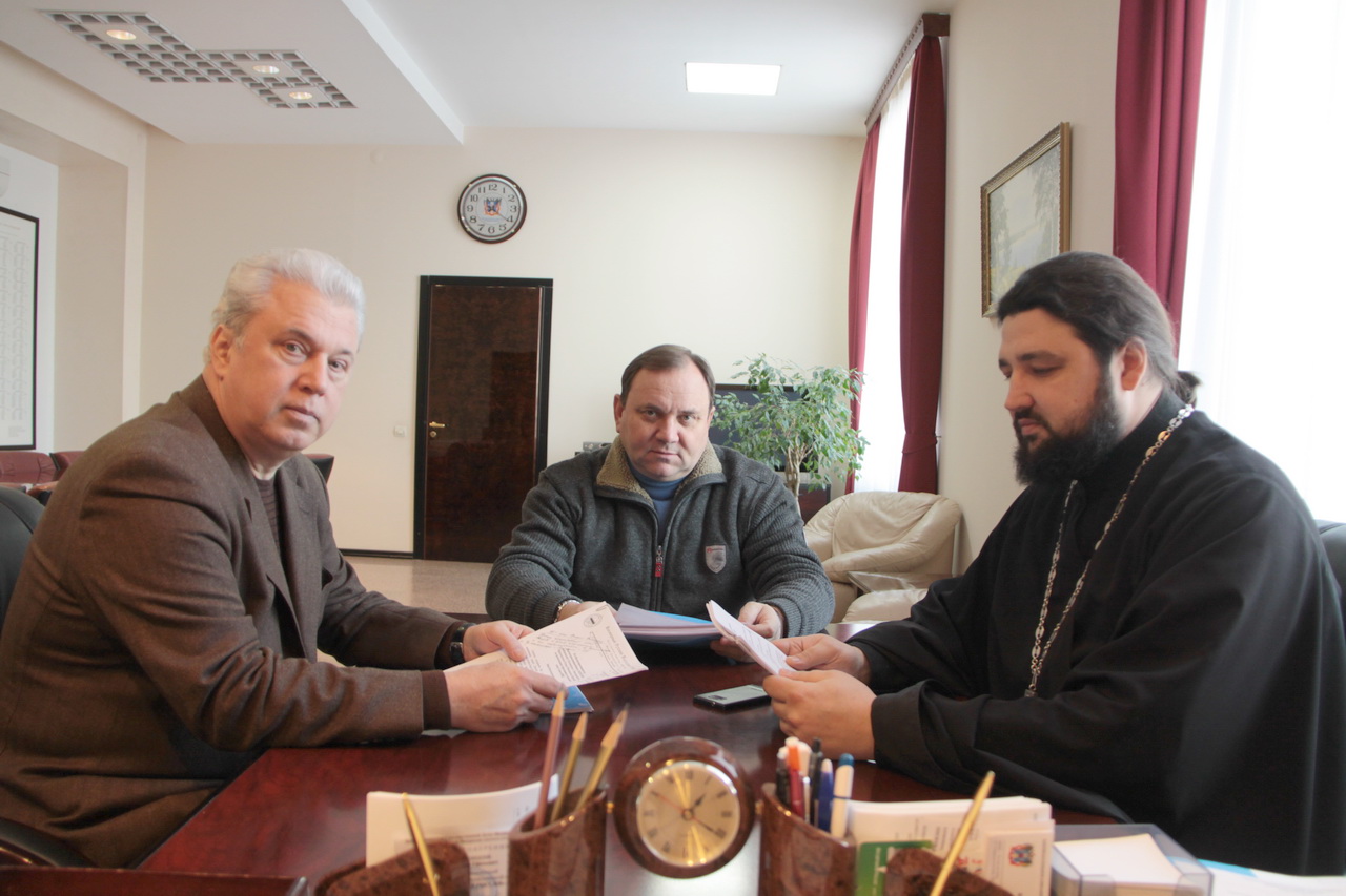 11 февраля 2012 года в г. Ростове-на-Дону, в здании Администрации Ростовской области состоялась встреча руководителя Отдела по взаимоотношениям Церкви и общества Ростовской-на-Дону епархии протоиерея Валерия Волощука с председателем Законодательного собрания Ростовской области Дерябкиным Виктором Ефимовичем и его заместителем Шепелевым Евгением Михайловичем.