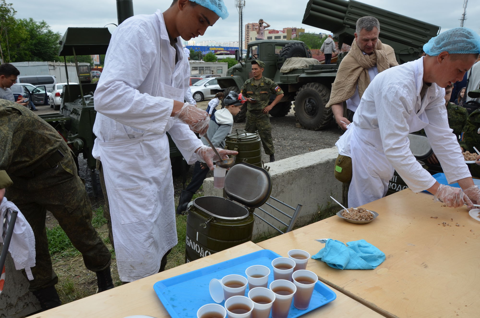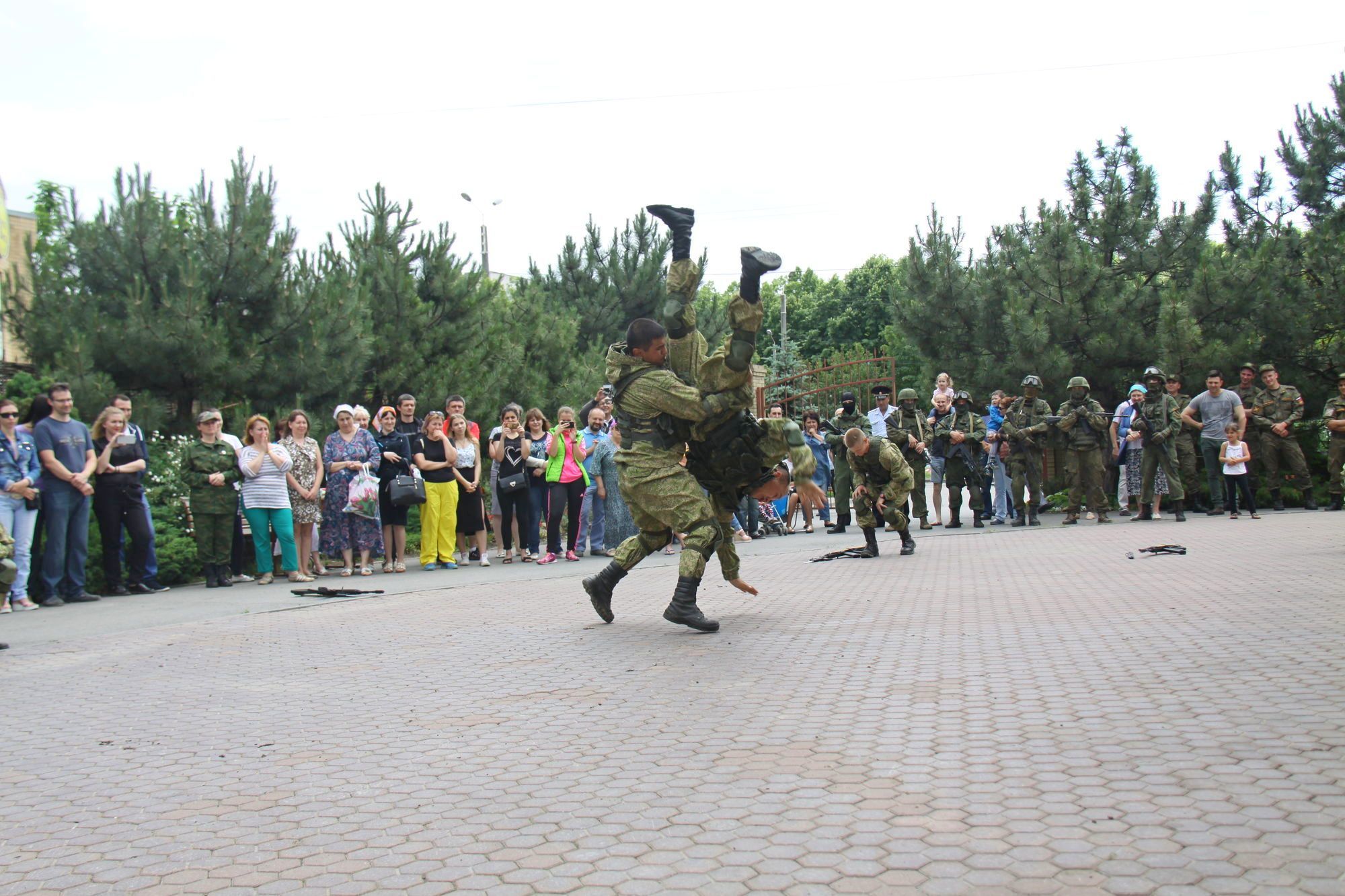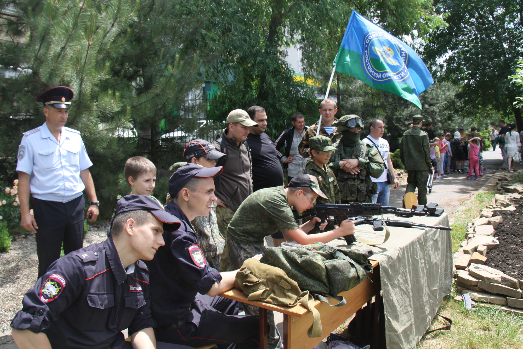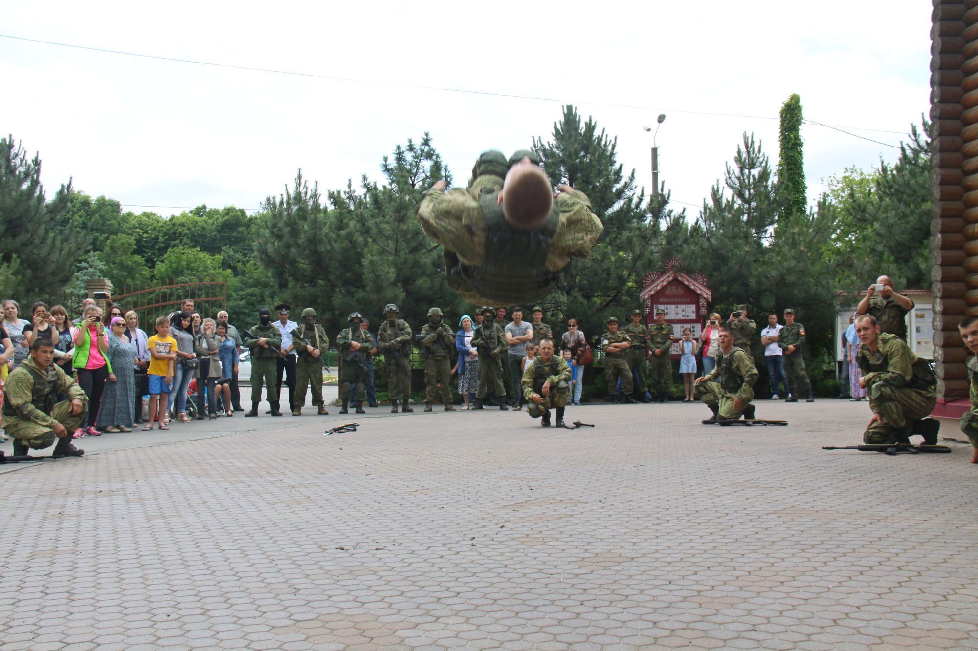 Военнослужащими была организована выставка военной техники и работа военно-полевой кухни. Разведчики продемонстрировали всем собравшимся свое воинское мастерство.
