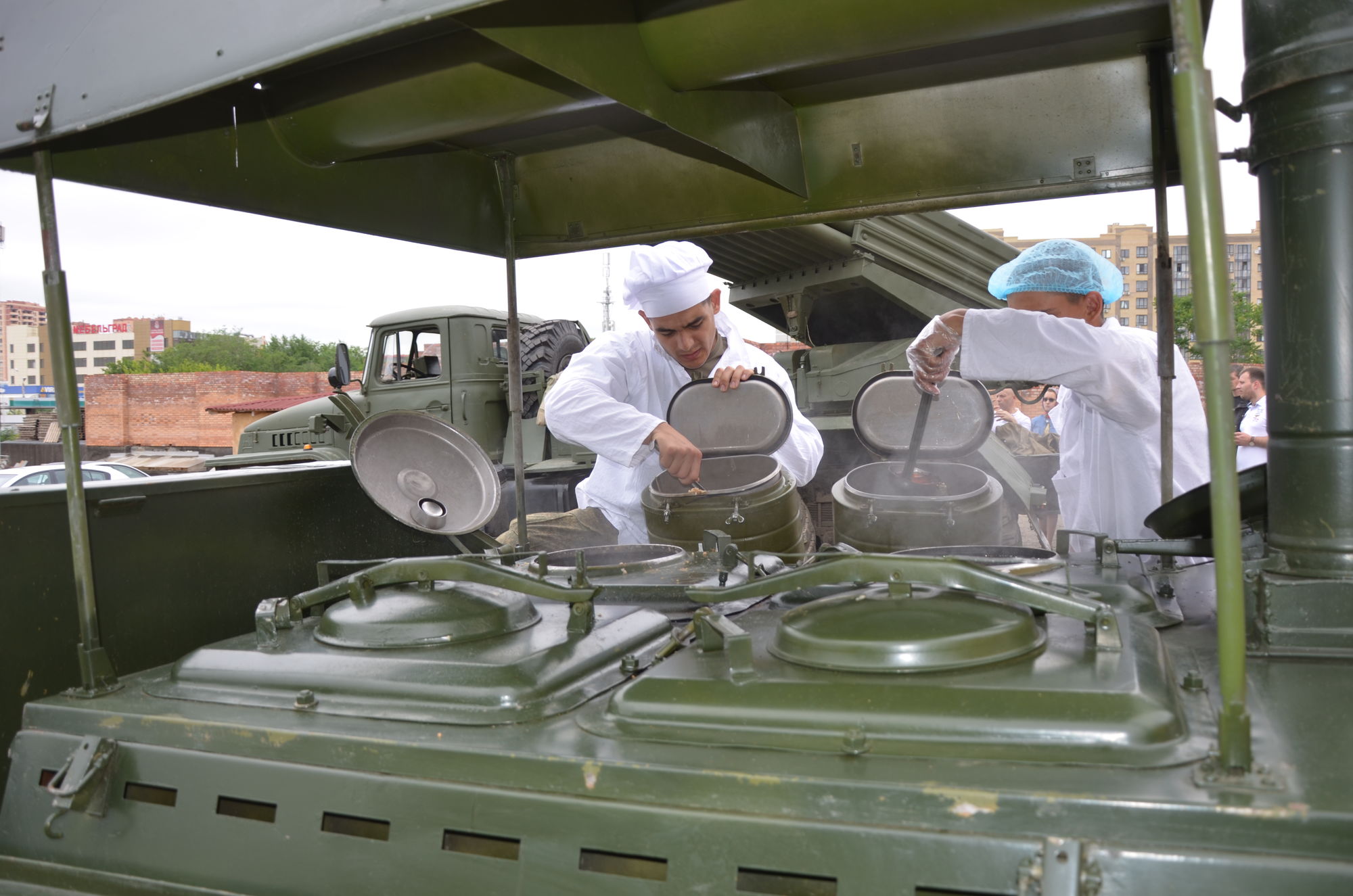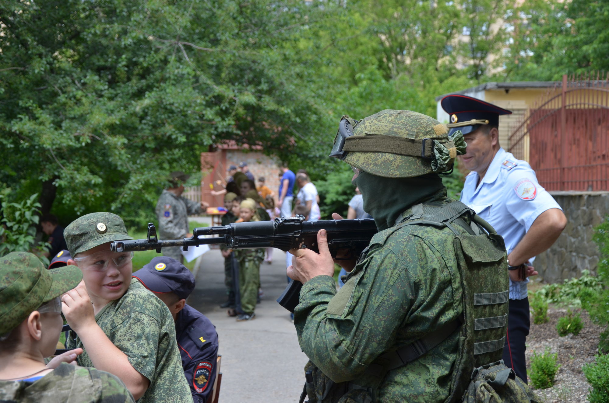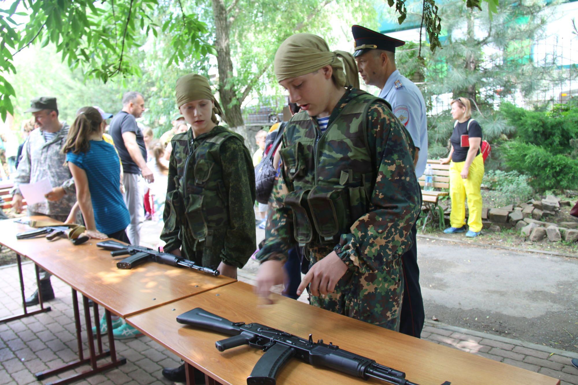 Военнослужащими была организована выставка военной техники и работа военно-полевой кухни. Разведчики продемонстрировали всем собравшимся свое воинское мастерство.