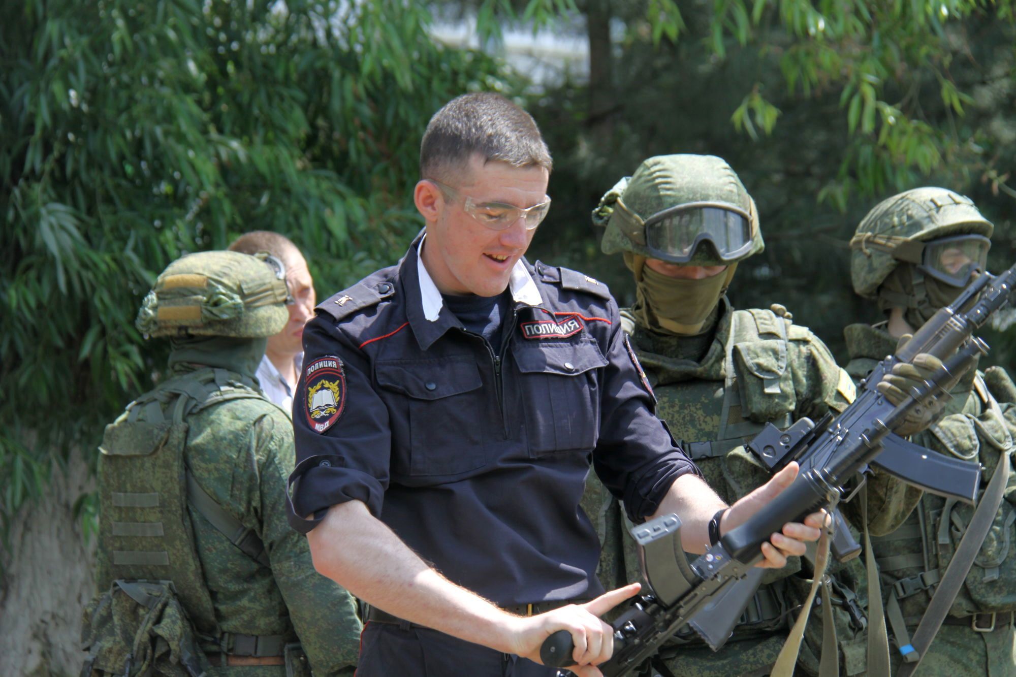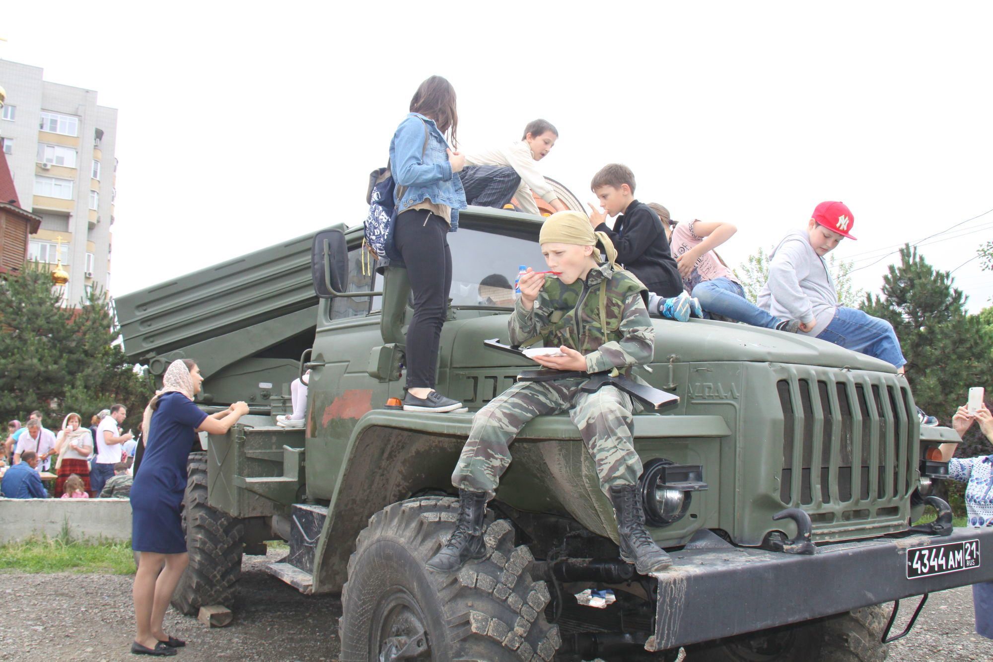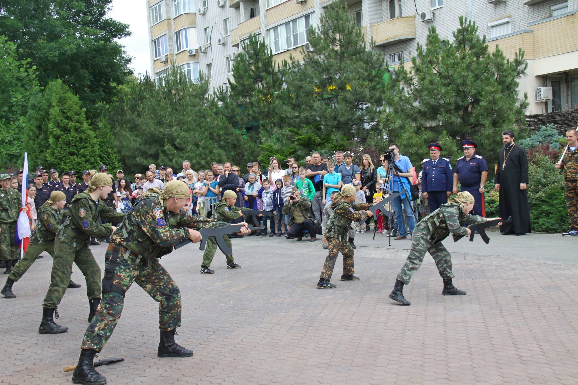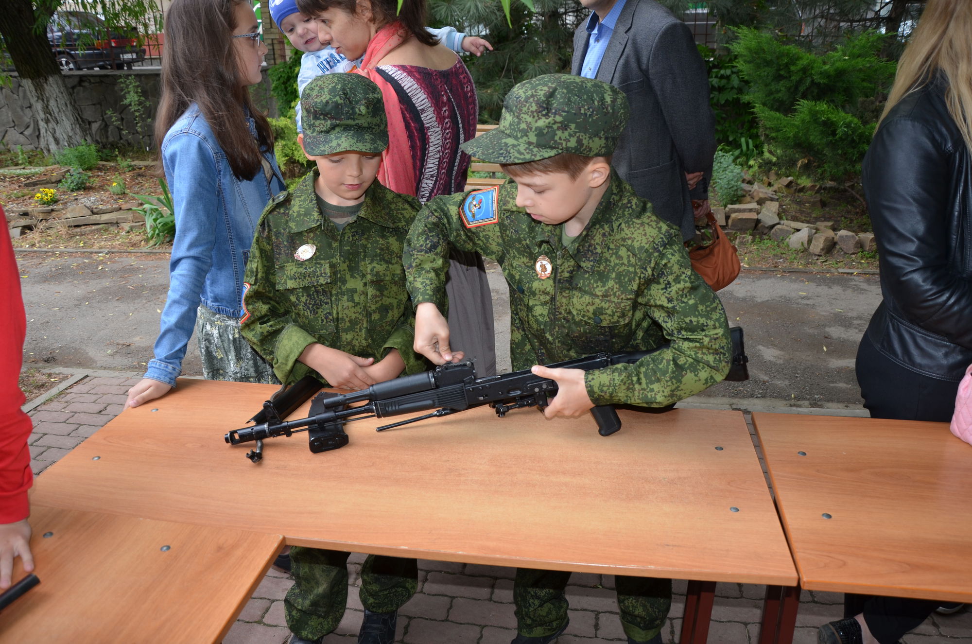 Военнослужащими была организована выставка военной техники и работа военно-полевой кухни. Разведчики продемонстрировали всем собравшимся свое воинское мастерство.