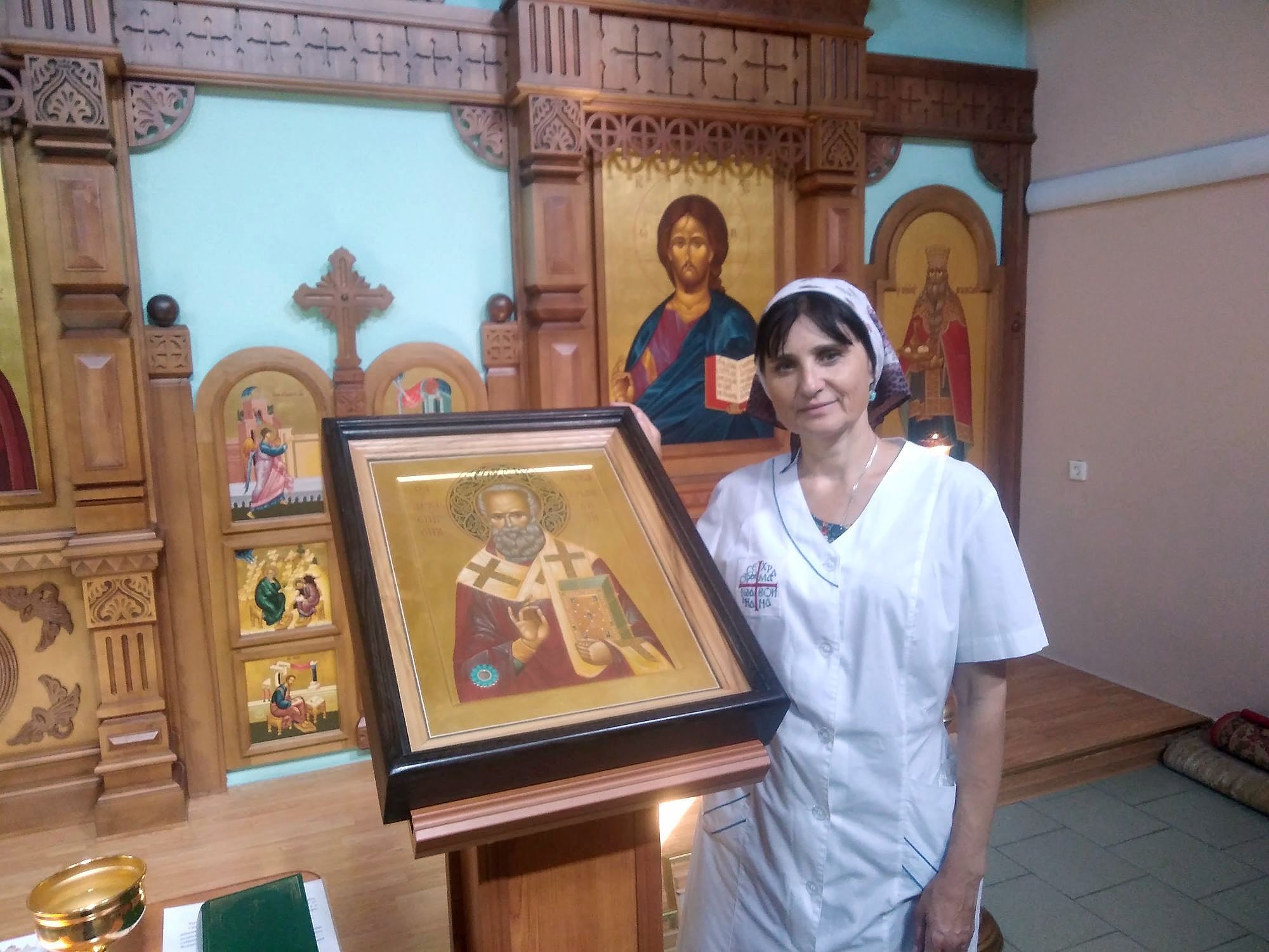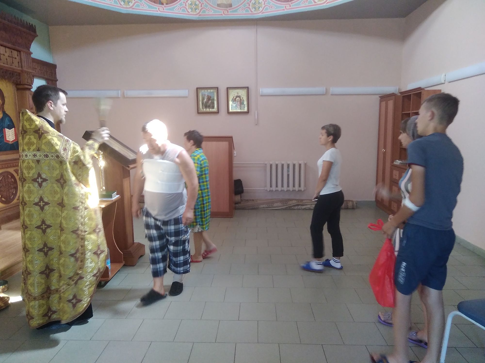 Сестры милосердия оповестили о начале молебна, рассказали о значении в жизни человека исповеди и причастия. Для тяжелобольных, не имеющих возможности передвигаться, они провели беседу в палатах и раздали освященную воду.