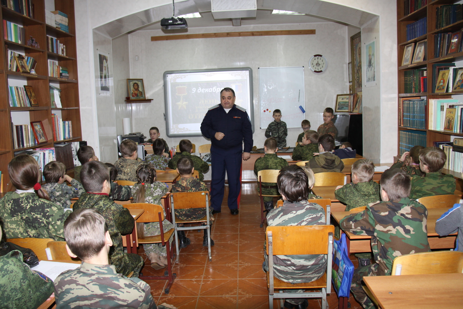 Занятия проходили по разным направлениям. В завершении урока полковник запаса Момот Геннадий Владимирович — первый заместитель (товарищ) атамана окружного казачьего общества Ростовский округ войскового казачьего общества «Всевеликое войско Донское» — провел урок по истории России, приуроченный ко Дню Героя, отмечаемого в нашей стране 9 декабря. Дети и их родители узнали об истории этого праздника, об исторических и современных героях России, а также смогли лично прокомментировать некоторые исторические события.